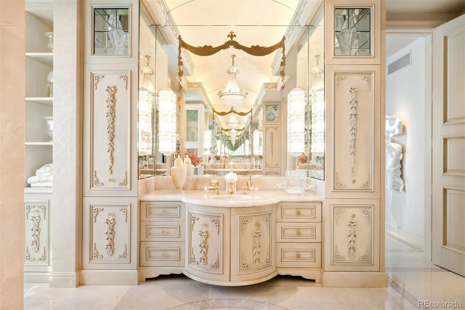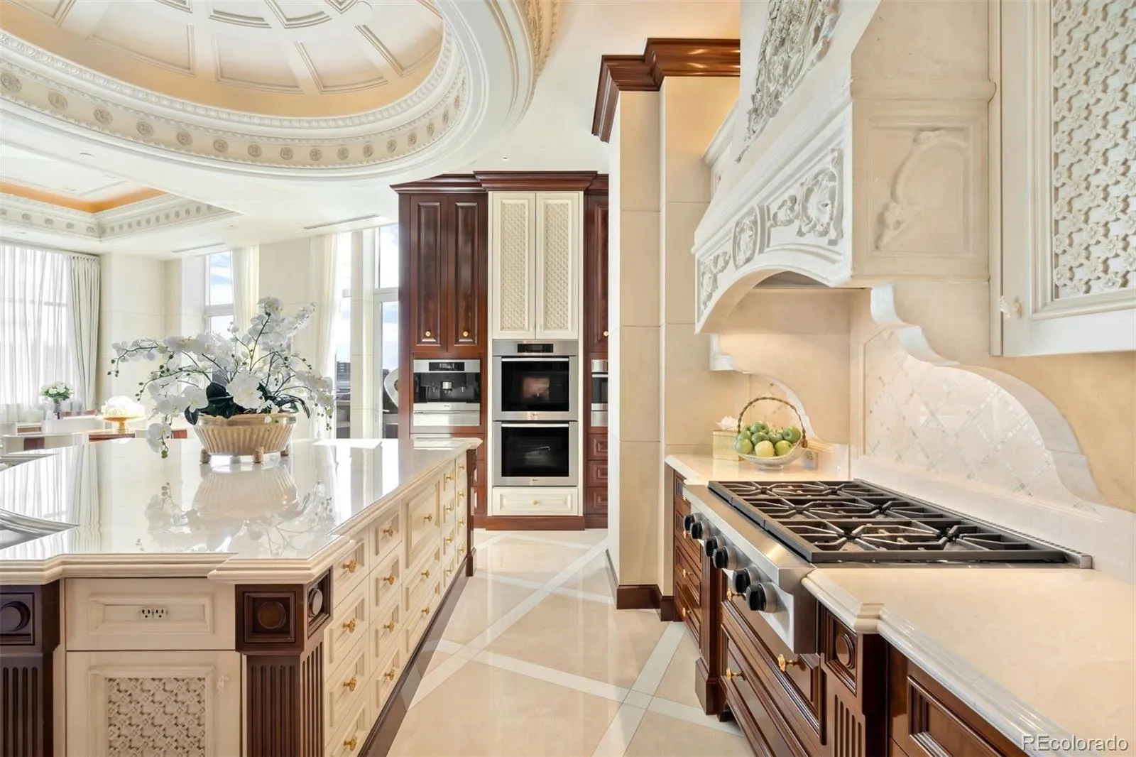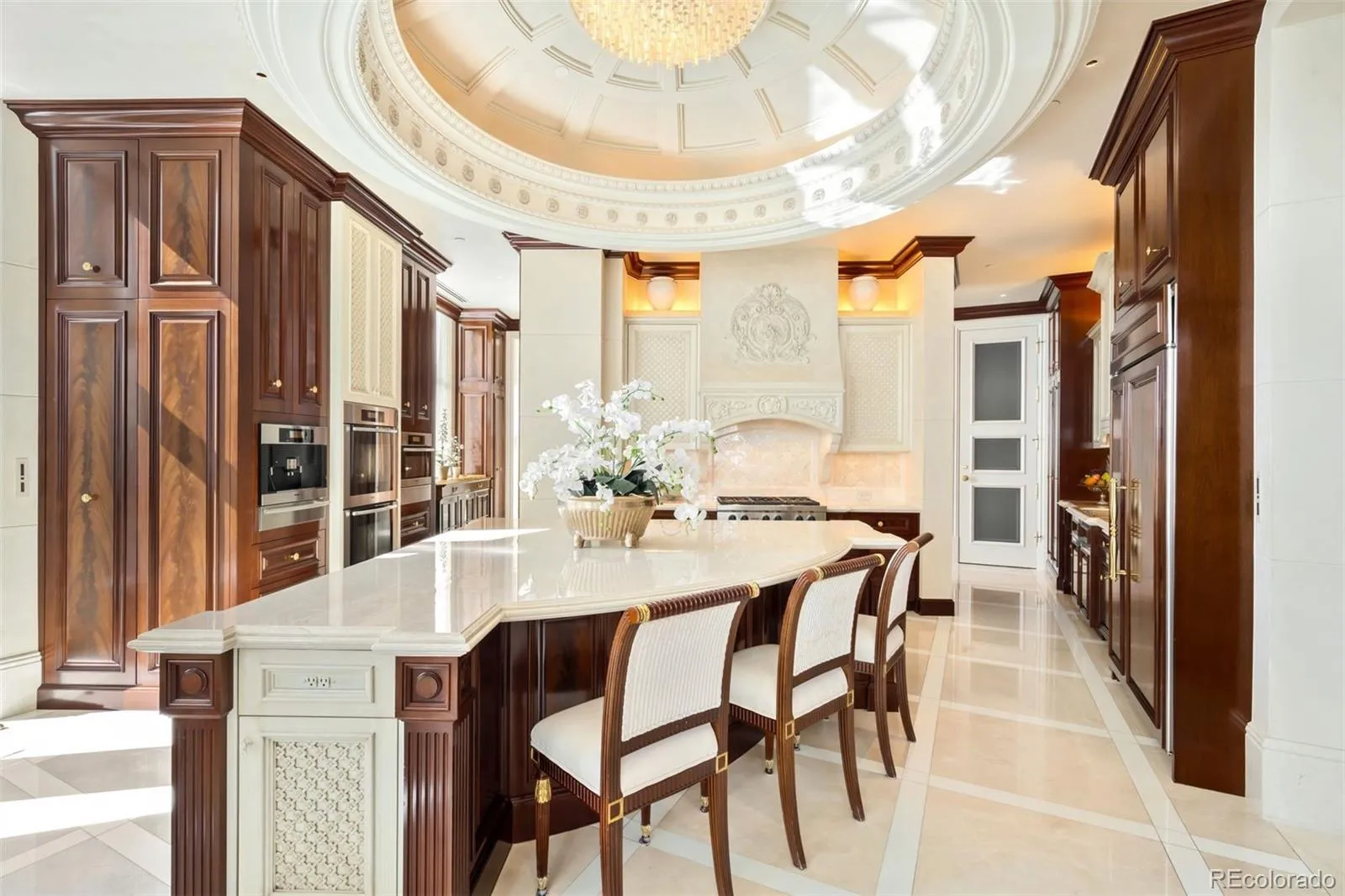 Expertly envisioned and curated, this extraordinary penthouse is a masterclass in design, craftsmanship, and timeless European elegance. Rich mahogany walls, bespoke millwork, and 10-foot doors create a striking sense of arrival, while tailored materials and soft ambient lighting establish an atmosphere that is both grand and intimately refined. Perched in the heart of Cherry Creek, the residence pairs a sophisticated European aesthetic with a floor plan designed for elevated entertaining and effortless daily living. Expansive living spaces unfold beneath soaring ceilings and walls of glass, capturing natural light and framing breathtaking mountain views over the iconic Denver Country Club golf course. A formal dining room graciously accommodates 30+ guests, complemented by a richly appointed mahogany study and two beautifully finished en-suite guest rooms. The primary suite is a private sanctuary, featuring an expansive bedroom, dual custom closets designed to impress the most discerning buyer, and an elegant, spa-inspired bath that evokes a five-star retreat. A remarkable 1,230 square foot terrace extends the living experience outdoors, offering an extraordinary setting for elegant gatherings or quiet evenings immersed in panoramic city lights and Colorado sunsets. Spanning over 7,100 finished square feet, the residence also includes four dedicated parking spaces. At NorthCreek, residents enjoy a level of privacy, security, and service reserved for the world’s finest addresses, with dedicated concierge, valet, and porter services. All just moments from the acclaimed dining, luxury boutiques, and renowned galleries of Cherry Creek North.