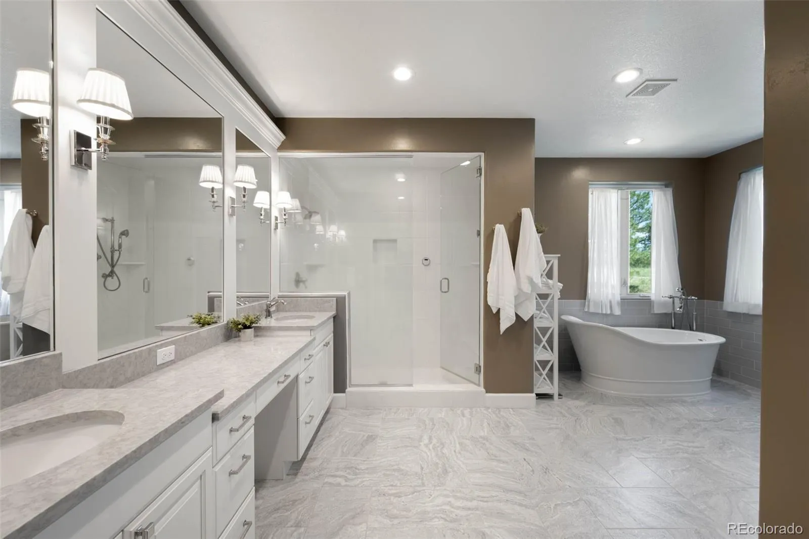 Welcome to a masterpiece of modern elegance at an exquisite gated estate located on the expansive grounds of Remmick Ridge in Parker, Colorado. This contemporary gem spans a generous 7,256 square feet, offering a harmonious blend of luxury and functionality. With five spacious bedrooms and seven bathrooms, this home ensures comfort and sophistication in every corner highlighted by a personal elevator that travels to all three floors of the home. The heart of the home is a stunning island kitchen, equipped with top-tier appliances including a cooktop, double oven, microwave, and refrigerator. The adjacent eat-in kitchen area offers seamless access to a private deck, perfect for alfresco dining and taking in breathtaking mountain views of Pikes Peak and the Front Range; enjoy the outdoors in cooler temperatures with mounted patio heaters. These views are best found in the all-weather sunroom that overlooks your 36.5 acres of serenity. The living spaces are generously sized, highlighted by a main floor primary suite complete with two walk-in closets, ensuring your personal retreat is both serene and luxurious. The full walk-out basement provides additional space for entertainment or relaxation, complemented by the charm of a cozy fireplace. Effortlessly entertain any kind of event from lounging next to the firepit to hosting a party around your salt water pool outfitted with a retractable pool cover. Enjoy casual conversation or personal reflection near the exclusive pond with dual water features. Feel a sense of privacy on your own 36 acre property with the fenced in and irrigated two acre backyard. Outside, the property boasts vast landscapes with an attached 4 car garage and a detached garage with RV parking with up to 12 spaces, ensuring ample space for all your toys and vehicles; other luxury amenities include water filtration system, water softener, and a whole home generator.