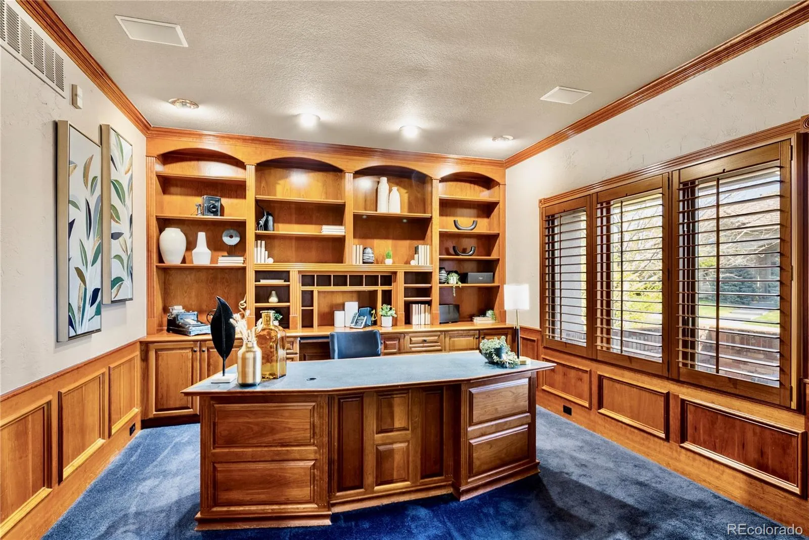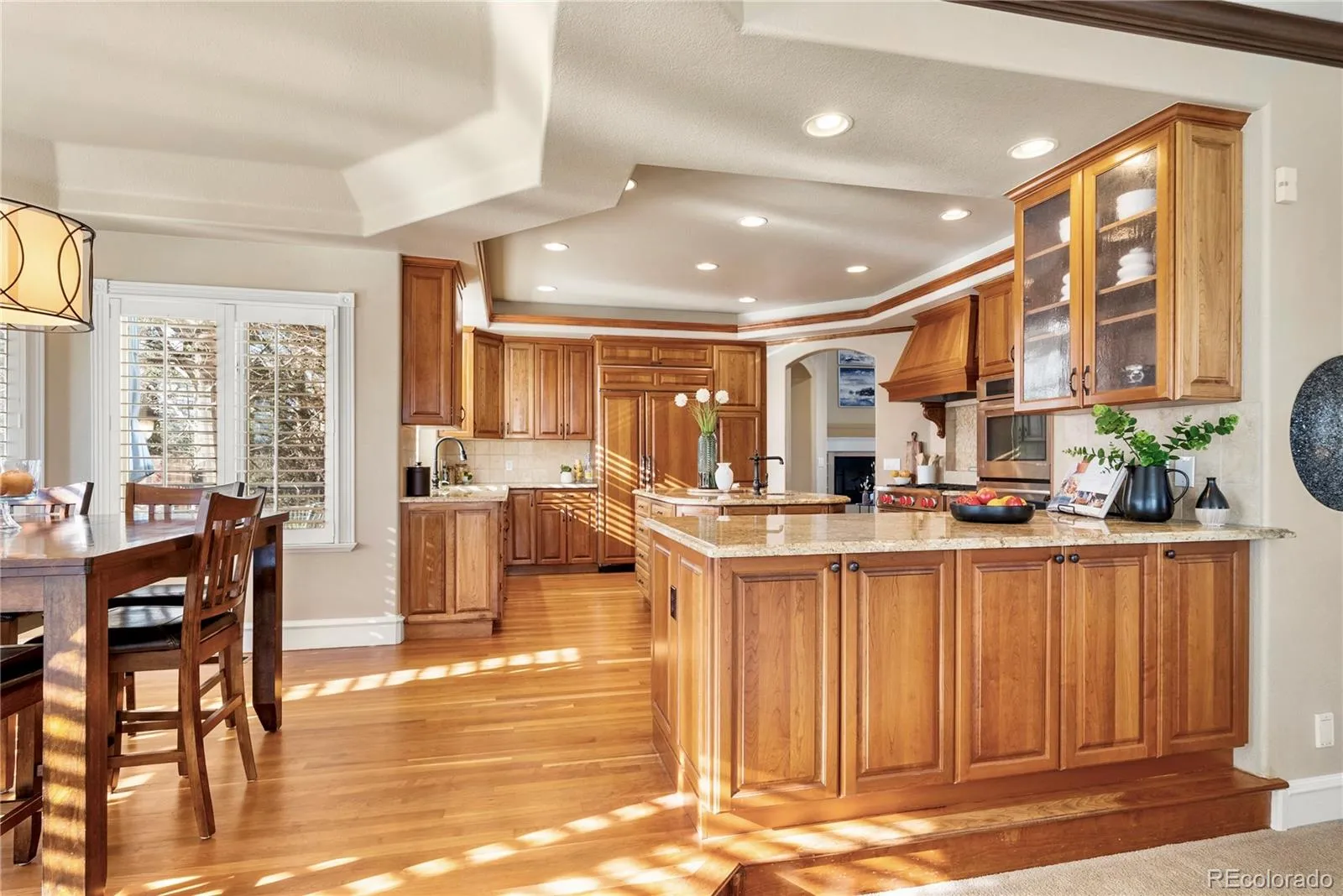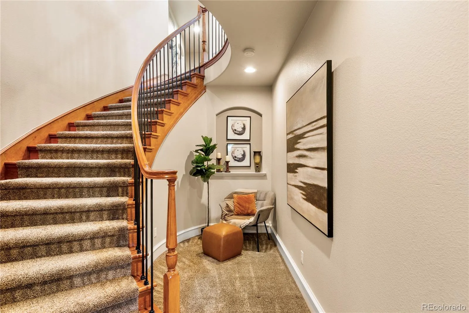 Set on a rare, half acre homesite backing to open space and the scenic High Woods Trail, this nearly 7,000-square-foot estate in the prestigious, gated Highwoods neighborhood, captures panoramic mountain views—an offering seldom available here. Mature, curated landscaping and a welcoming front patio create a sense of arrival, while proximity to the neighborhood pool, tennis, and pickleball courts enhances a true resort-style lifestyle. Inside, a grand foyer with soaring ceilings, rich cherry hardwood floors, and a curved staircase delivers a striking first impression, with expansive windows framing natural light and mountain views. A refined executive office with custom millwork and plantation shutters anchors the main level, while the formal living room features vaulted ceilings, architectural archways, floor-to-ceiling windows, and a statement gas fireplace. The chef’s kitchen blends timeless design and function with custom cherry cabinetry, granite countertops, double ovens, and a six-burner gas cooktop, opening to a sunlit breakfast nook and elevated deck positioned for sunset views. The adjacent family room offers built-ins and a second fireplace. Upstairs, the primary suite is a private retreat with its own balcony, spa-inspired five-piece bath, and expansive walk-in closet, complemented by secondary bedrooms including a private en suite, Jack-and-Jill layout, and a flexible bonus room. The walkout lower level is designed for entertaining, featuring a spacious lounge, billiards area, custom wet bar, fitness studio, private guest suite, and a spa-caliber bath with sauna and steam shower. Outdoor living is equally compelling with a slate pathway, side staircase, and wraparound deck leading to a secluded firepit lounge with Adirondack seating set against protected open space. An oversized three-car garage with epoxy floors, EV charging, and guest parking completes the home. Opportunities of this scale, setting, and privacy in Highwoods are extremely limited.