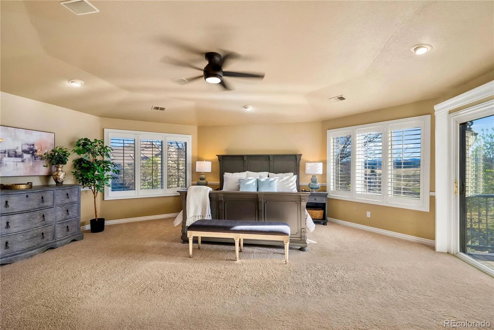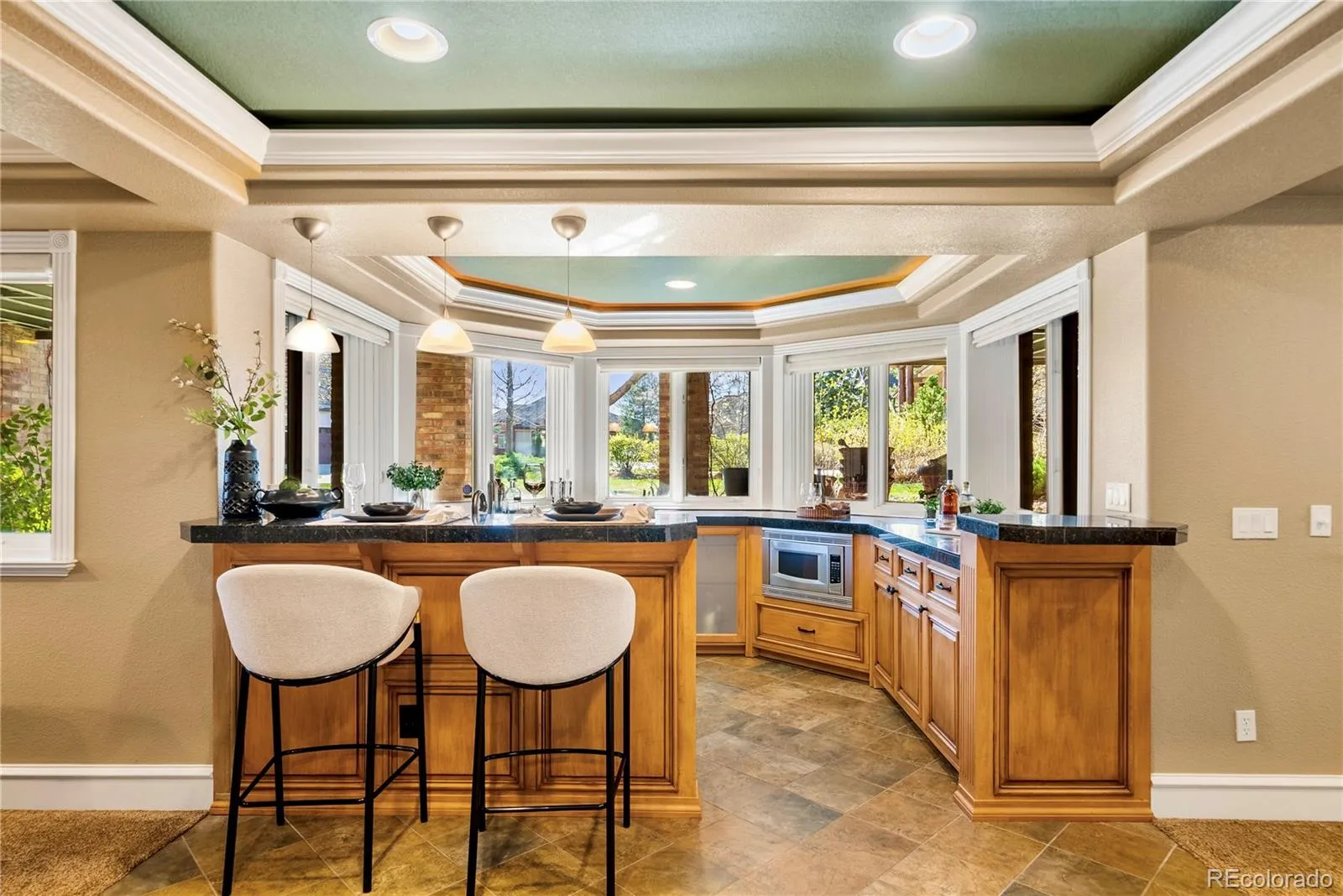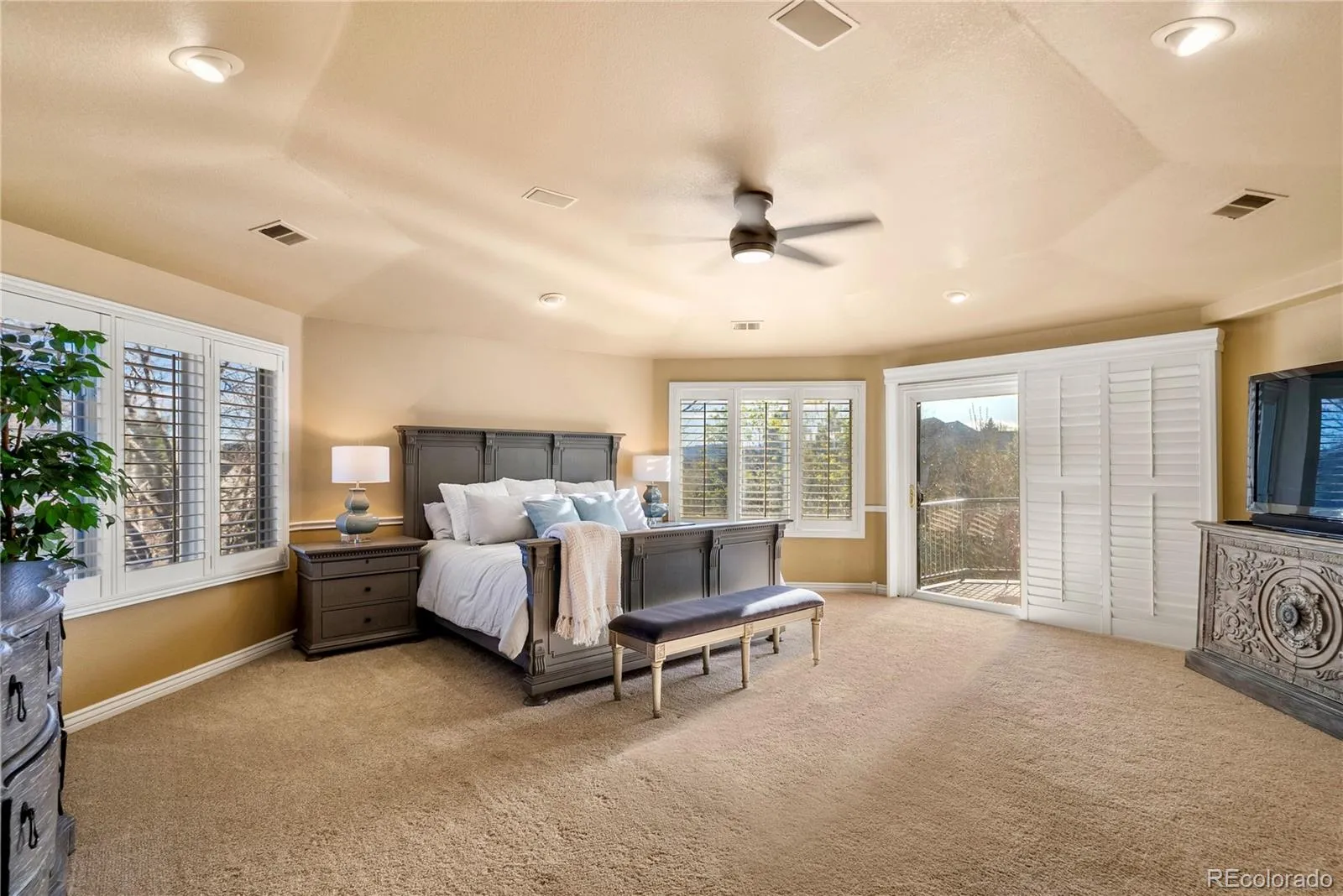 Set on a rare, half acre homesite backing to open space and the scenic High Woods Trail, this nearly 7,000-square-foot estate in the prestigious, gated Highwoods neighborhood, captures panoramic mountain views—an offering seldom available here. Mature, curated landscaping and a welcoming front patio create a sense of arrival, while proximity to the neighborhood pool, tennis, and pickleball courts enhances a true resort-style lifestyle. Inside, a grand foyer with soaring ceilings, rich cherry hardwood floors, and a curved staircase delivers a striking first impression, with expansive windows framing natural light and mountain views. A refined executive office with custom millwork and plantation shutters anchors the main level, while the formal living room features vaulted ceilings, architectural archways, floor-to-ceiling windows, and a statement gas fireplace. The chef’s kitchen blends timeless design and function with custom cherry cabinetry, granite countertops, double ovens, and a six-burner gas cooktop, opening to a sunlit breakfast nook and elevated deck positioned for sunset views. The adjacent family room offers built-ins and a second fireplace. Upstairs, the primary suite is a private retreat with its own balcony, spa-inspired five-piece bath, and expansive walk-in closet, complemented by secondary bedrooms including a private en suite, Jack-and-Jill layout, and a flexible bonus room. The walkout lower level is designed for entertaining, featuring a spacious lounge, billiards area, custom wet bar, fitness studio, private guest suite, and a spa-caliber bath with sauna and steam shower. Outdoor living is equally compelling with a slate pathway, side staircase, and wraparound deck leading to a secluded firepit lounge with Adirondack seating set against protected open space. An oversized three-car garage with epoxy floors, EV charging, and guest parking completes the home. Opportunities of this scale, setting, and privacy in Highwoods are extremely limited.