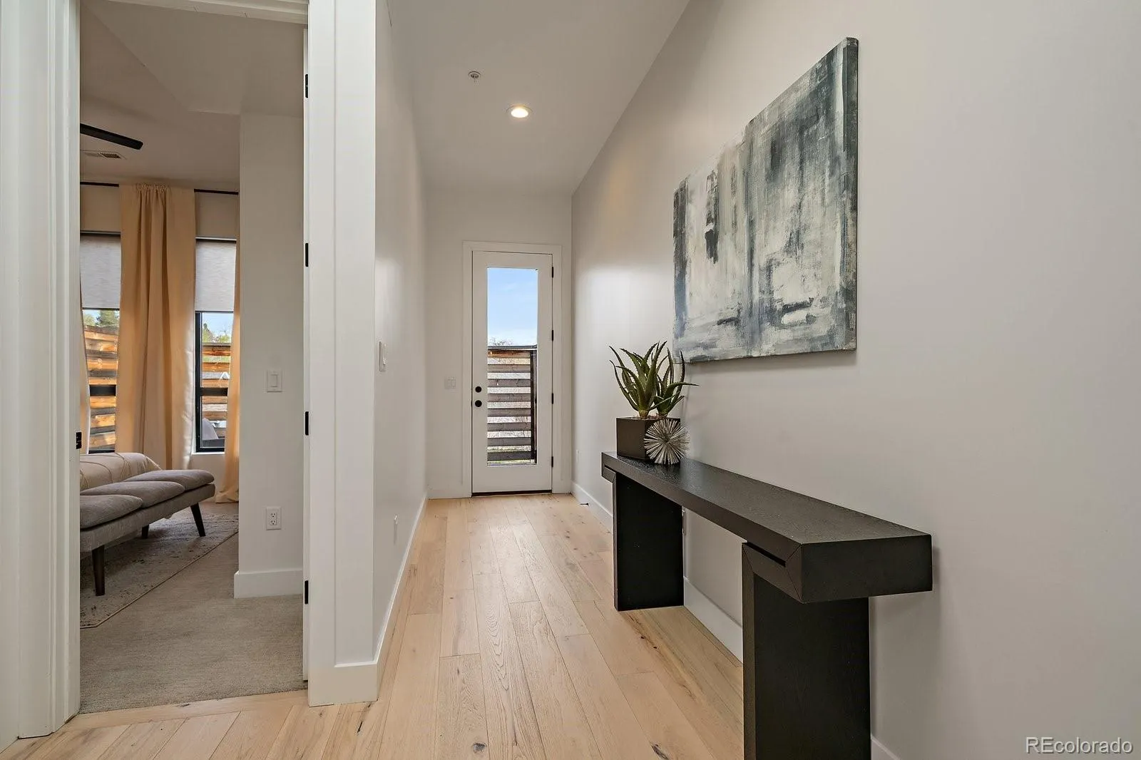 Nearly new modern townhome in the heart of Golden offering contemporary design, functional layout, and low-maintenance living just minutes from downtown and the foothills.This stylish end unit townhome features contemporary design & exceptional craftsmanship for refined urban living. This end unit shares only one wall, and its open-concept design enhances the sense of space throughout with the seamless flow between living, dining, and kitchen spaces, and clean modern finishes throughout. The kitchen includes quartz countertops, stainless steel appliances, designer lighting, and an eat-in peninsula ideal for everyday living and entertaining. A vertical cable railing staircase adds a sleek architectural element. The primary suite offers a private balcony, walk-in closet with built-ins, and ensuite bath with dual vanities and a large walk-in shower. The finished lower level provides flexible space for a home office, gym, guest area, or non-conforming third bedroom. Enjoy a south-facing upper patio for outdoor living plus the convenience of an attached two-car garage. Prime location near downtown Golden, Clear Creek, South Table Mountain trails, Colorado School of Mines, Golden Mill, and local dining/breweries. Easy access to I-70 and Highway 6 with a sub-30 minute commute to Denver. Strong option for owner-occupants or investors seeking rental potential in a high-demand Golden location. Visit Golden-HM.com for more details.