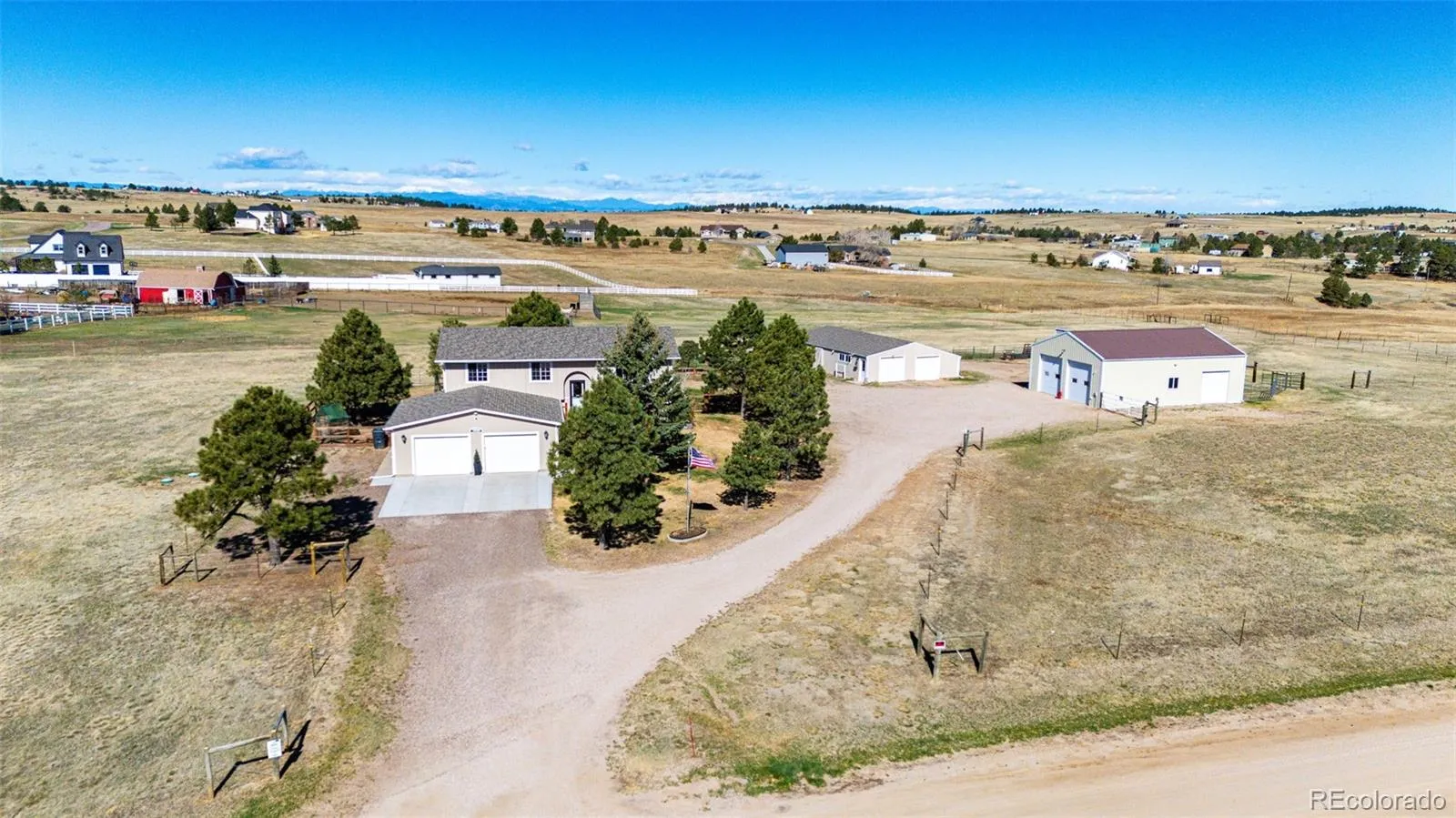 This 4-bedroom, updated/remodeled home is located on 5 acres in the highly desired Cimarron community with riding bridal paths and baseball field is just minutes from Elizabeth. The upper level includes NEW interior paint, NEW wired Smoke & Carbon Monoxide Detectors, 4 bedrooms, 3 baths, NEW LVP flooring in living room & dining room, kitchen boasts of solid granite counter tops, solid maple cabinets, LPG stove, and portable island. NEW sliding glass door between dining area and back deck (great for entertaining and enjoying spectacular views!). Finished basement includes NEW carpeting, NEW windows, 4th bedroom, walk-in closet, laundry area, 3/4 bath, NEW sliding glass door to the covered patio with (hot tub wiring), large family room, mudroom/storage and space for an office. Backyard has perimeter fencing, raised garden beds, landscaping & mature Ponderosa Pine trees. Exterior updates: NEW roof & NEW paint on home & barn, NEW concrete pad to garage and NEW front deck. Attached 2-car garage w/9′ doors, exterior access door, 220 Volt, circuit wired for back generator. The property is fenced with smooth wire (top electric wire) and cross fenced. There is a 30’x48′ barn with 2- 8′ garage doors in front w/concrete pad, a 7′ slider door on the back, 2-12’x15′ box stalls with sliding doors, corner hay doors, rubber mats, automatic heated waterer, sliding doors to paddocks, a center aisle w/rubber stall mats, tack room w/2mounted saddle racks, hay storage, water spigot, electric outlets, shelving and cabinet storage, 10’x 12′ lean-to, riding arena area in NE pasture. The 30′ x 40′ workshop has 2-10’x10′ overhead doors w/openers, concrete slab, exterior access door, 1-8’x8′ overhead door, 220-volt, Welder & Compressor Circuits, dedicated Fiber High Speed Internet, Propane Radiant Tube heating in ceiling, 100-gallon (owned) propane tank, insulated, upgraded LED lighting. Schedule your showing today to experience the space, privacy, and scenic views this property has to offer.