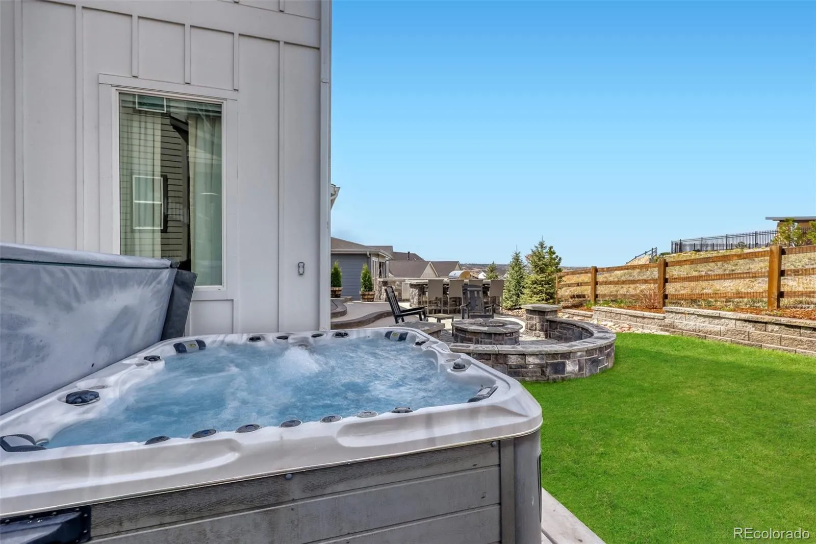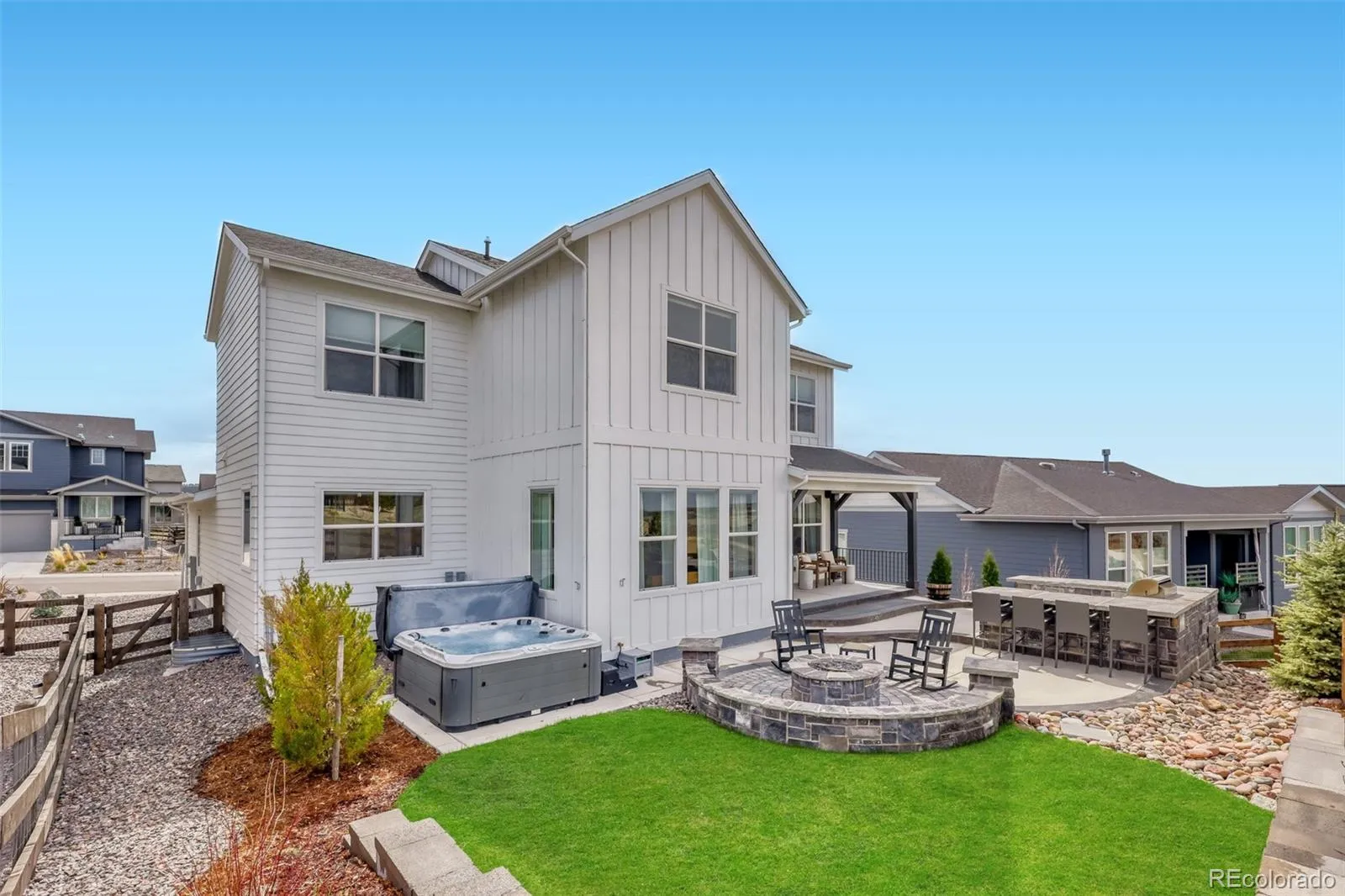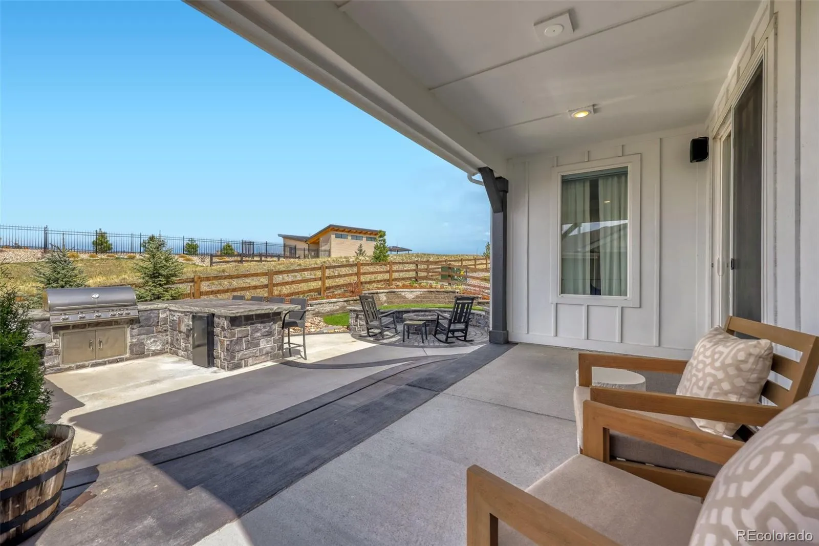 Welcome to elevated living in Montaine—where resort-style amenities meet designer perfection. This stunning Wonderland (now Brightland) home is ready for your most discerning buyer! With 5 bedrooms, 5 bathrooms, a private study, and over 4,600 sq. Ft, this beauty showcases over $500K of high-end finishes and thoughtful upgrades throughout. The designer upgrades include: Gourmet kitchen, marble/quartz countertops, counter-to-ceiling/marble backsplash, stainless steel appliances, gas cooktop, elegant lighting, LVT flooring, automated Hunter Douglas blinds, and stone/floor to ceiling fireplace accent wall! Don’t miss the 3-car garage with optional CrossFit gym. Upstairs flows into a spacious loft/secondary living area, while each guest bedroom features an en suite bath. The stunning primary suite boasts vaulted ceilings, a separate soaking tub, dual sinks, coffee bar and a custom California Closet! Also, a well-appointed laundry room with added cabinetry completes the upper level. The finished basement is designed for entertaining with a surround sound–wired game room, wet bar, bonus room and abundant storage. Backing to open/green space with scenic butte views, the home offers direct access to community amenities including a pool, clubhouse, fitness center, tennis courts and playground. Outdoor living shines with a covered patio, mountain views, plus premium upgrades including a gas fire pit, fully hardscaped outdoor kitchen, landscape lighting, stone/retaining wall and hot tub! Wonderful for entertaining or just relaxing, this backyard oasis is waiting for you!