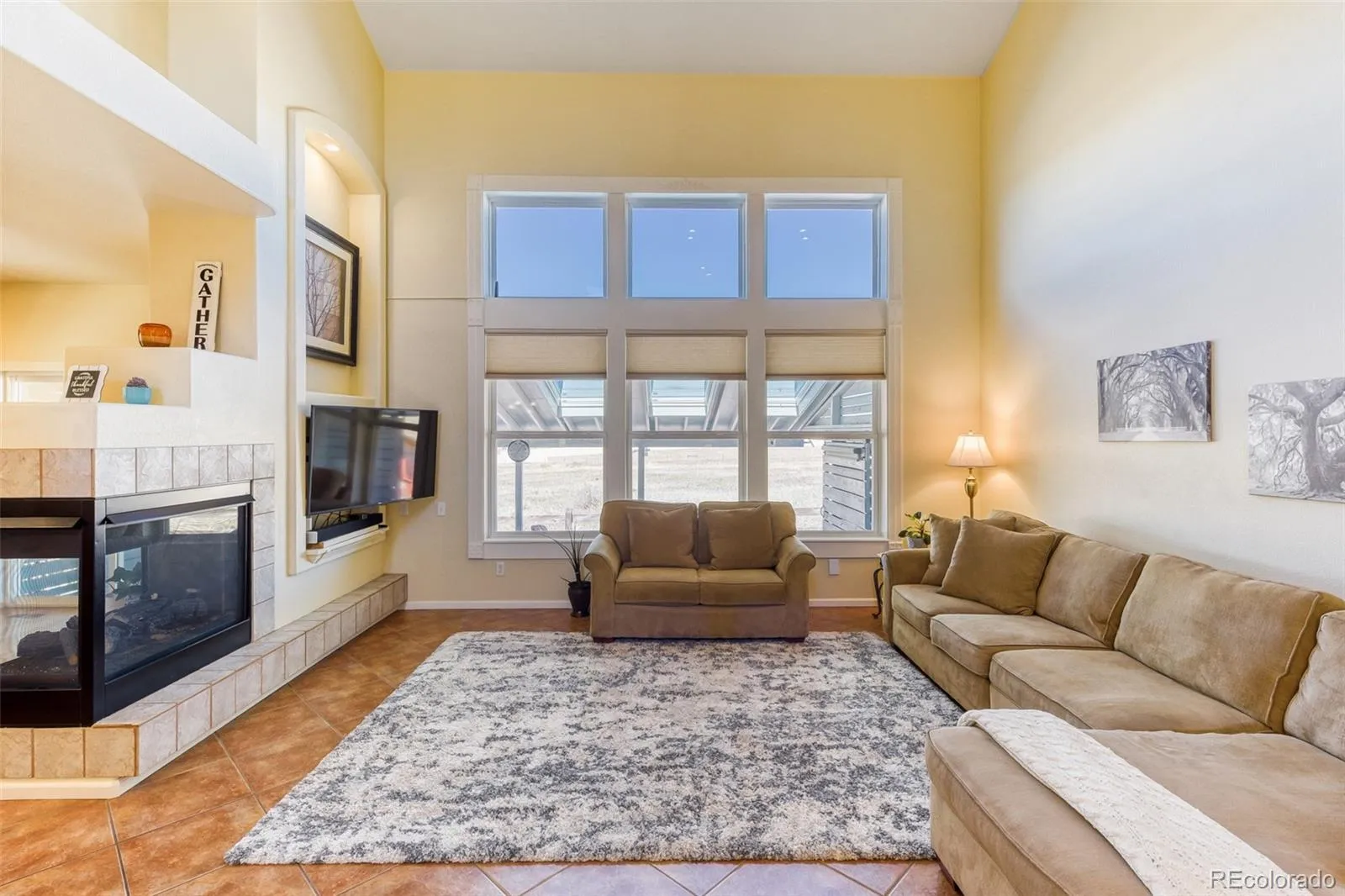 VIEWS, VIEWS, VIEWS and OPEN SPACE! Beautifully-maintained 3 bed/3 bath 2-story filled with natural light & thoughtful upgrades. The main level offers flexible living: dining room with French doors (or perfect as a study), a remodeled kitchen with hickory cabinets, soft close drawers, granite counters, stainless appliances & island. Step out to the large covered patio with privacy sliders—an incredible outdoor living extension. The family room is open & cozy with its 3-sided gas fireplace. The main floor primary suite is a true retreat, complete with a stylish barn door leading to a spa-inspired, 5-piece bath: programmable heated floors, frameless shower, a free standing soaking tub, heat lamps, & a walk-in closet with an Elfa storage system. Main floor laundry (washer/dryer included) and a powder bath add convenience. Upstairs, two big bedrooms, each with generous closets (one a walk in), connected by a Jack & Jill bath. A loft/office overlooks the family room—ideal for work or creative space. The basement was finished in 2023 with a clean, contemporary industrial vibe—ready for your personal touch, gym, studio or entertainment area. Outdoor living shines here. Enjoy views of downtown, the mountains & and unforgettable sunsets. The property is fully XERICSAPED with native, drought resistant flowers that bloom from spring through fall—no mowing required. Paved walkways. Charming porch swing & backyard Trex bench stay. Major updates give peace of mind: energy efficient Pella windows, updated electrical. Exterior paint and limestone wash (2023), new roof/gutters/patio skylights (all in 2024), new water heater, freshly painted interior ceilings & professionally cleaned carpets (all in 2026). Ceiling fans in all bedrooms & family room. Hardwood, tile & carpet. Oversized 2-car. Central AC. Low HOA fee w/ free access to 4 state-of-the-art rec centers. If you’re looking for low maintenance living, modern updates, and a home that’s been truly cared for—this is the one!