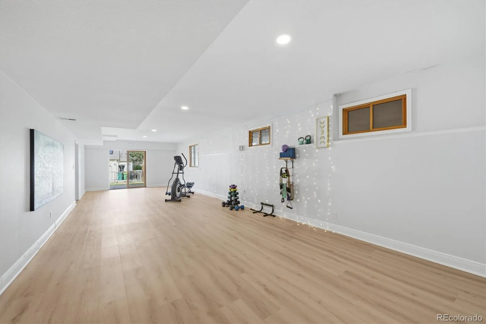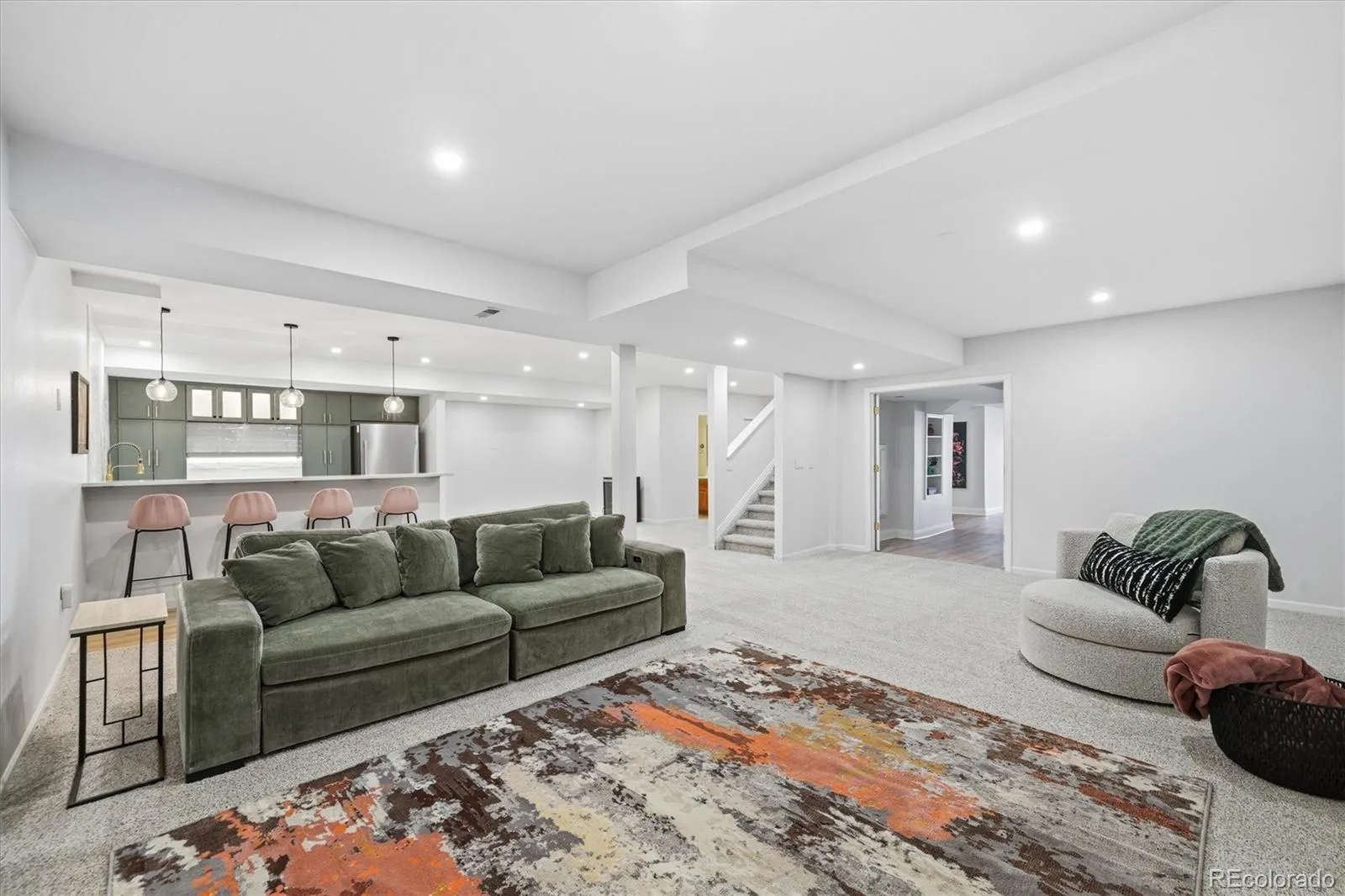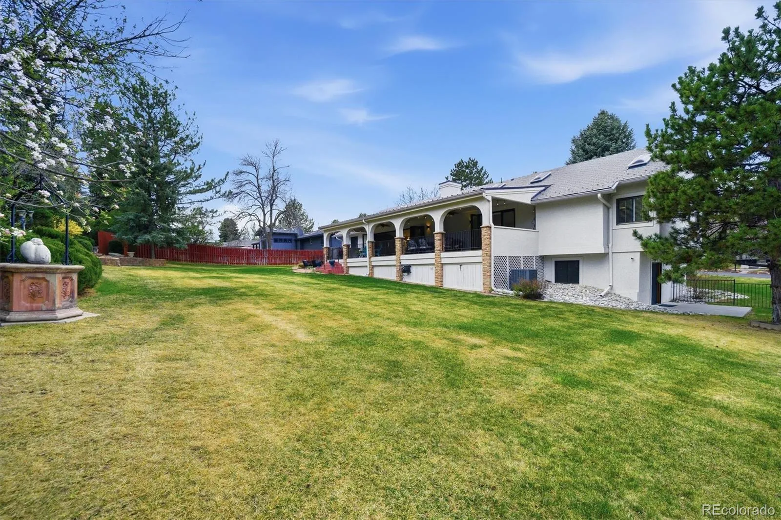 Exquisite luxury living is redefined in this renovated estate, where design and technology come together on a spacious .50-acre lot. A bright entry welcomes you into a thoughtfully designed main level, highlighted by vaulted ceilings, hardwood and travertine flooring throughout. A private study w/ French doors and built-ins, ideal for both productivity and elegance. The remarkable kitchen features custom cabinetry, stainless steel appliances, spacious island w/ breakfast bar, walk-in pantry, and a generous eating space. The formal dining room is bright and open with a tray ceiling, perfect for entertaining. The great room offers a dramatic yet inviting atmosphere w/ skylights and a striking gas fireplace accented by a large porcelain slab wall. Expansive La Cantina glass accordion doors open seamlessly to a 48′ x 16′ covered deck, creating a true indoor-outdoor living experience. The primary suite is a retreat complete w/ skylights, French doors, and additional La Cantina access to the deck. The en-suite bath features a vessel sink, oversized jetted tub, walk-in shower, and large walk-in closet. Two additional main-floor bedrooms w/ vaulted ceilings, a full travertine bath w/ jetted tub, a well-appointed mudroom with laundry, and a half bath complete the main floor. The renovated walk-out basement offers new carpet and LVP flooring, a generous family room, full wet bar w/ premium cabinetry and stainless appliances, including refrigerator, dishwasher and microwave. A large rec room w/ egress windows and patio access, two additional bedrooms, and a full bath provide exceptional flexibility, perfect for a mother-in-law suite. Additional highlights: New DaVinci roof w/ gutters and guards, new HVAC, water heater and electric panel, Lutron smart lighting, automated blinds, Sonos surround sound, and a UniFi Protect security system. Luxury, comfort, and innovation in Columbine Heights—this home is a must-see to truly appreciate all it has to offer!