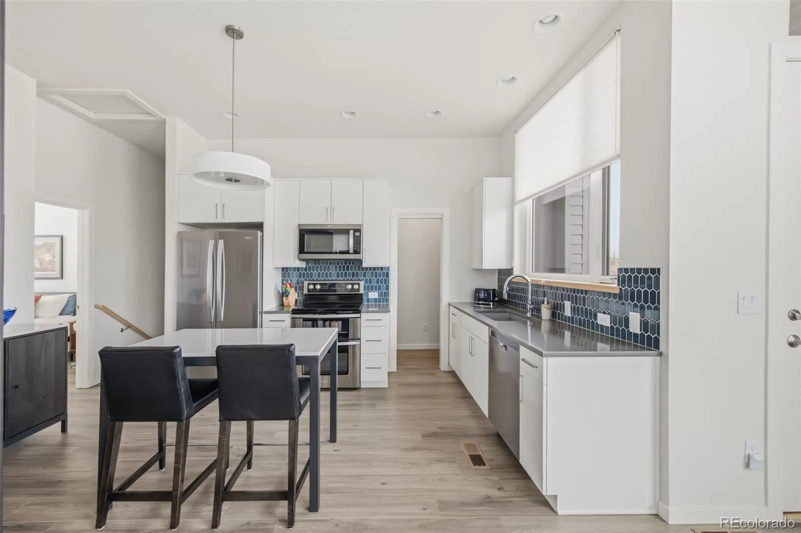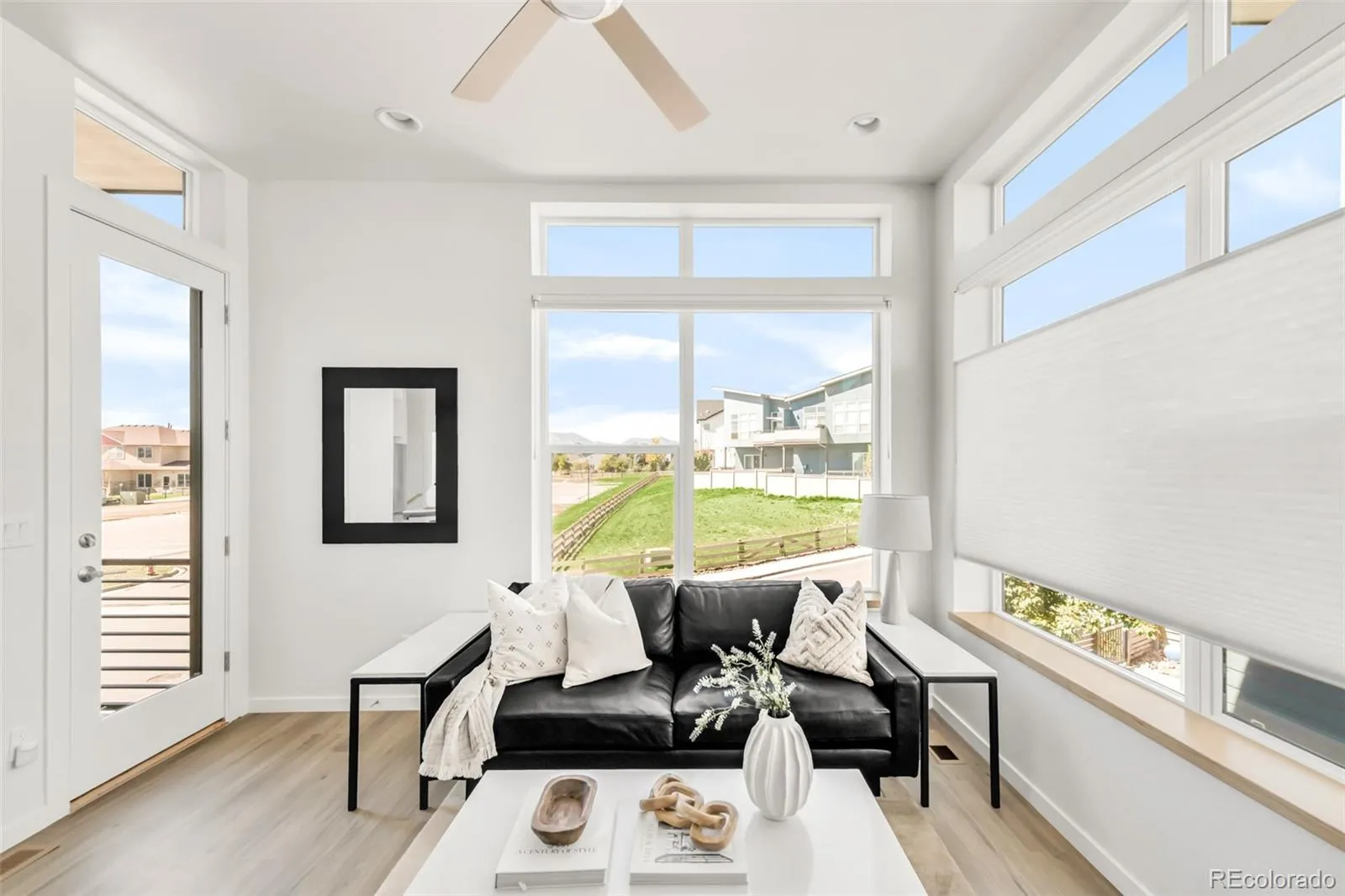 Discover refined, low-maintenance living in this nearly new, impeccably maintained townhome nestled within the Blue Sage community. Featuring a contemporary side-by-side duplex design, this residence boasts expansive windows framing breathtaking Front Range views and glowing evening sunsets from the upper deck. A fenced, landscaped front yard leads into an open-concept layout flowing with LVP flooring throughout. Upstairs, an elegant kitchen flaunts stainless steel appliances and a pantry with a pocket door and Elfa closet system. The main-level bedroom offers an en-suite bath, while the upper-level bedrooms feature walk-in closets with Elfa closet systems for elevated organization. A main-level drop zone/mudroom provides direct access to the attached two-car garage. Surrounded by paths leading to Waneka Lake, Hecla Lake and the Coal Creek Trail, and just moments from downtown Lafayette and Louisville, this is the perfect lock-and-leave haven in a coveted community.