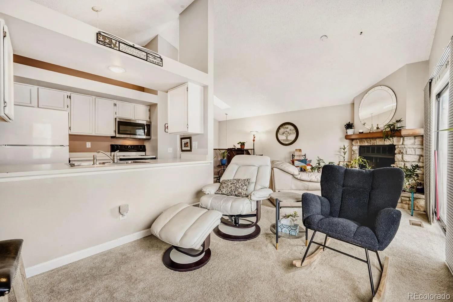 Light-filled living meets everyday comfort in this beautifully maintained Aurora condo! Vaulted ceilings and a skylight bring in abundant natural light, creating an airy, inviting feel throughout. This 2 bed, 2 bath home offers a functional layout with seamless flow between the kitchen, dining, and living areas, perfect for both daily living and entertaining. The spacious primary suite features an en-suite bath and direct access to a private patio, while the second bedroom and additional full bath provide flexibility for guests, a home office, or a versatile bonus space. Enjoy your own outdoor retreat within a quiet, established community. Major system updates provide peace of mind, including a furnace and refrigerator just 2 years old, a 3-year-old water heater, and a roof that was replaced 3 years ago and fully weatherized by Xcel. The exterior has also been recently refreshed with new siding and paint completed less than a year ago. Additional highlights include in-unit laundry, great storage, and a smart, practical layout. Ideally located near shopping, dining, parks, and major commuter routes for easy access throughout the metro area.