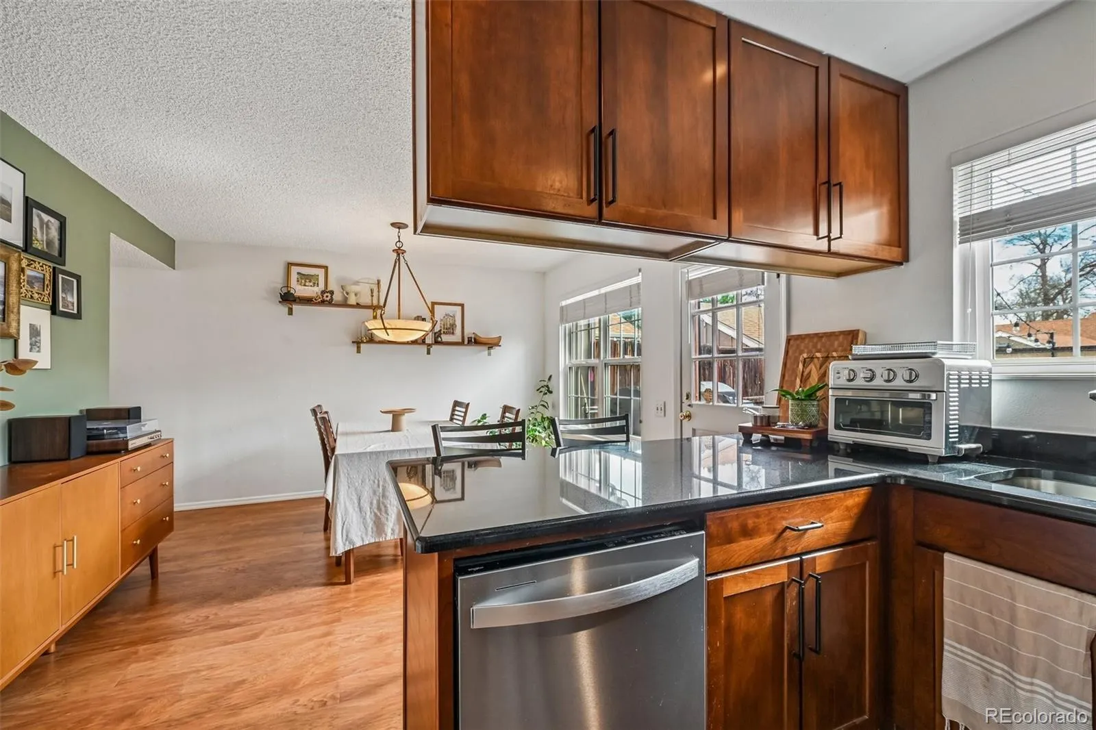 Welcome to your new home in The Village, the highly coveted and quiet townhouse community with low turnover and hard to beat location! This well-maintained townhouse features a large main level with an open living room with wood burning fireplace. The large bay window allows plenty of natural light that makes the space feel warm and welcoming. Beyond the living room is the updated kitchen with granite countertops, stainless steel appliances, and walnut-colored cabinets that perfectly compliment the tasteful laminate flooring. The kitchen opens to a large dining area, with a patio door leading to the enclosed private yard. The backyard features a large Trex deck, perfect for relaxing outside or firing up the grill. There are 2 large raised garden beds for those that want to invite some greenery into their backyard. Beyond the backyard is the detached 2 car garage with additional storage space, and private exterior entrance. Finally, this townhouse features an unfinished basement that’s a blank canvas for those wanting to add an additional bedroom (1 conforming egress window), additional bathroom, and/or large flex space. The Village community features a clubhouse, swimming pool, and tennis courts. Beyond the picturesque community lies easy access to Stone House Park and the Bear Creek Greenbelt with miles of both paved and dirt trails for walking and biking, and multiple ponds and a large creek for fishing and enjoying. The Village is adjacent to a large shopping center with restaurants, the popular New York Bagel Cafe, shopping, and modern conveniences. Easy access to 285/Hampden. 15 minutes to downtown Denver, 10 minutes to Bear Creek Lake Park and Red Rocks Amphitheater. This community is the perfect blend of modern conveniences with easy access to amazing parks and trails. Enjoy all that Colorado has to offer in your new home at The Village. You’ll love living here!