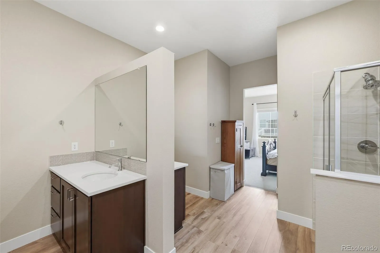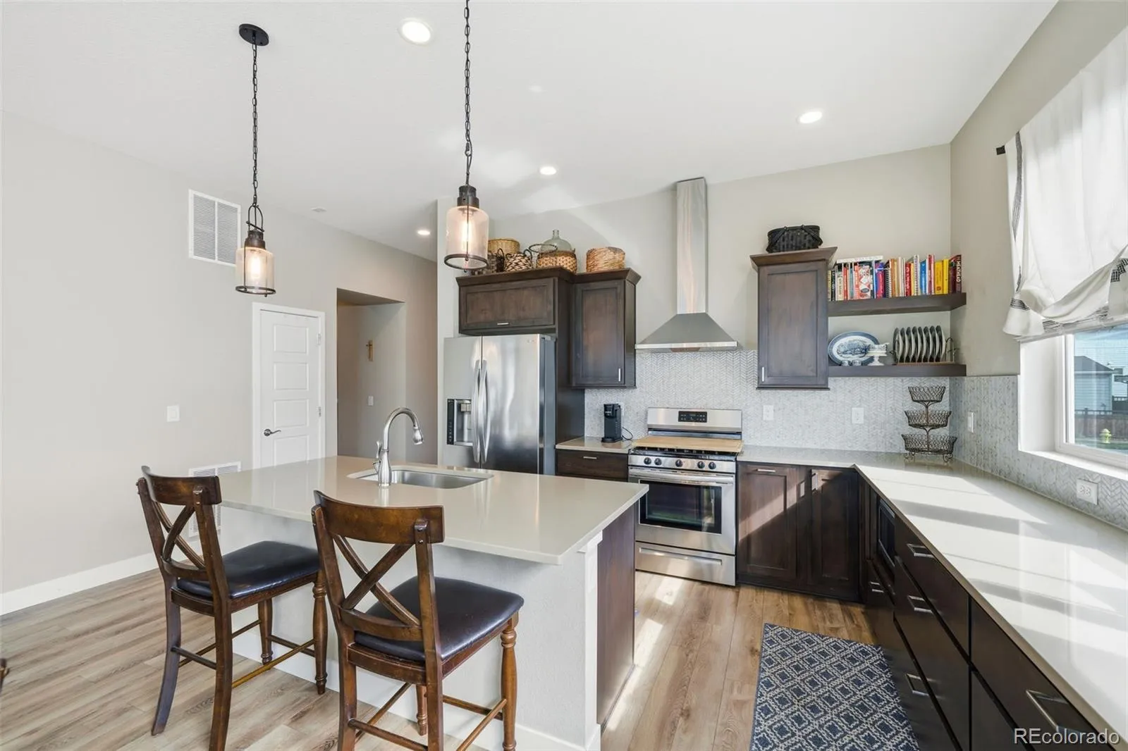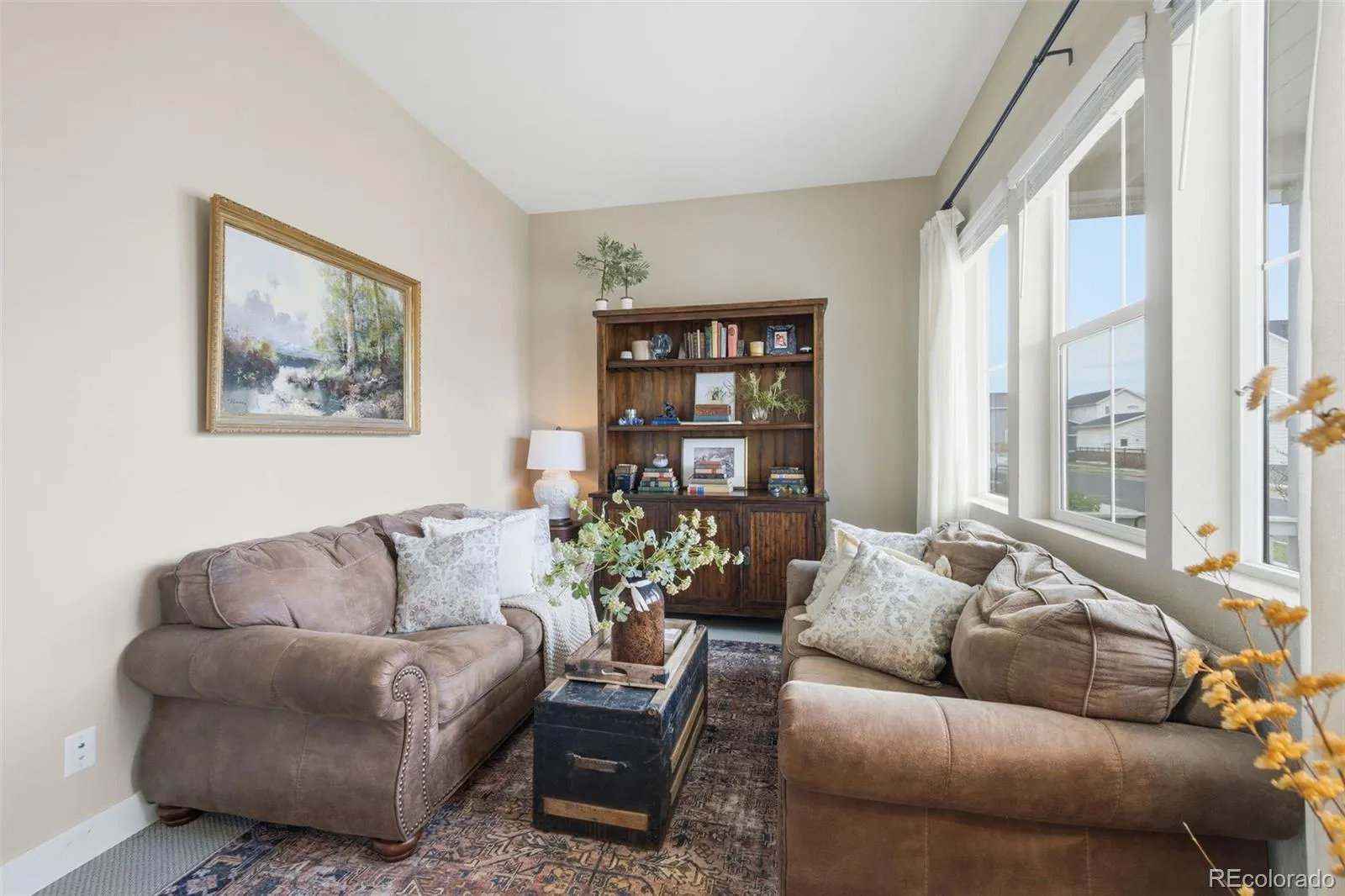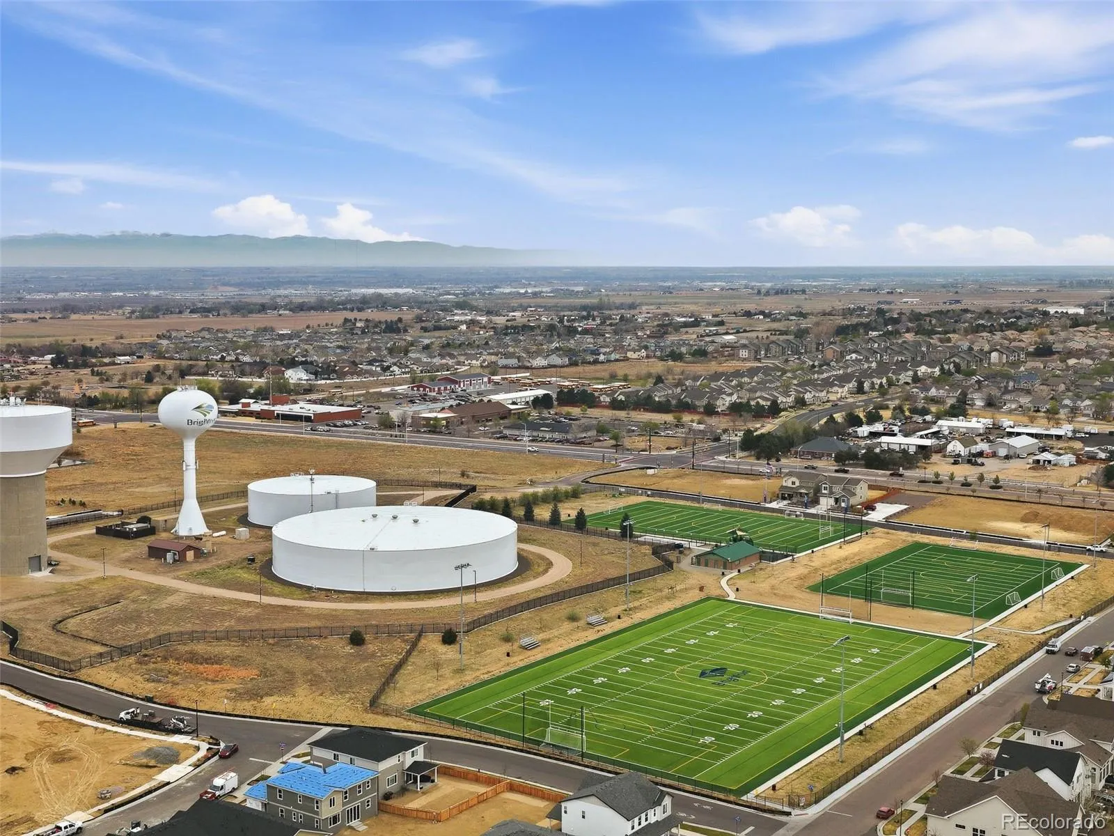 Welcome to this beautifully maintained ranch-style home in the highly desirable Brighton Crossing community, offering nearly 3,900 square feet of thoughtfully designed living space and true main-floor living at its finest. Built just 6 years ago and meticulously cared for, this home features 4 bedrooms, 3 bathrooms, and a full partially finished basement with room to grow. The main level is bright and inviting with abundant natural light, enhanced by large windows and durable luxury vinyl plank flooring throughout. The open-concept layout seamlessly connects the kitchen, dining area, and living room. Perfect for everyday living and entertaining. The kitchen is a standout with quartz countertops, a gas range, a spacious center island with seating, and plenty of counter space. Just off the kitchen, you’ll find a custom butler’s pantry in your main floor laundry room, offering exceptional storage for small appliances and bulk items. The main-floor primary suite features a spacious en-suite bathroom with dual vanities and separate counter space, a large walk-in shower, and generous closet space. Two additional bedrooms and a dedicated study on the main level offer flexibility for a variety of needs. The professionally finished basement expands your living space with a large family room, a fourth bedroom, and a bathroom, ideal for guests, teens, or in-laws. There is also substantial unfinished space, perfect for storage or future expansion, including the potential for a fifth bedroom. Situated on a corner lot, the home also features a rare two-car pull-through garage with access from both the front and rear alley, plus electric vehicle charging capability. As part of the Brighton Crossing community, residents enjoy access to outstanding amenities including the Venture Center water park, pool, fitness centers, dog park, and multiple neighborhood parks. Conveniently located near schools, shopping, dining, and everyday essentials.