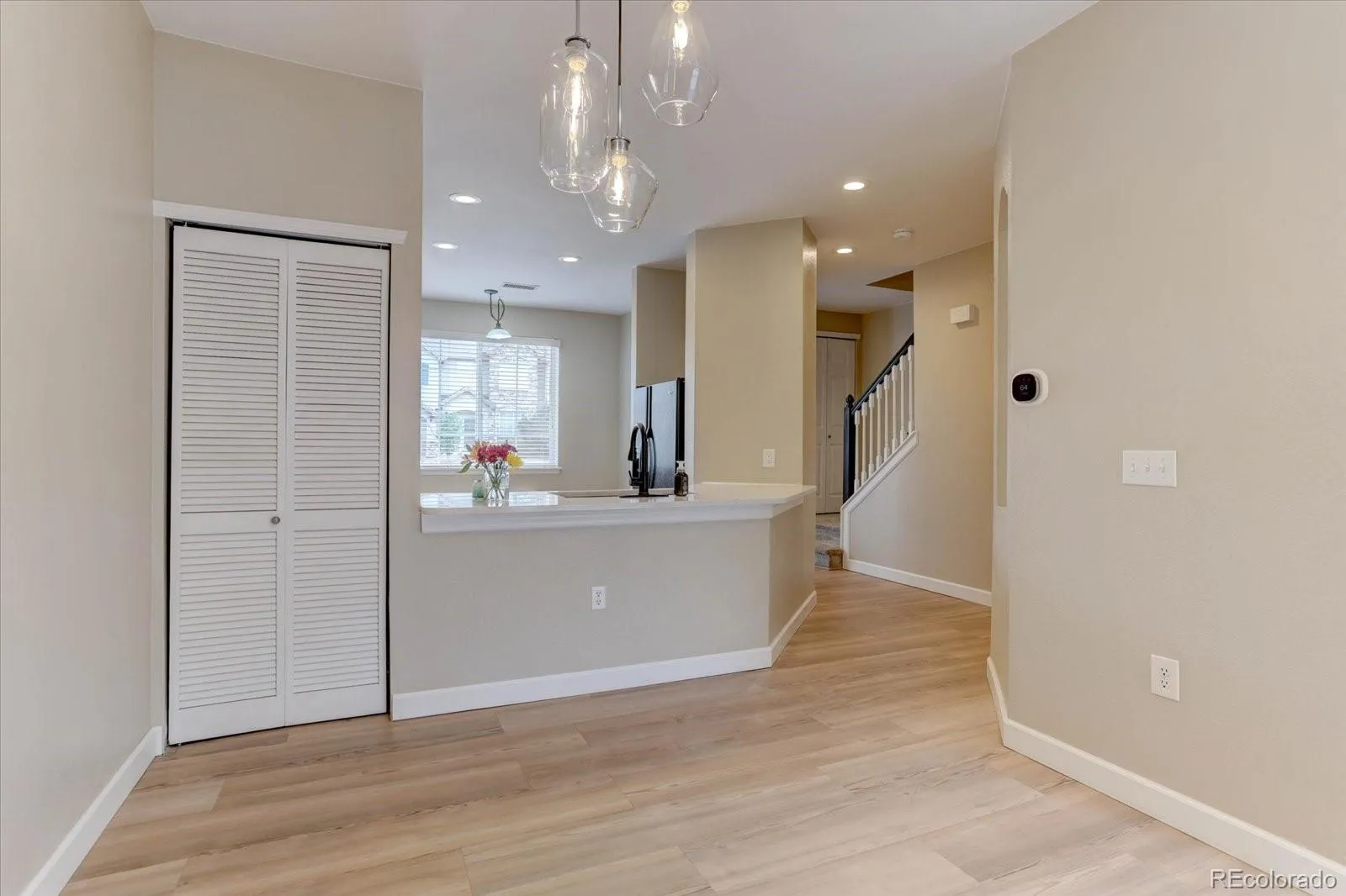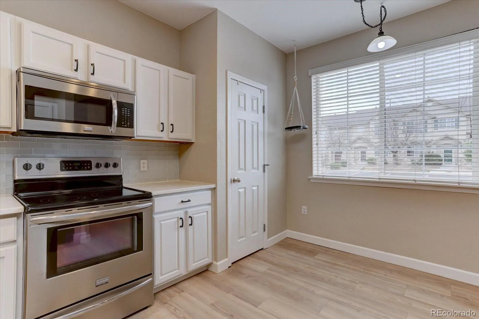 Welcome to this beautifully updated 2-bed, 2.5-bath townhome in the vibrant Sage Creek community of Thornton. Recent upgrades provide peace of mind and modern style, including ALL NEW INTERIOR PAINT (2025-2026), NEW LVP FLOORS (2025) BRAND NEW FURNACE AND AC (2025) NEW WATER HEATER (2025) NEW ROOF (2019). You’ll also find tasteful updates including kitchen countertops and backsplash, lighting and mirrors. Inside, the 1,446 sq ft layout offers a comfortable and functional two-story design. Both of the spacious upstairs bedrooms feature vaulted ceilings, fans, walk-in closets, and their own private bathrooms. Your washer and dryer are conveniently located between the two bedrooms with additional shelving for storage. Enjoy your fully fenced backyard with low-maintenance artificial turf—perfect for pets, relaxing, or entertaining. Storage is abundant with ample interior closets plus an outdoor shed. Additional highlights include two dedicated parking spaces directly in front of the home, and an HOA that covers front yard maintenance, trash, pool, and exterior upkeep. Don’t miss the best looking, well kept, and most updated townhome in Sage Creek!