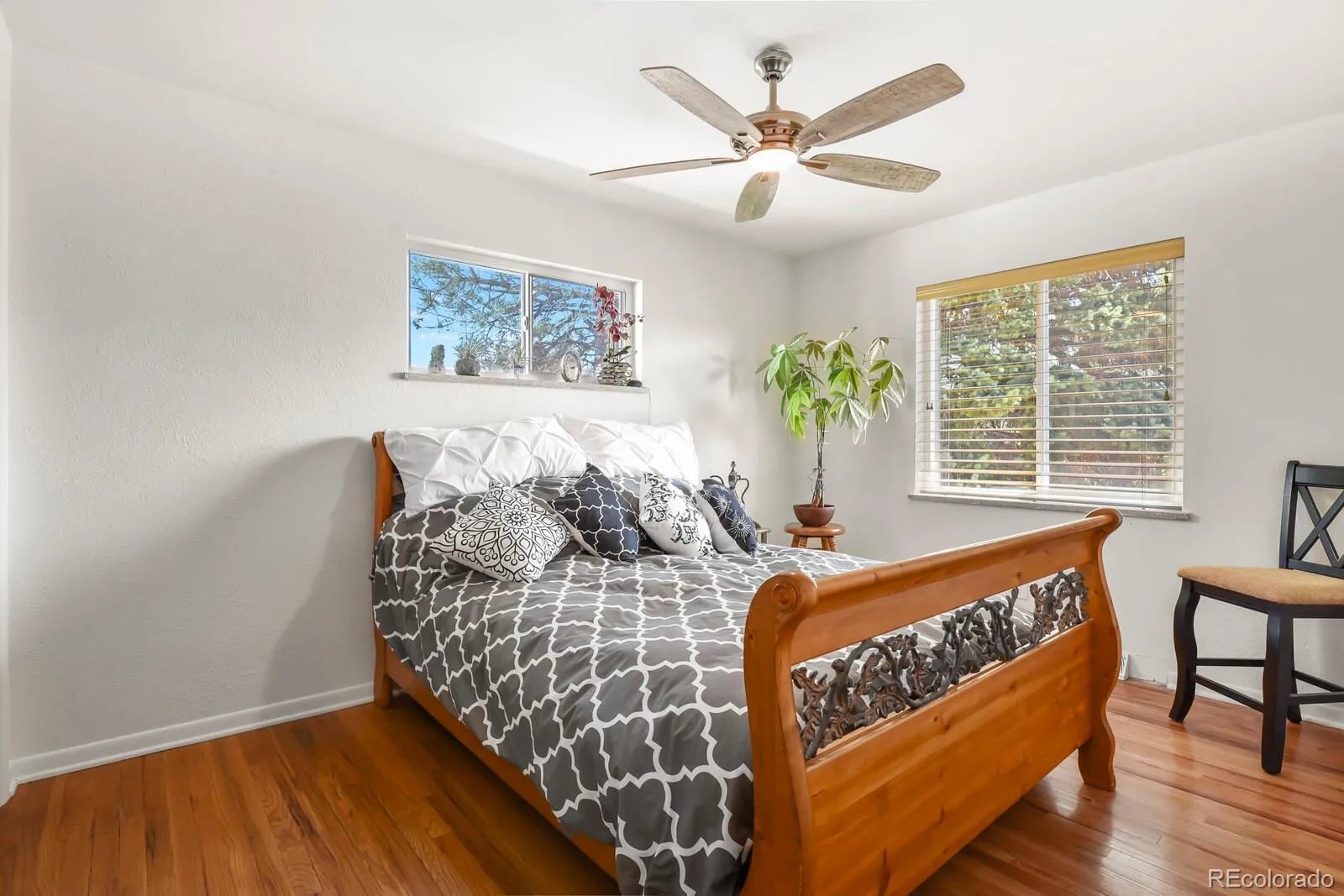 A mid-century modern home in Arvada just minutes from Olde Town Arvada, Arvada Plaza and the Light Rail Station. This home has been beautifully maintained by the second owners, updated with Solar panels (fully paid), 19 new windows (with the transferable warranty to buyers). Equipped security wrought iron doors in front and back and 2 full kitchens the option for an “In-Law Suite” or investment property is wonderful, with separate entrance in the back. The main living area has natural light and original hardwood floors accented with coved ceilings, plaster walls including a Venetian plaster wall in the dining room. The main level kitchen has the original electric oven and gas 5 burner table top, which has been maintained regularly and fully functioning. The layout flows easily from room to room.