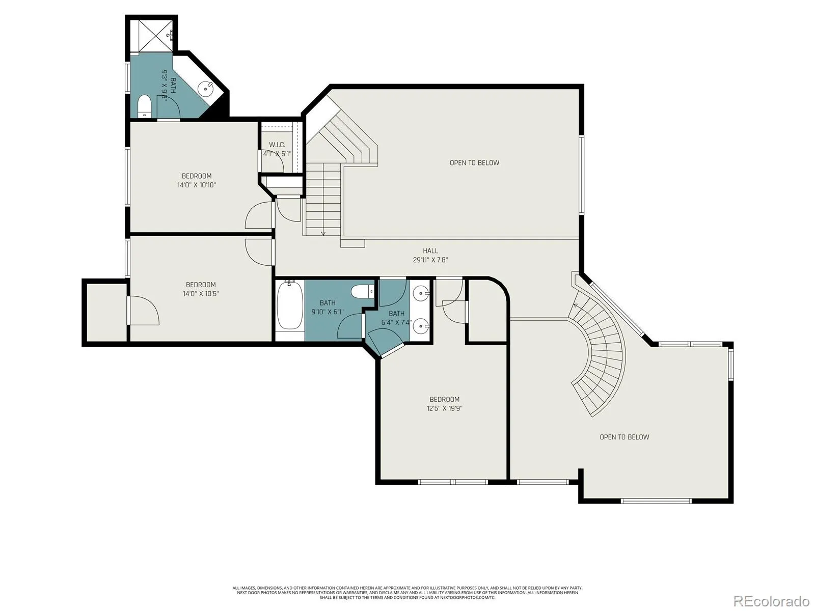 Upper level features 3 bedrooms, 2 full baths, and an open walkway overlooking the main floor.