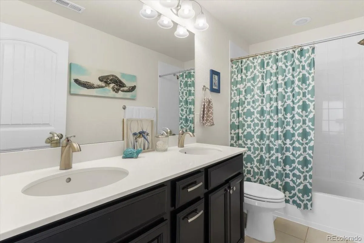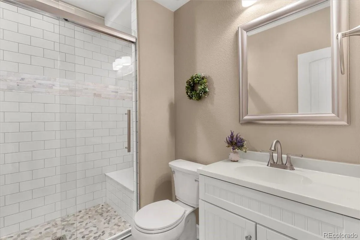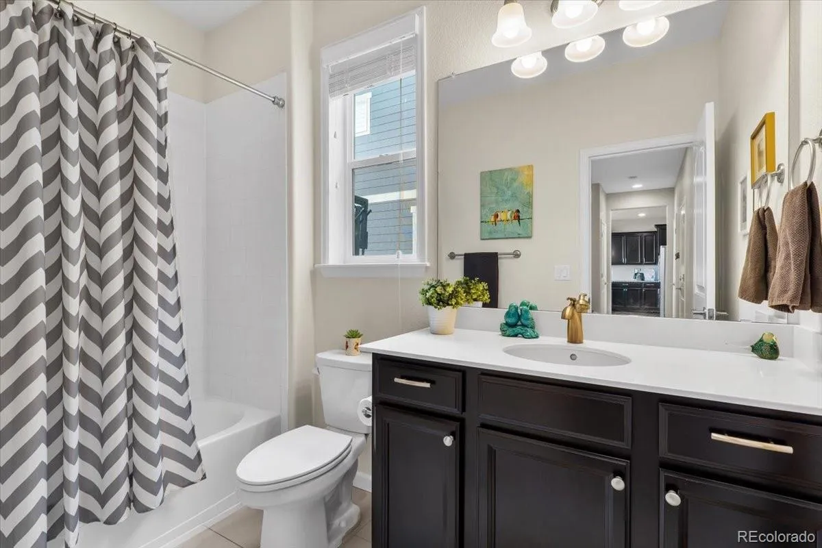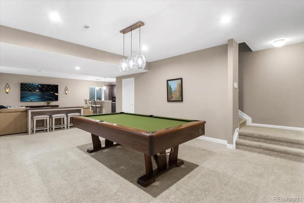 This stunning 5-bedroom, 4-bathroom home sits on a spacious lot along the Buffalo Run Golf Course, offering breathtaking mountain views from the backyard—perfect for enjoying unforgettable sunsets. Designed for both comfort and entertaining, the home features an open-concept layout with a gourmet kitchen, granite countertops, and a formal dining room. The expansive primary suite provides a private retreat, while the huge finished basement includes a wet bar, creating the ideal space for gatherings. Step outside to a beautifully designed outdoor living area complete with a deck, pergola, pattern-stamped concrete patio, and a cozy fire pit—perfect for year-round enjoyment. Additional highlights include an oversized 2-car garage, professionally landscaped yard, and a neighborhood park nearby. Conveniently located just a short drive to DIA, this home offers both tranquility and accessibility. Completely move-in ready with brand-new carpet, this exceptional property truly has it all.