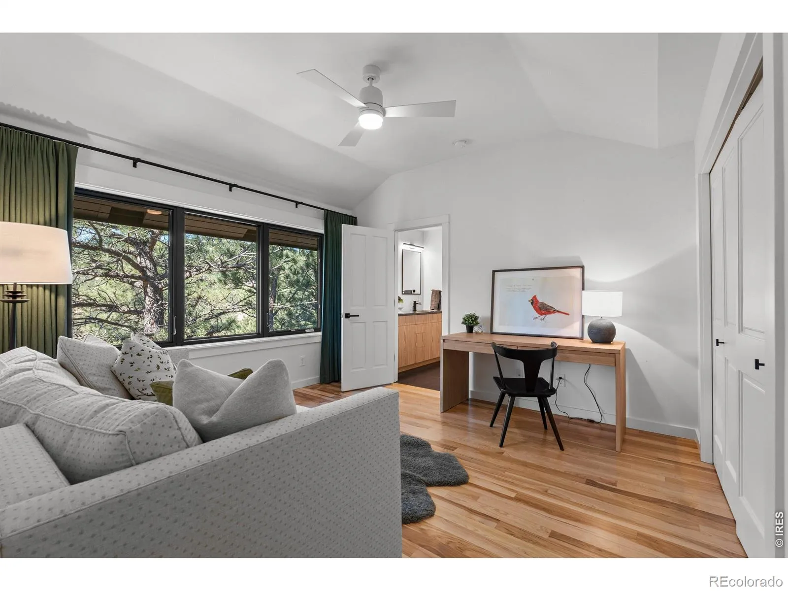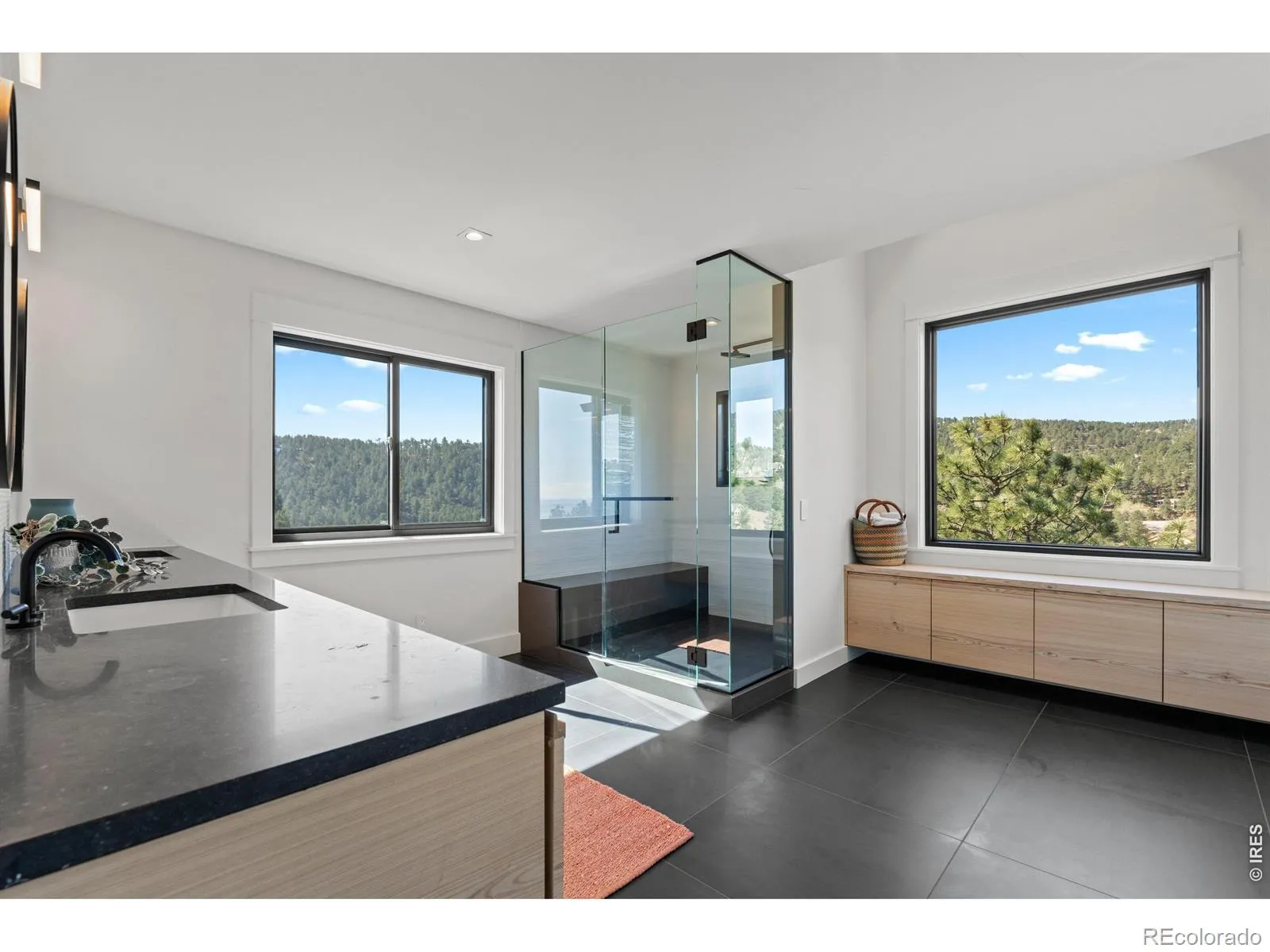 Uncover a cache of secluded mountain magic just 10 minutes from downtown Boulder. Impeccably updated and fully furnished, this is the most turnkey modern-alpine escape around, and it boasts a new, spectacular Trex deck overlooking your own woodsy property, fragrant pine forests, and all of Boulder Valley below. This home is the pinnacle of tasteful design and features a chic, open kitchen with brand-new granite counters, high-end appliances and gorgeous, white cabinetry. Exposed metal beams and hardwood floors provide contrast in the airy, bright living room, with its new gas fireplace and huge hearth (for cozy winter evenings watching snowfall). The dining room opens to the deck with glass doors that create seamless flow to the great outdoors. You also have a flagstone dining cove and a second deck tucked among the trees below for epic entertaining. Upstairs, the primary suite’s vaulted ceilings and views all the way to Denver create a top-of-the-world sensation. Enjoy an enormous walk-in closet, plus a spa-like designer bath with its own vistas. Two more airy, upstairs bedrooms flank a spacious Jack-and-Jill bath. The basement offers more flexibility with a guest room and bath, a movie room and a large game room with deck access. A newer roof, newer exterior paint and luxe window coverings mean there’s nothing for you to do but move in and live your best Boulder life.