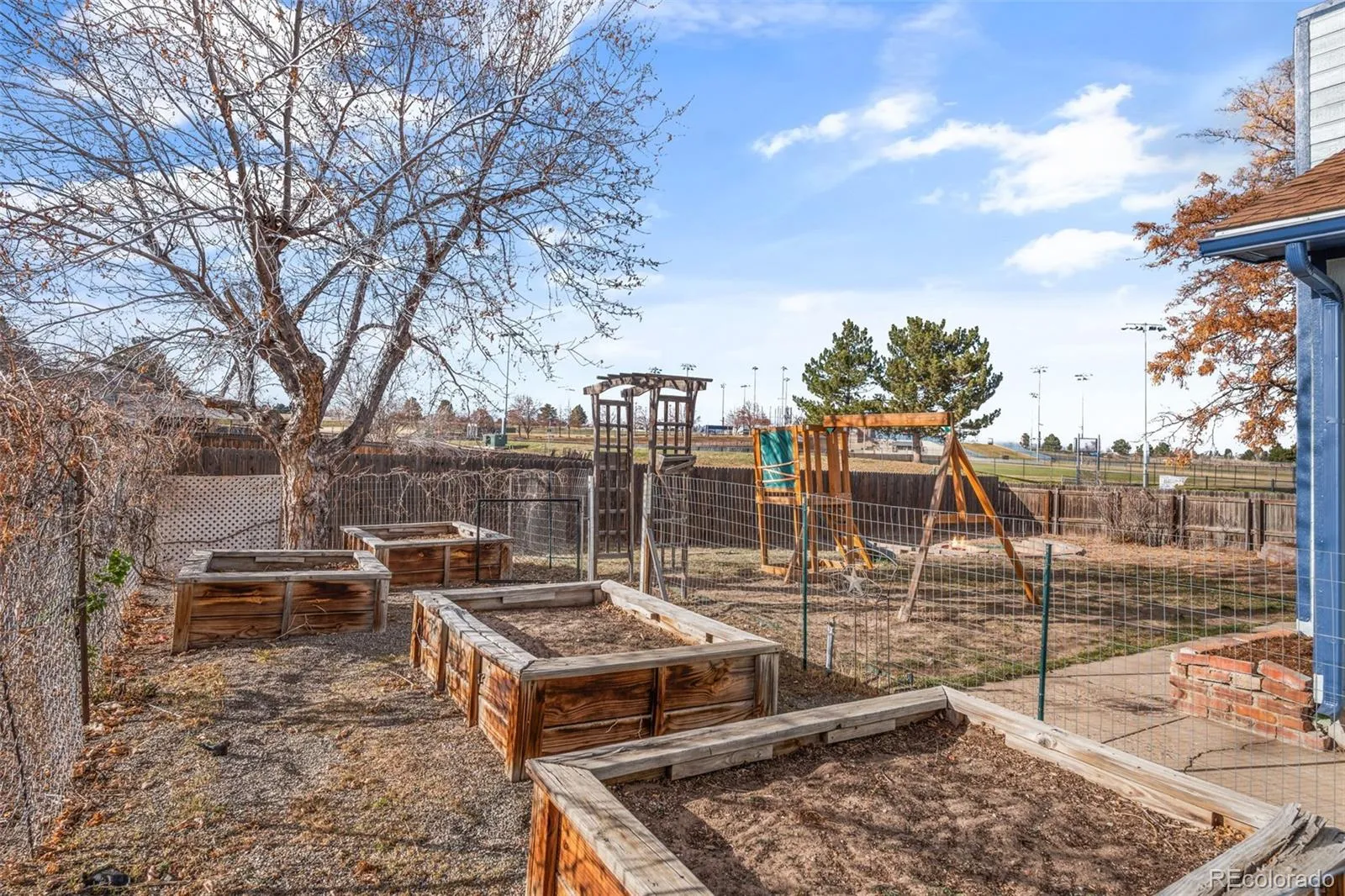 Welcome to this well-cared-for, original-owner corner-lot home in Aurora—thoughtfully maintained over the years with major system improvements and a layout designed for everyday comfort. New sewer line, new electrical panel, new paint inside and out, new furnace and warranties! The main level features a bright front formal living room with a large bay window, flowing into the kitchen with a gas range, stainless steel appliances, new faux-marble laminate countertops, abundant storage (don’t miss the pantry!), and space for both a breakfast nook and bar seating. Just through the kitchen you’ll find a second cozy living room filled with natural light, complete with beautiful built-ins, a wood-burning fireplace, and plenty of room for entertaining. Sliding glass doors lead to the expansive backyard. Outside, enjoy fresh exterior paint, a large concrete patio, mature shade trees, raised garden beds, and a stone-lined fire pit—creating endless options for outdoor living. The extended driveway and side-access brick paver area provide additional space for parking, trailers, or toys. On the main floor, you’ll find the primary suite with an en-suite ¾ bathroom, along with two additional generously sized bedrooms and a full bath off the hallway. The finished basement adds valuable flex space, including a large rec room, two flex-sized bedrooms, a full bathroom, a dedicated laundry room with cabinetry and workspace, and a separate storage/utility area. This lower level offers endless possibilities, guest area, hobby rooms, home office, or playroom. This home has been lovingly maintained and is move-in ready as-is, with plenty of opportunity to update, personalize, and build future equity at your own pace. Nearby, you’ll find Cherry Creek State Park, several neighborhood parks, and easy access to schools, shopping, and E-470. Centre Hills Park and its disc golf course are approximately a 12-minute drive away. Virtual Tour added so you can walk through house 🙂