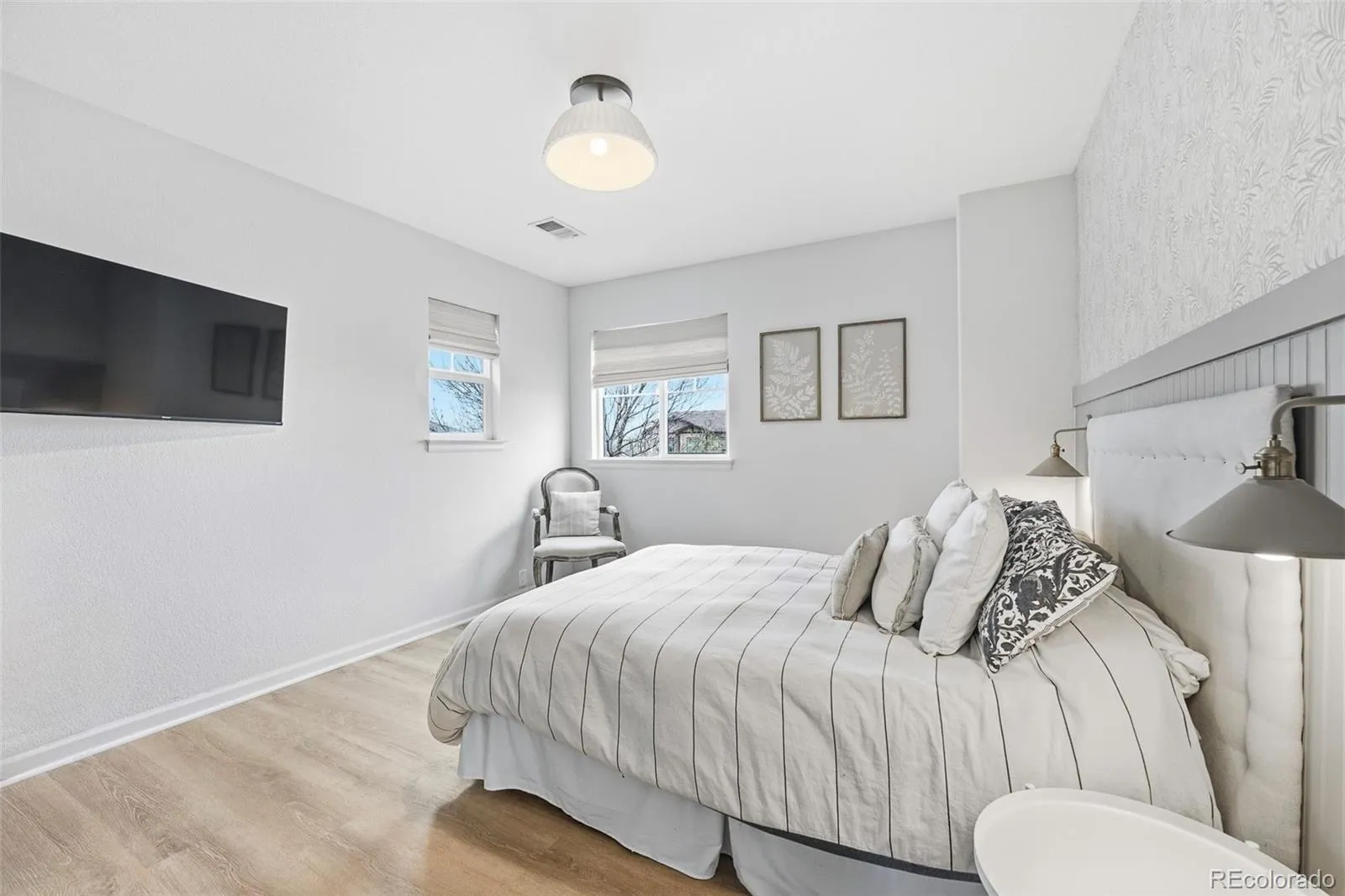 Step inside to be greeted by a light and bright open floor plan with soaring ceilings and tons of windows, enhanced by recently renovated kitchen, baths, and faux wood flooring throughout. The spacious kitchen boasts stylish finishes and updated features, plus there are two dining areas, making it a perfect space for cooking and entertaining. The main floor also has a bedroom or office, 3/4 bath, laundry room, and surround sound. Upstairs you will find the oversized primary suite with peek-a-boo mountain views, two additional bedrooms, another renovated full bath, and a versatile loft area.