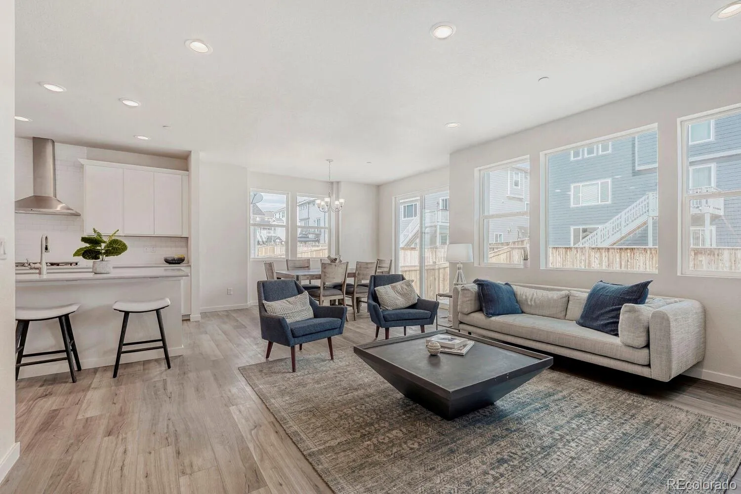 This beautiful two-story home offering 3,260 finished square feet is west facing and MOVE IN READY. This thoughtfully designed home comes FULLY FENCED, FULLY LANDSCAPED and features 5 spacious bedrooms, including one in the finished basement & one on the main level. There are 4 baths, including a full bath on the main level. There is also a versatile loft, and a welcoming front study. The gourmet kitchen is adorned with a large island and quartz countertops throughout as well as a MORNING KITCHEN to the side, gas range, with hood and wall oven with microwave. The FINISHED BASEMENT has a bedroom, full bath, rec room, and is plumbed for a wet bar. This home also comes with 2 HVAC units for optimal temperature control between the upstairs and the basement as well as a tankless water heater. The 3-car garage is fully finished, providing ample storage and convenience.