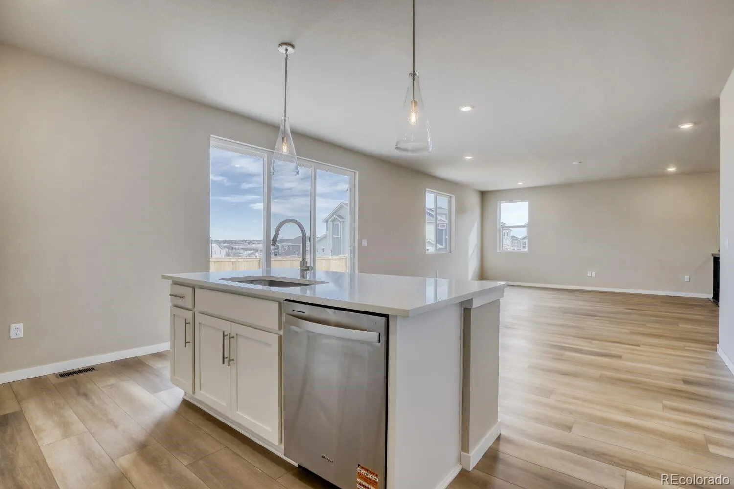 Brand new MOVE-IN READY home in the highly sought-after Looking Glass community in Parker! This stunning ‘Silverthorne’ ranch-style home blends modern design with effortless main-level living. The luxury kitchen is an entertainer’s dream, showcasing 42″ white cabinetry, sleek quartz countertops, and premium Whirlpool appliances including a 36″ gas cooktop, designer hood, and built-in microwave/oven. Unwind in the spacious, light-filled living area or envision future possibilities in the full unfinished basement, complete with rough-in plumbing for easy expansion. Perfectly positioned, this homesite sides to a community walking path, offering added privacy and direct access to the neighborhood’s scenic outdoor spaces. Enjoy the charm of rolling hills, nearby parks, and all the dining, shopping, and recreation that Parker has to offer. Move in now and start living your dream—schedule your private showing today!