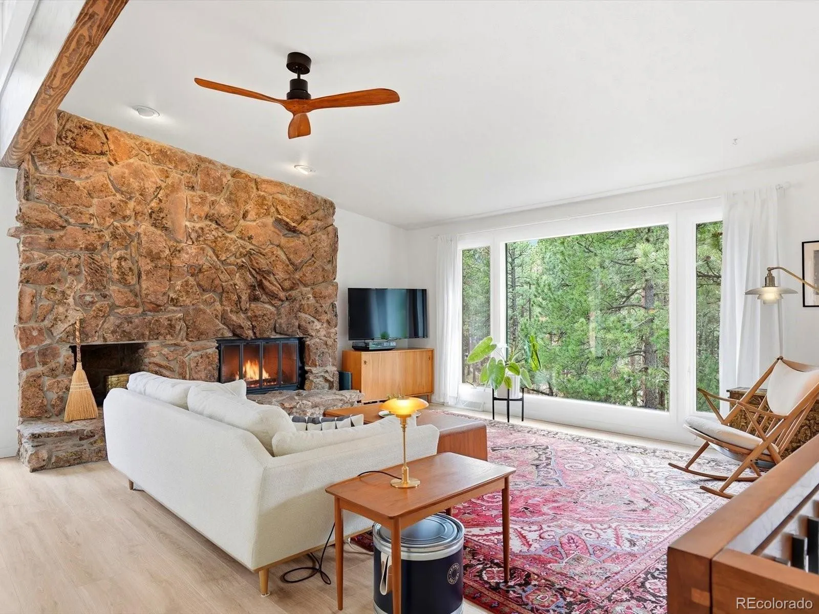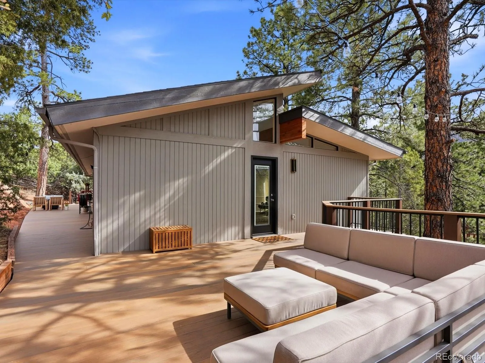 Gorgeous Perry Park Home! It really lives up to the street name, because here, your backyard is literally red rock formations! You’re surrounded by nature on this 1-acre lot, as you take in the beautiful views from the composite wrap-around deck. The home itself has a wonderful open feel—mountain modern architecture with mid-mod vibes, including vaulted ceilings, exposed beams and high clerestory windows. On the main level the spacious living room with luxury vinyl plank floors and grand stone fireplace flows into the dining area, where French doors open to the back deck. The remodeled kitchen is modern with sleek walnut and white cabinets, quartz counters and stainless-steel Kitchen Aid appliances. Down the hall the impressive primary suite awaits, with a large walk-in closet and completely remodeled 5-piece ensuite bath featuring a freestanding tub, quartz counters and just the right amount of bling in the wall tile. On the lower level, in addition to the entry foyer you’ll find a cozy family room with wet bar, two generous bedrooms and two bathrooms. The full bath was completely remodeled in 2023, along with new carpet and paint throughout this level and updates to the half bath. Outside, multiple gathering spaces include the large back/side deck, firepit area, front deck and yard nestled among tall pines. On the side of the house a fenced garden area keeps your veggies safe from the local wildlife. A two-car detached garage with extra storage, generous driveway and additional parking/RV pad offers plenty of space for visitors. If you’re looking for even more privacy, the adjacent vacant lot is also available to purchase. Take advantage of nearby Perry Park Country Club with golfing/dining, as well as open spaces like Sandstone Ranch and Dawson Butte just a couple minutes away. Many forest service trails are close by, too. What a serene setting to enjoy the beauty of Colorado!
