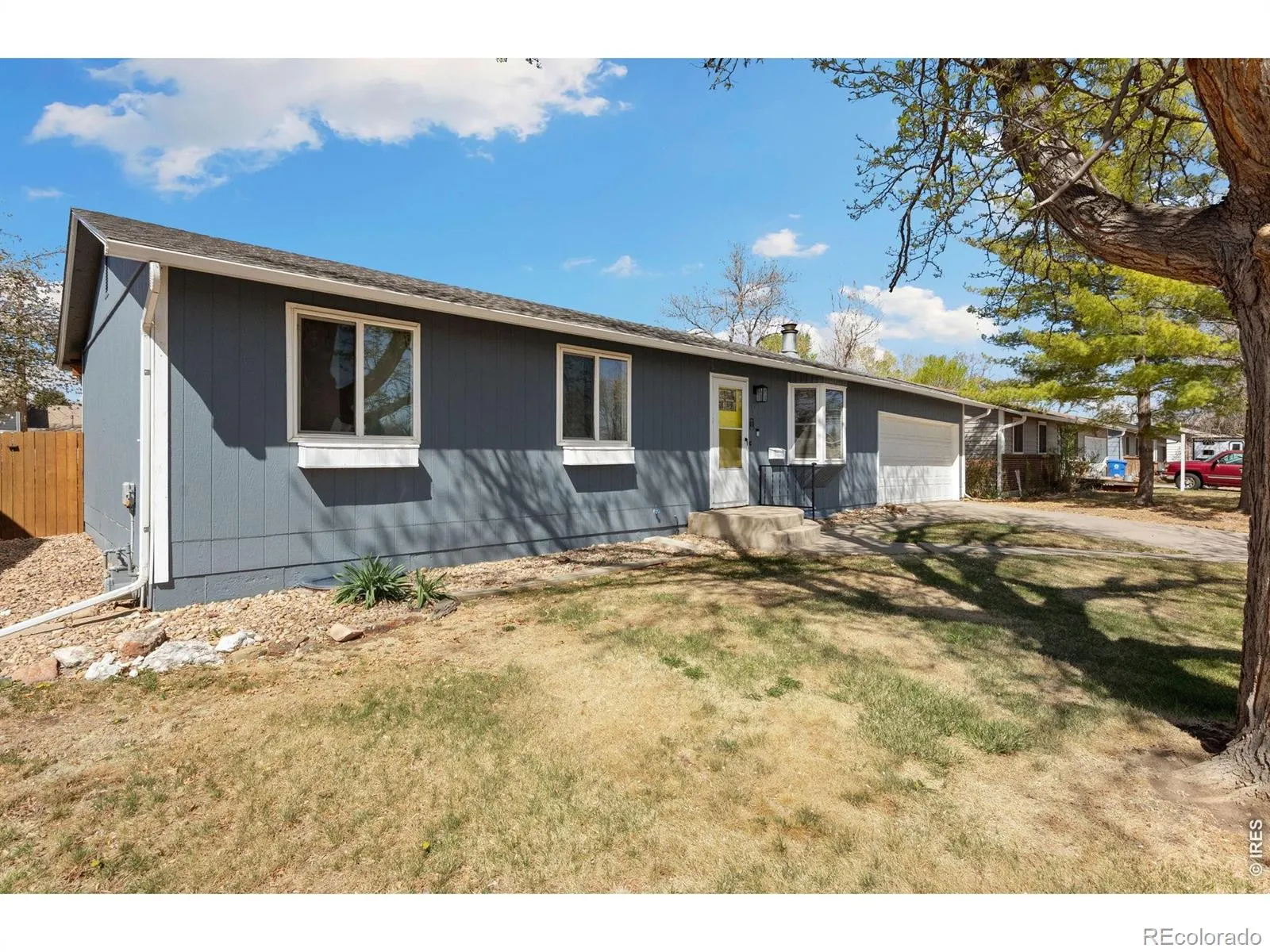 Welcome to 3411 North Douglas Avenue in the charming Sunset Acres neighborhood! This well-maintained ranch-style home offers nearly 1,900 finished square feet of comfortable living space, featuring 4 bedrooms plus a versatile flex room or office in the finished basement, along with 2 bathrooms and an attached 2-car garage. Ideally located directly across the street from Lincoln Elementary and within walking distance to Loveland High School, this home combines convenience with a welcoming community feel. The main level offers a spacious living room with attractive laminate wood flooring, three bedrooms, a full bathroom, and a stylishly updated eat-in kitchen perfect for everyday living and entertaining. Downstairs, the finished basement expands your living space with an additional bedroom, a flex room/office (non-conforming), a 3/4 bathroom and a generously sized recreation room complete with a cozy gas fireplace. Enjoy great curb appeal with a recently painted exterior and a newer roof. The spacious backyard is ideal for gatherings, featuring a covered patio and built-in seating, perfect for relaxing or entertaining guests. This home is the perfect blend of comfort, convenience, and charm, ready for its next owner!