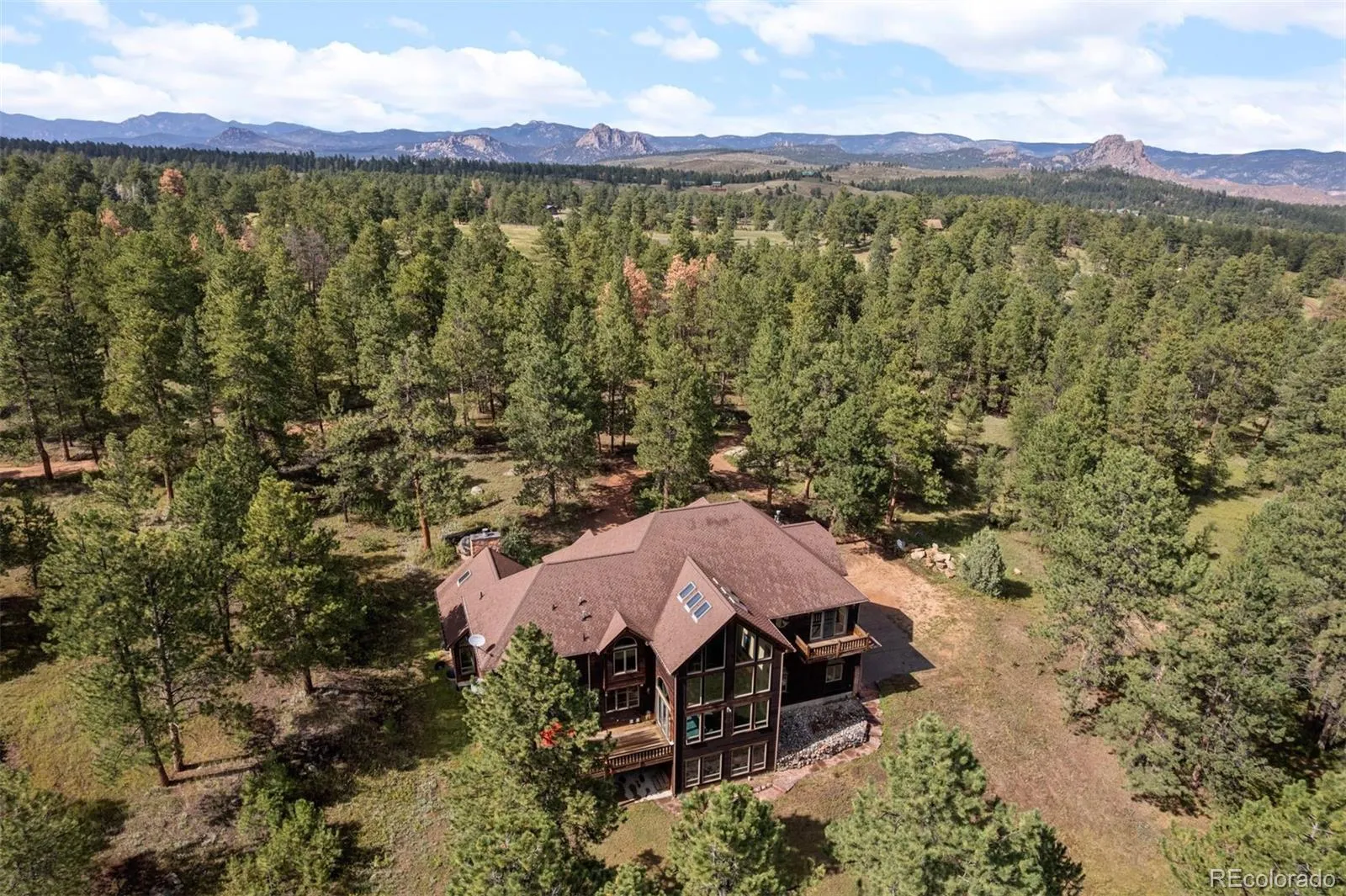 Discover the perfect blend of space, comfort, and Colorado living in this impressive 8,200 sq ft custom home backing onto Pike National Forest. Soaring ceilings with wood beams and skylights provide an abundance of natural light throughout. The home offers an exceptionally large and inviting space, a gas fireplace, 8-foot solid oak doors, and a private balcony for relaxation.