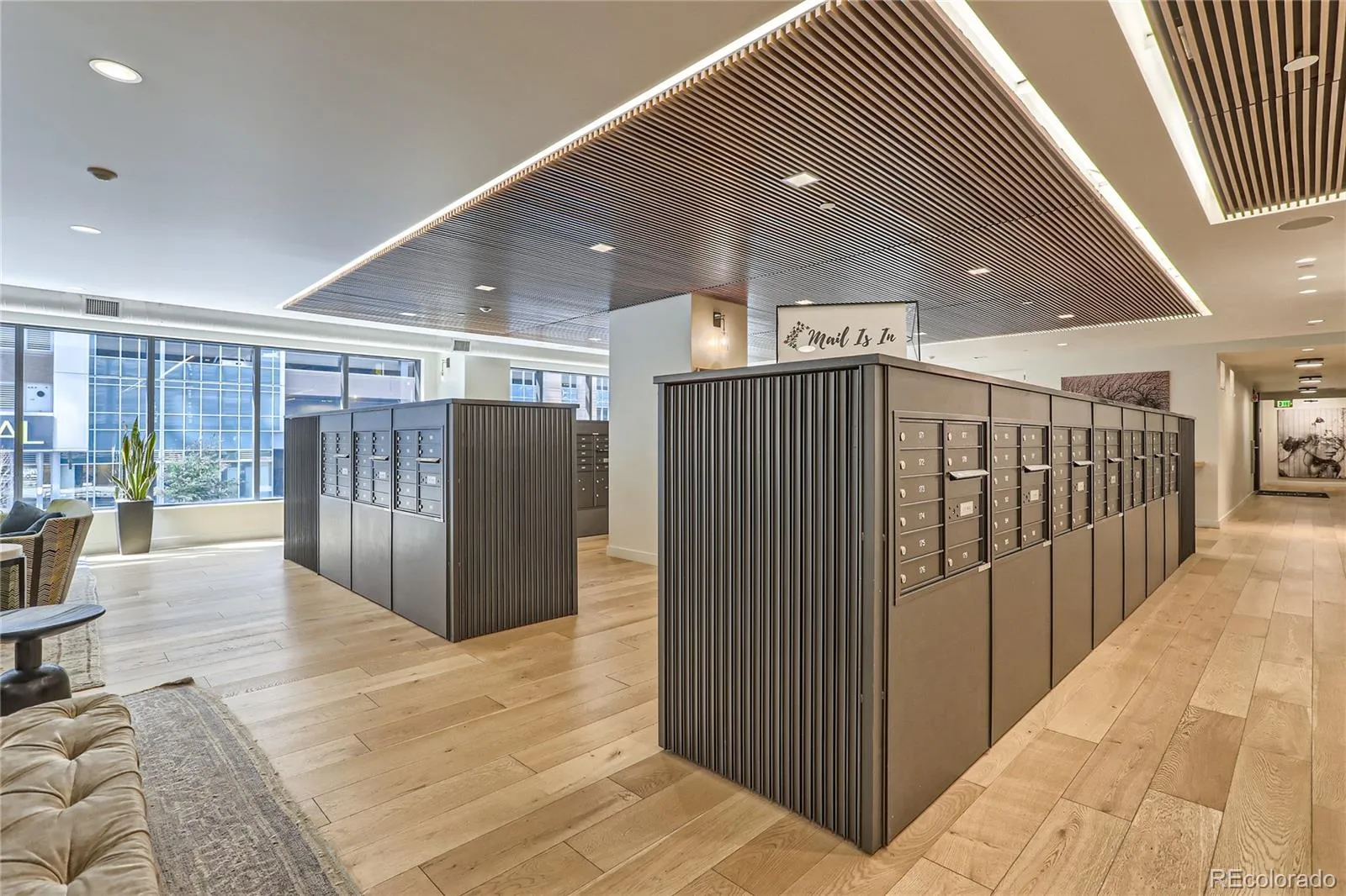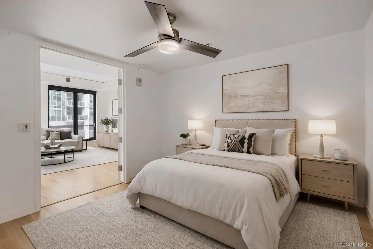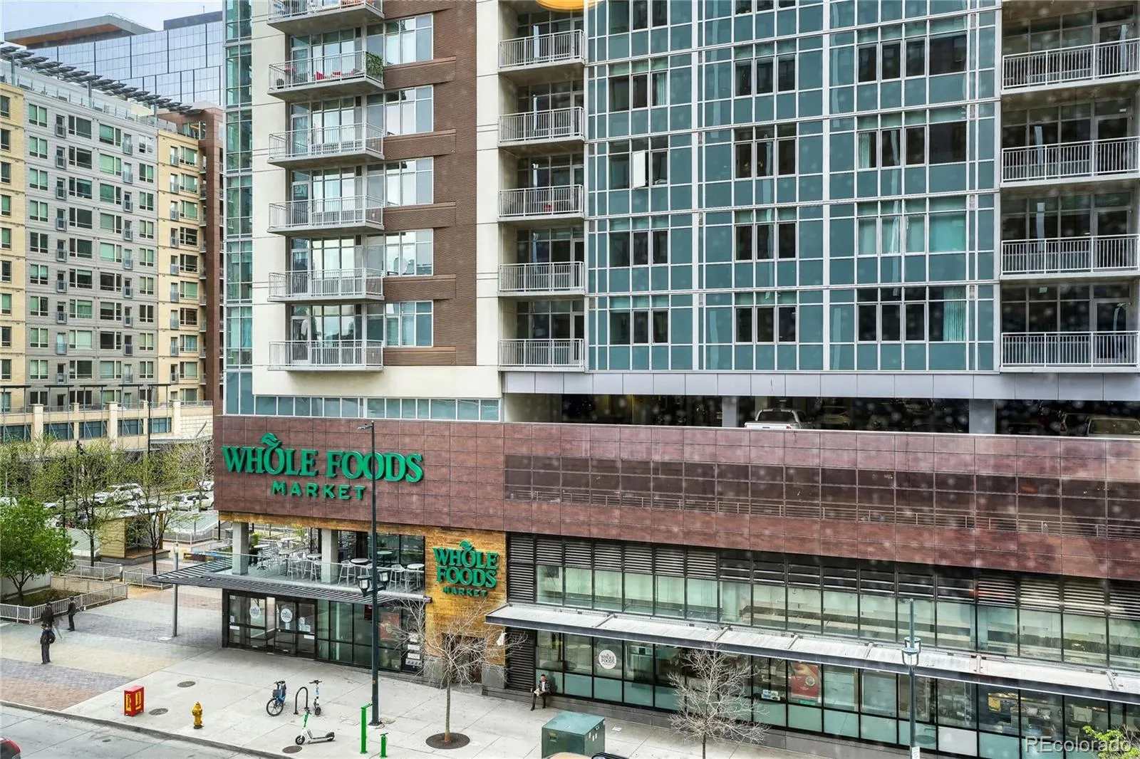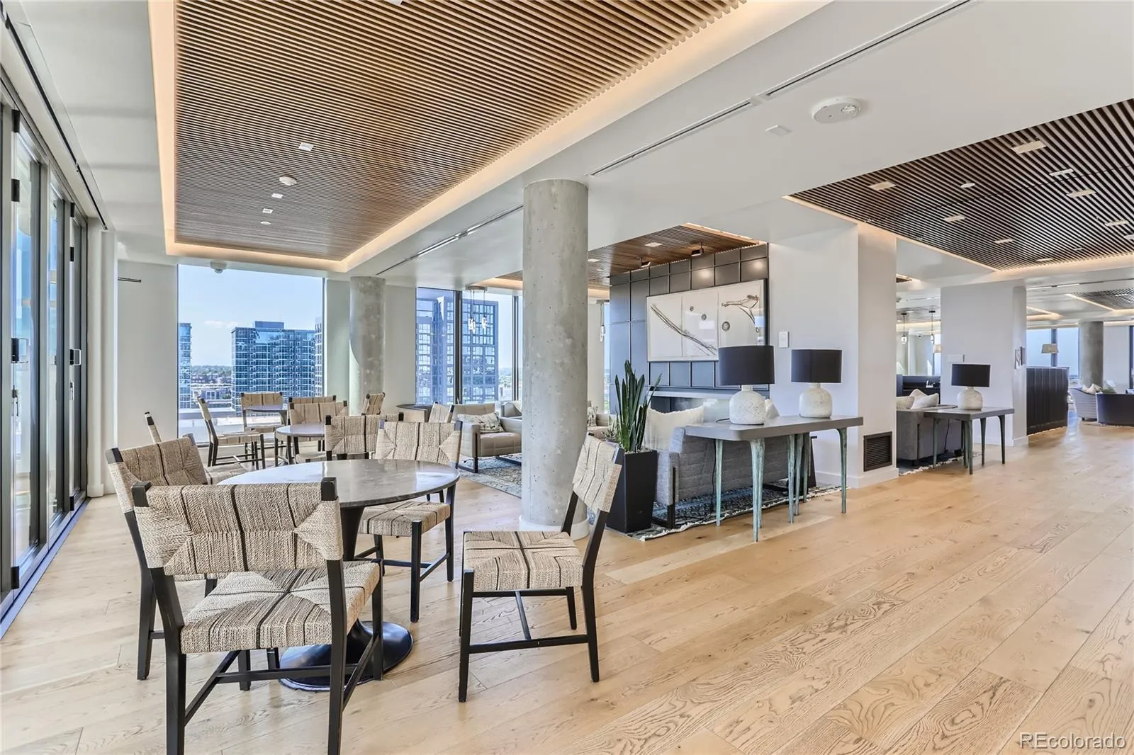 Located in the heart of Denver’s vibrant Union Station neighborhood, this stunning residence places you steps from some of the city’s best dining, shopping, and entertainment. Whole Foods and CVS are directly across the street, and Union Station is just outside your door, making commuting effortless with the convenient “A” Line train providing direct access to DIA. This spacious one-bedroom condo welcomes you with a bright, open-concept layout highlighted by a dramatic wall of windows and soaring 9’6″ ceilings that flood the living space with natural light. The modern kitchen features upscale finishes expected in a luxury high-rise, including quartz countertops, Bosch stainless steel appliances, a five-burner gas cooktop, farmhouse sink, and elegant marble backsplash that complements the included kitchen table and chairs. A built-in desk adds a convenient workspace. Upgraded wood flooring runs throughout the living space, bedroom, and closet. The living area features a drop-down movie screen and video equipment for an in-home theater experience. The large bedroom includes a ceiling fan and connects to a generous walk-in closet. A full-size stackable washer and dryer and a spacious five-piece ensuite bathroom add convenience. The entry foyer/mudroom also includes a half bath for guests. Additional highlights include automatic blinds and a private storage unit across the hall on the fourth floor. Residents of The Coloradan enjoy exceptional amenities including retail and bike storage on the ground floor, a reception desk, mail center, business center, library, fitness center, and building manager’s office on Level 1.5. The fifth-floor community garden offers a peaceful retreat, while the spectacular 18th-floor clubhouse features a pool, hot tub, BBQ grills, kitchen, pool table, shuffleboard, and gathering spaces with incredible city views. A rare opportunity to enjoy luxury living in one of Denver’s most sought-after locations!