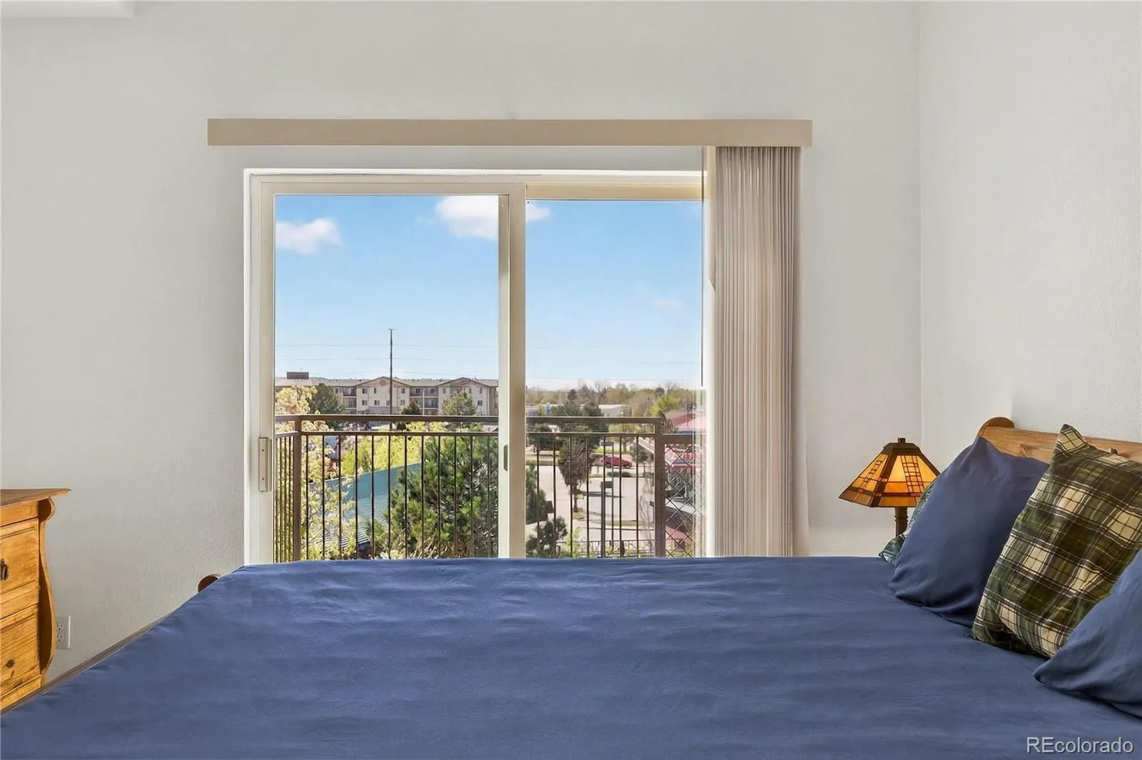 Positioned on the top floor with wide western exposure and sweeping mountain views, this residence stands out for both its condition and setting. Owned by the original owner and never used as a primary residence, it has been lightly lived in, never rented, pet-free, and exceptionally well-maintained. The open-concept layout is both functional and inviting, with a seamless connection between the kitchen and living space. A raised bar creates a natural gathering point while maintaining separation, ideal for everyday living or casual entertaining. The kitchen offers generous counter space, ample cabinetry, and a full appliance suite, opening to a bright living area filled with natural light. Large windows and elevated ceilings enhance the sense of space, while the west-facing balcony extends the living area outdoors. With treetop and mountain views, a gas hookup for grilling, and the perfect orientation for sunset evenings, it’s a true highlight of the home. The primary bedroom continues that connection with its own sliding door to the balcony, creating a comfortable and private retreat. A second bedroom (non-conforming, no window) provides flexibility for guests, a home office, or additional living space. The full bathroom is well-sized with an extended vanity and clean, neutral finishes. Additional highlights include a secure building with elevator access, a deeded garage parking space, plus outdoor guest parking, and beautifully maintained common areas. The location offers everyday convenience with close proximity to parks, restaurants, shopping, and multiple light rail options, along with easy access to I-70, I-225, and Denver International Airport. A low-maintenance, lock-and-leave opportunity with top-floor positioning, natural light, and a level of care that truly sets it apart.