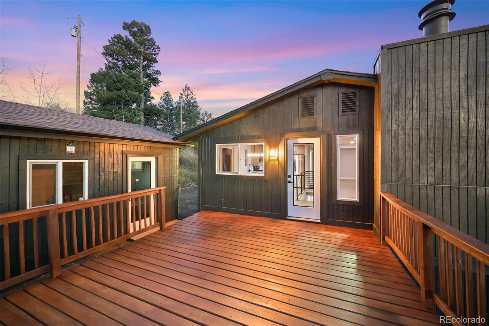 Perched high above it all, this fully remodeled Conifer stunner delivers the kind of mountain lifestyle buyers dream about. Every inch of this home has been thoughtfully updated with a clean, modern vibe that blends seamlessly with its natural surroundings. Step inside to a bright and open ranch floorplan featuring 3 bedrooms and 2.5 bathrooms, including a private primary suite designed for comfort and style. Gorgeous luxury vinyl plank flooring flows throughout the main level, tying together the fresh, contemporary finishes found inside and out. Walls of windows and multiple west-facing decks invite you to soak in jaw-dropping mountain views and unforgettable Colorado sunsets. Whether you are hosting friends or enjoying a quiet evening above the treetops, this home delivers the perfect balance of indoor-outdoor living. Backing to county-owned land, you will love the added privacy and open space that makes this property feel like your own private retreat. Adventure is right outside your door. Hop on your bike and cruise over to James Q Newton Park for miles of scenic hiking and mountain biking trails, or head just down the road to Beaver Ranch, known for its world-class disc golf course and thrilling zip lines. Beautifully situated for those looking for a second home with Short Term Rental revenues projected over $100K. Living in Conifer means embracing the best of Colorado mountain life with easy access to the city when you need it. Nestled in the foothills just southwest of Denver, Conifer offers a laid-back, nature-forward lifestyle with towering pines, abundant wildlife, and a true sense of escape, all while being within a convenient commute to the Denver metro area. This is more than a home, it is a lifestyle.