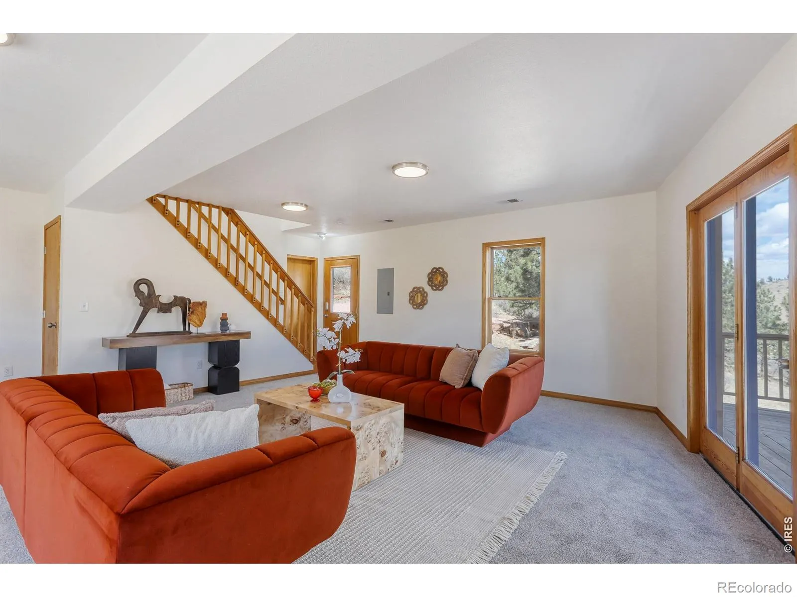 Don’t miss this private retreat just minutes from the conveniences of small-town living. Set on 34 beautiful acres, this custom contemporary home and property features mature evergreens, striking red rock formations, and awe-inspiring dark night skies–all just minutes from the heart of Lyons. The light-filled floor plan boasts gorgeous views from every window, multiple indoor and outdoor living spaces, generous storage, and a separate outbuilding. The updated kitchen includes Lyons sandstone countertops, soft-close cabinets with pullout drawers, under-cabinet lighting, ample storage, a dual fuel range/oven, and tile flooring. Newer hardwood floors in the living and dining areas, new carpet in the three bedrooms and family room, and a pellet stove add comfort and warmth throughout. Additional features include a primary suite with a private bath and walk-in closet, a spacious laundry room, and a huge walk-in crawlspace providing easy access to mechanical systems and extensive storage. Located just 3 miles from Hwy 36, this close-in mountain property offers quick access to Lyons’ restaurants, schools, parks, trails, river, and festivals, as well as Boulder, Longmont, Denver, DIA, and Rocky Mountain National Park. Schedule your personal tour today.