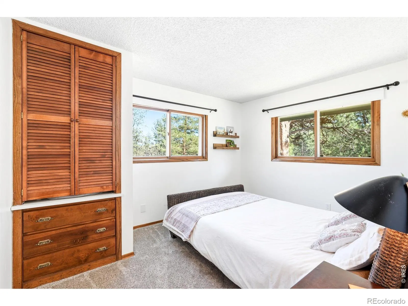 Tucked into the pines on 2.5 private acres, this inviting Pinewood Springs mountain retreat captures the best of Colorado living. With a level, easy-access driveway, natural landscaping and fresh mountain air this property reflects true pride of ownership in a setting that feels peaceful, private, and deeply connected to nature. Flagstone steps lead to a warm interior with hardwood floors and fabulous windows that bring the outdoors in. The open kitchen is truly the heart of the home with a welcoming counter space, bar seating, and easy flow into the dining area and main living room, perfect for gathering around the fireplace. There’s a space for everyone with a 2nd living room, flex space and 2 main level BR’s plus laundry room. Upstairs, 2 flex rooms perfect for office or guests plus the primary BR features a private deck overlooking the mountains- ideal for morning coffee or evening reflection. Outside, the lifestyle continues with a patio for BBQs and fire pit gatherings. The oversized detached garage w/workbench & storage handles all your gear and level lot offers plenty of room to park RV, boats, snowmobiles & more. Adventure begins right outside your door, with rock outcroppings and slabs for bouldering in the backyard and just steps to a trailhead with miles of trails for hiking, biking, and exploring. A seasonal stream draws deer, elk, and wild turkeys that wander through the acreage, adding to the everyday magic of mountain life. Pinewood Springs is more than a neighborhood-it’s a warm mountain community where neighbors wave, walk the roads, gather for driveway happy hours, and truly show up for one another. Residents also enjoy access to The Tubs, a beloved local rock canyon swimming hole. Enjoy peace of mind with a new roof (2022), new septic system (2026) and thoughtful improvements throughout. A private retreat in the heart of the Rockies, offering the perfect balance of peace, adventure and easy access to Estes Park, Lyons, and Boulder. Welcome Home.
