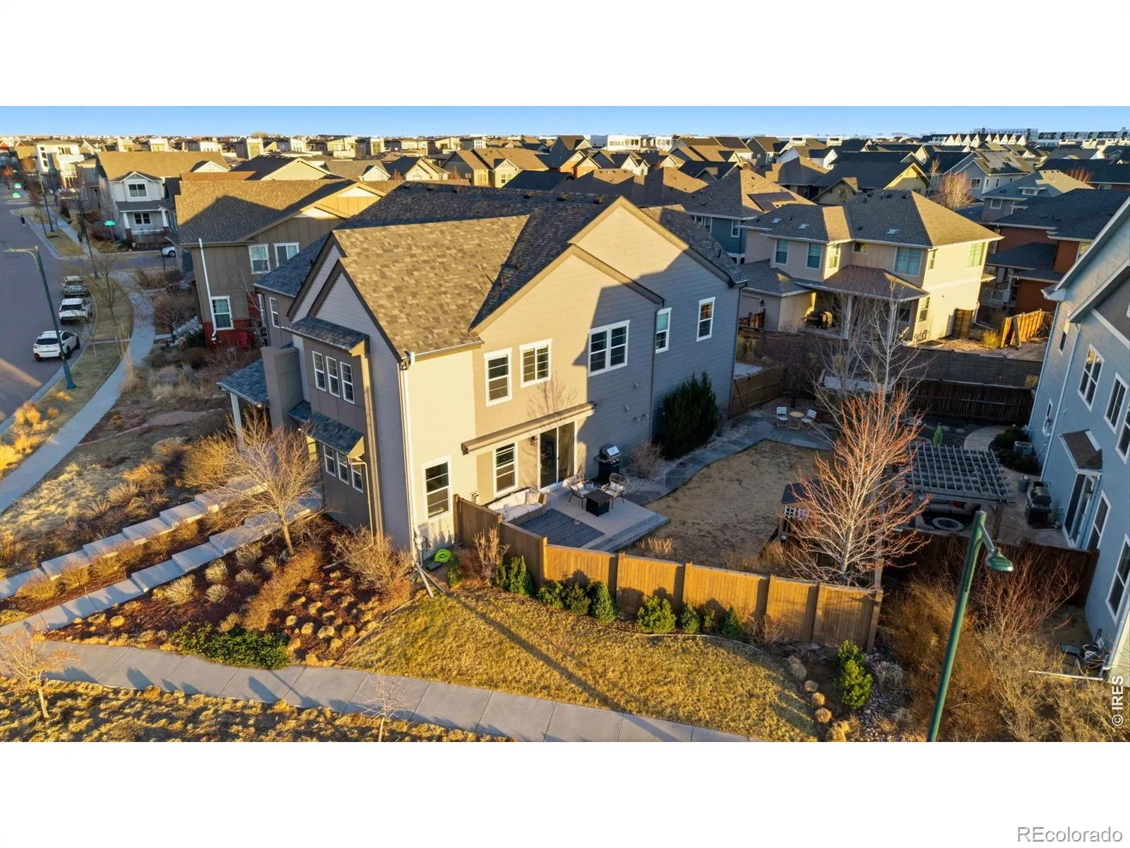 Own one of the most compelling, unobstructed mountain views in Central Park, a panoramic Front Range backdrop preserved by open space and prairie beyond. This setting cannot be recreated. Step inside and the neighborhood fades, replaced by sky, horizon, and mountains in every direction. The main level flows seamlessly between the living room, dining area, and kitchen, creating an open layout for everyday living and gathering. The living room fireplace adds warmth and comfort, while the gourmet kitchen with a six-seat peninsula brings everyone together. Nearly every space captures the view. Upstairs, the primary suite is positioned for the scenery, joined by two additional bedrooms, a full bath, laundry, and a spacious loft that functions as a versatile living area. The finished lower level adds a third living space and a private fourth bedroom with walk-in closet, ideal for multi-generational living or extended stays, plus storage. The outdoor experience centers around the main patio, perfectly positioned for sweeping mountain views, open sky, and Colorado sunsets, with a large retractable sunshade extending your outdoor living. Spacious yard with mature trees and landscaping creating privacy and a setting that feels like your own oasis. A secondary flagstone patio is tucked into the garden for a quieter retreat. Step outside to endless possibilities, with the trailhead just outside your door connecting to miles of trails through open space and the Rocky Mountain Arsenal. Beeler Park offers eight parks, playgrounds, open spaces, the RiverRun splash pad, Central Park’s largest pool with waterslide, and a nearby pump track. Enjoy farmers markets, concerts, movies under the stars, and holiday events, minutes from Pearl Market, Northfield, top-rated schools, Anschutz, DIA, and downtown. Bonus 2 car garage with extensive storage. Opportunities like this are rare in Central Park, offering a lifestyle defined by views, adventure, and everyday access to the things you love.