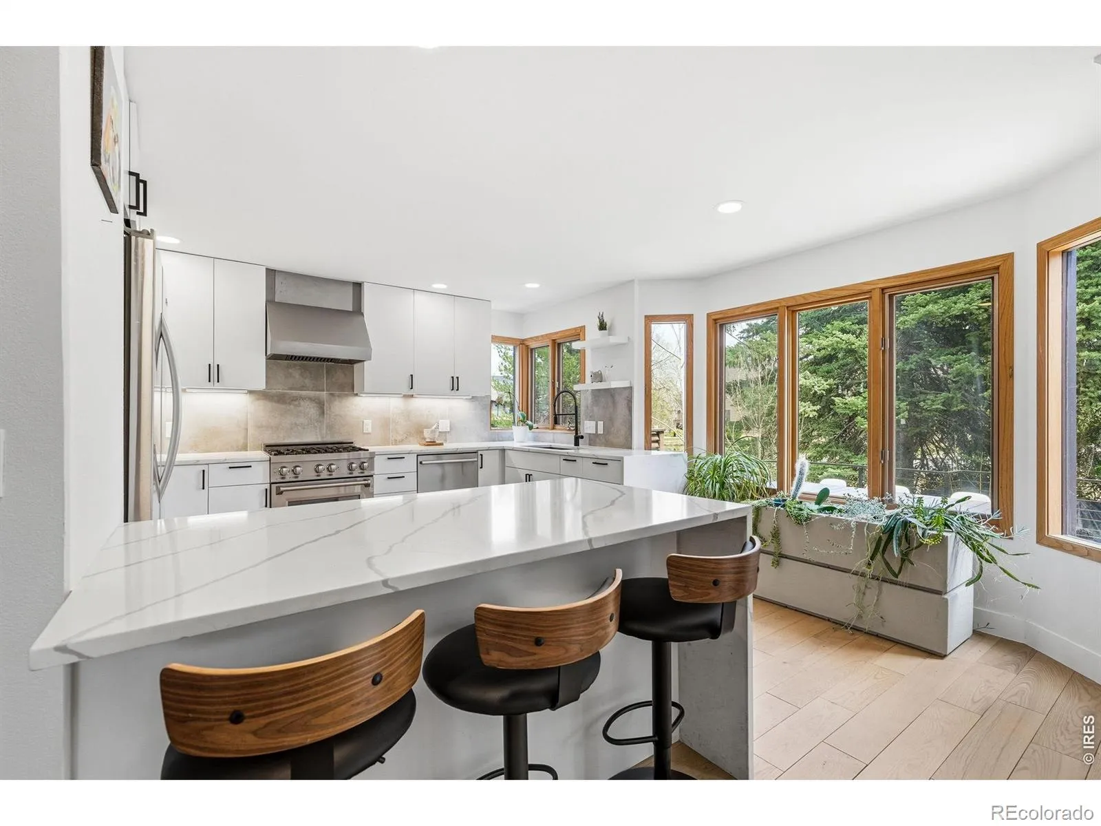 Located on a quiet cul-de-sac in Boulder’s Meadow Glen neighborhood, this move-in ready, updated home offers a light-filled layout, flexible living spaces, and easy access to nearby trails, parks, ponds, and the Meadows pool and tennis courts. With 4 bedrooms, 4 bathrooms, and over 3,000 square feet, the home is designed for both everyday comfort and versatility.The main level features vaulted ceilings and newer wide plank hardwood floors, creating a bright, open feel throughout. The newly remodeled kitchen with waterfall quartz countertops, modern cabinetry, and quality appliances flows seamlessly into the dining area and out to a large deck, supporting effortless outdoor living and entertaining. A welcoming living room with fireplace and a convenient half bath complete the main level.Upstairs, the light-filled primary suite offers an updated five-piece en-suite bathroom, double vanity, and walk-in closet. Two additional bedrooms and a full bathroom provide flexible options for bedrooms or a home office, along with the convenience of upstairs laundry. The finished basement expands the home’s functionality with a fourth bedroom, full bathroom, and a generous flexible living space ideal for a media room, gym, guest suite, or additional office. Recent updates include kitchen, bathrooms, hardwood flooring, interior and exterior paint, along with a newer furnace, A/C and hot water heater, offering a truly move-in ready opportunity. Enjoy a peaceful setting with close proximity to walking and biking trails, community parks, ponds, and open space, plus convenient access to Highway 36 and downtown Boulder. This home offers a comfortable, connected lifestyle with the space and flexibility to adapt to a variety of needs. Owned security system and L2 Generac car charger included. Seller can not close until July/Aug., possibly sooner.