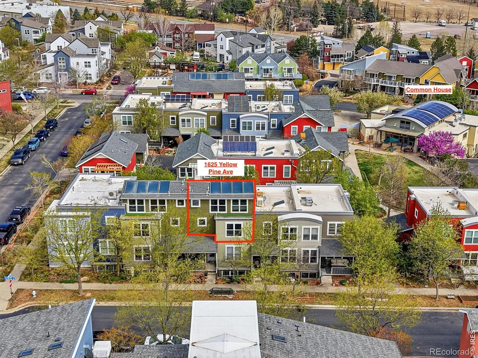 Rarely available condo in North Boulder’s Wild Sage co-housing community! This light-filled 2BR / 2BA condo features vaulted ceilings, large windows & Flatiron views. The main floor has a spacious, open kitchen with stainless appliances; polished concrete floors with radiant heat, living room, dining area, bedroom, full bath & motorized skylights. There’s also a peaceful, comfortable outside deck to relax on. Head upstairs to beautiful hardwood floors and the generously sized open air primary BR with ensuite bathroom and take in the Flatiron views. Enjoy elevated finishes like Hansgrohe and Duravit, custom metal railings throughout, and 2 Nest thermostats. There’s one assigned parking space and plenty of street parking, and A/C is provided by an evaporative cooler. HOA dues cover internet, gas, water, snow removal, trash/recycling/compost pickup, Common House upkeep, property insurance, as well as maintenance of common items–roofing, windows, siding, walkways, etc. There’s even a free RTD EcoPass for easy access to DIA, downtown, Denver, etc. North Boulder affords quick access to outdoor recreation and cherished local cafes and shops only a few blocks away. Wild Sage offers exceptional amenities including a Common House with commercial kitchen, common area, movie room, kids play room, recreation room, gym, 2 guest BRs, rooftop hot tub, study, fully outfitted woodworking shop, and more; also EV chargers on site. There are ample opportunities to engage with your neighbors through community meals every Sunday, social events 2x/month and happy hours on the green. Wild Sage is an intentional cohousing community where residents are expected to participate in keeping the community functioning both socially and practically by taking part in community meals or other gatherings, participating in community workdays, and working on team projects. Learn more at wildsagecohousing.org