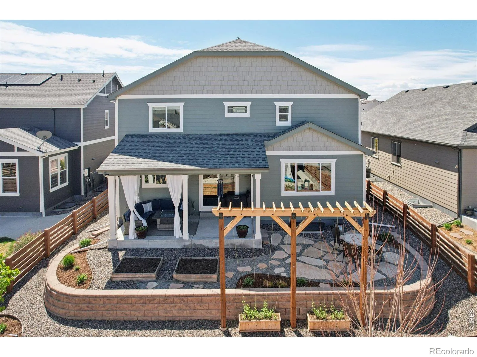 You’re going to love this 6BR/4 BA house with a 2.5 car garage in friendly Colliers Hill. It has plenty of space, great style and that classic Colorado feel. From the minute you walk in, you’ll notice the rich hardwood floors that run throughout the main level-it just feels warm and welcoming. The kitchen is the heart of this house-it’s a dream with a huge center island, granite counters, and chef-worthy appliances. The separate dining room and living room, which has a cozy floor-to-ceiling stone fireplace flow nicely while not being right on top of each other. You’ll also find an office/6th BR and a powder room to round out the main floor. Upstairs, you’ll find four spacious bedrooms and two full bathrooms. The primary suite is your own private escape-it has its own full bathroom with a huge closet…no purging necessary here. There’s also a flexible loft space that would be perfect for a reading nook, a playroom or a secondary office. Need more space? The finished basement with high ceilings is ready to go with a massive recreation room, an additional bedroom and a 3/4 bath. This is a space that’s going to be well used and loved for game or movie night or both! You can enjoy those famous Colorado seasons in your charming backyard which boasts a large patio with pottery barn inspired curtains to create a more private setting and a charming trellis with growing hops adding a unique, natural vibe. Whether you’re hosting a summer barbecue or enjoying a quiet evening, this backyard is made for making memories. The location is awesome-you’re just minutes from top-rated schools and all of the HOA amenities and downtown Erie where cute shops, great restaurants, and community events await. This is the easy, fun lifestyle you’ve been dreaming of. Let’s Get You Home!