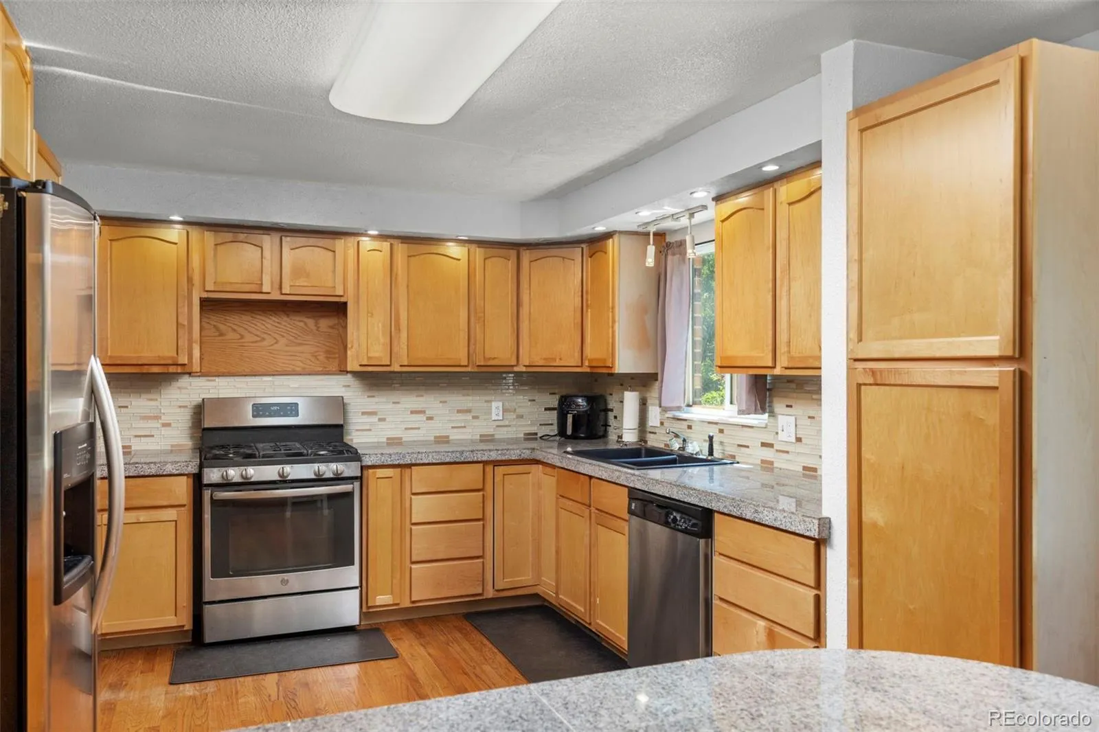 With over 3,000 finished sq. ft., this 5 bed, 4 bath home offers the perfect blend of comfort and value. The inviting kitchen features granite countertops, warm oak cabinetry, hardwood floors, and stainless steel appliances–all included. Sun-filled dining room with classic wainscoting and ample room for large gatherings. Enjoy the cozy wood-burning fireplace in the living room with vaulted ceilings, creating a welcoming gathering space, with double doors open to the patio for effortless indoor/outdoor living. Main-floor bedroom or office plus convenient laundry (washer/dryer included).