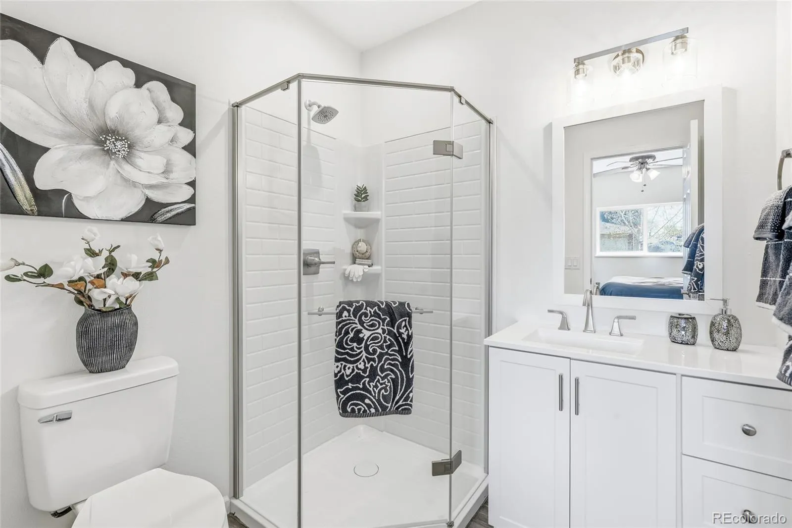 Beautifully renovated move-in-ready ranch in central Longmont featuring thoughtful upgrades, modern finishes, and a spacious functional layout. This 4-bedroom, 2-bath home offers refinished original hardwood floors, abundant natural light, and a bright open flow ideal for everyday living and entertaining. The updated kitchen is a standout with brand-new stainless steel appliances including microwave/vent hood, refrigerator with ice maker, dishwasher, and electric range featuring air fryer convection oven. Enjoy generous food-safe butcher block counter space, abundant cabinetry and shelving, a dedicated beverage station, and convenient eat-at bar seating that opens seamlessly to the living area. The brand-new primary suite is a true retreat, featuring a newly added en-suite bath with stylish tile flooring, shower, and vanity, plus new carpet in the bedroom and walk-in closet. The spacious main hallway bathroom offers a double-sink vanity, providing excellent functionality for guests and family. Step outside to an expansive fully fenced backyard backing to a ditch for added privacy and open feel, complete with a large concrete patio ideal for entertaining, two storage sheds, and plenty of room to garden, play, or relax. Covered off-street parking is provided by the attached carport. Conveniently located near parks, schools, shopping, dining, and commuter routes, this beautifully updated home is ready for its next owner.