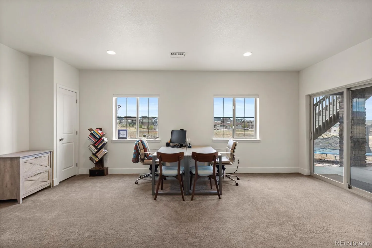Perfectly positioned to capture natural light from the large windows in the kitchen and living room, this home offers an exceptional blend of space and functionality on the main level with an open concept layout, ideal for entertaining, with seamless indoor/outdoor living opening to an expansive, covered outdoor deck with panoramic views. The kitchen has a large quartz island, stainless steel appliances, quartz countertops, and a large walk-in pantry. A thoughtfully finished walkout basement expands your living space, ideal for a media lounge, office or rec space, with tons of natural light, ¾ bath, and a large storage area, with the potential for an additional bedroom. The second level offers four bedrooms; a spacious primary suite with coffered ceilings and en-suite bath with a large walk-in closet. Two bedrooms with a shared full bath/double vanity and another bedroom with an en-suite bath complete the second level. A large tandem 3 car garage is set up for an EV charger. Other upgrades include: solar panels (included with the sale), steam humidifier, security system, expanded concrete patio, professional landscaping with SMART irrigation system, fully fenced yard, (2) furnaces and (2) A/C units.