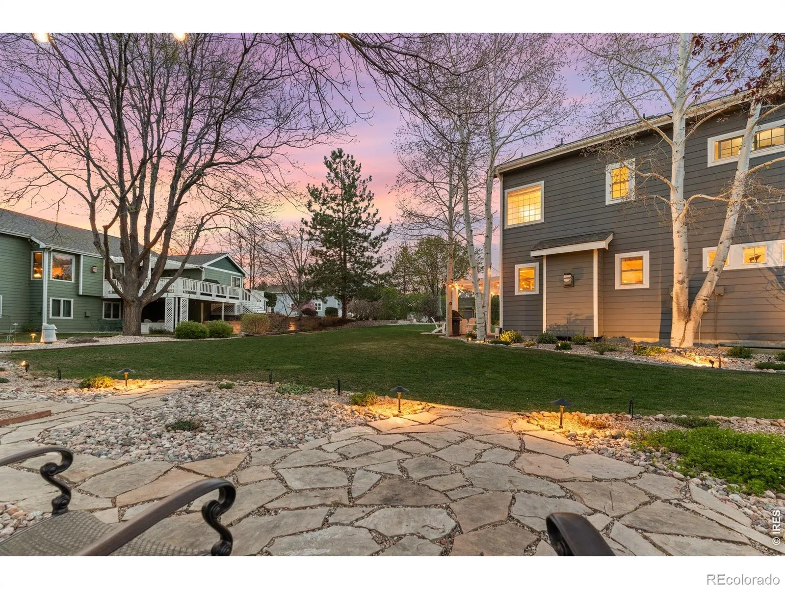 Welcome to this stunning 4-bed, 4-bath home plus 3-car garage nestled on a nearly 15,000 sq ft corner cul-de-sac lot in one of South Fort Collins’ most sought-after neighborhoods! Mature trees and landscaping (full sprinkler & drip irrigation) provides a peaceful backyard retreat. Unwind on the pergola-covered patio with ambient low-volt landscape lighting. Inside, real hardwood floors flow through a thoughtfully designed main level featuring a dedicated office, formal dining room, and open living room with gas fireplace. The updated kitchen shines with granite countertops, 42″ crown-molded solid wood cabinets, under-cabinet lighting, and black stainless appliances. Upstairs, the expansive owner’s suite impresses with 10′ ceilings, ceiling speakers, and a spa-like bath with white quartz tops and a soaker jetted tub. The fully finished basement adds a bedroom, 3/4 bath, and media/game room. Pride of ownership throughout – new exterior paint (2020), tankless Rinnai water heater, and recently replaced roof, windows, interior paint & appliances. 4′ exterior fence permitted. This one won’t last!