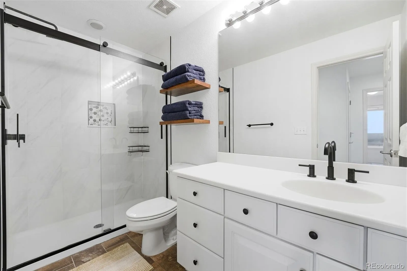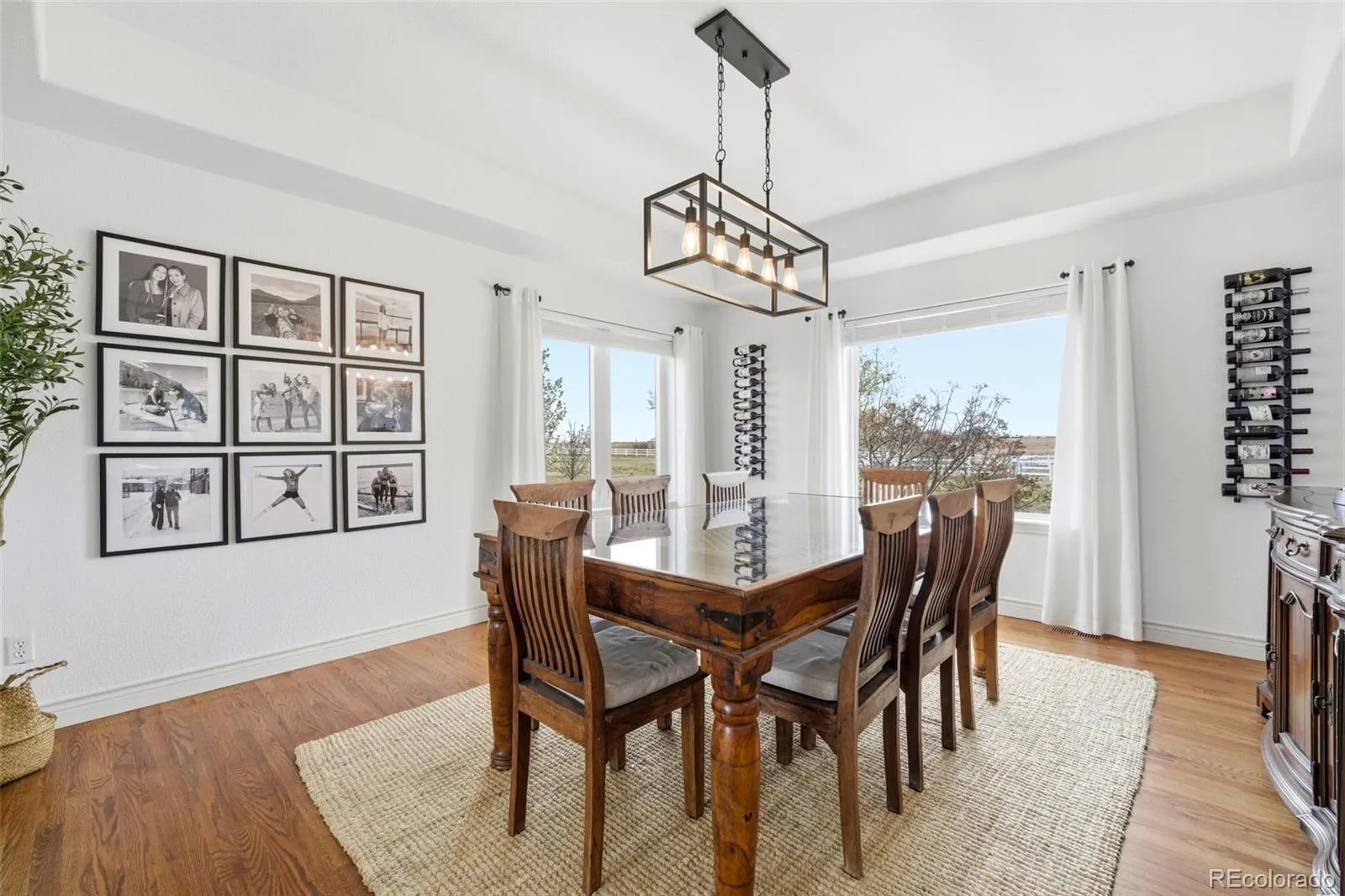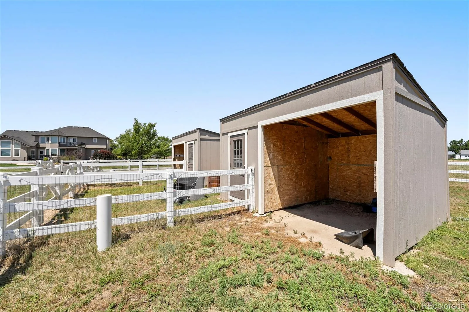 Stunning home with high-end finishes in Box Elder Estates on 2.53 acres, offering rare privacy, sweeping plains views, and a beautifully landscaped setting with garden beds. Inside, the open layout with high ceilings creates a bright, inviting space. This home includes a brand-new roof, a 26KW natural gas generator with automated transfer switch, and two Tesla 240V 50-amp chargers—perfect for modern, future-ready living. Outdoor living is exceptional with a custom 500 sq. ft. deck built with low-maintenance Deckorators Voyage decking, powder-coated metal railings, and a stunning outdoor fireplace with a beetle kill pine mantle. The upper deck features a drainage system and finished ceiling below, creating a comfortable, year-round space for entertaining or relaxing with a view. The finished basement adds tremendous versatility and comfort, with a private bedroom/ bathroom, a kitchenette, amazing home gym with custom epoxy floors, and stylish railing details—ideal for guests, multi-generational living, or a private retreat. (The home gym comes fully furnished with all equipment, making it move-in ready for fitness enthusiasts!) Guest bathrooms throughout the home have also been fully updated. Horse enthusiasts will appreciate the spacious corral outside and 2 loafing sheds. Expansive 1,815 sq. ft. outbuilding anchored by a true private guest suite—complete with its own bedroom, bathroom, and shower, offering a perfect retreat for visitors. The remaining space features an oversized garage and a fully finished bar, creating an amazing setup for entertaining guests.