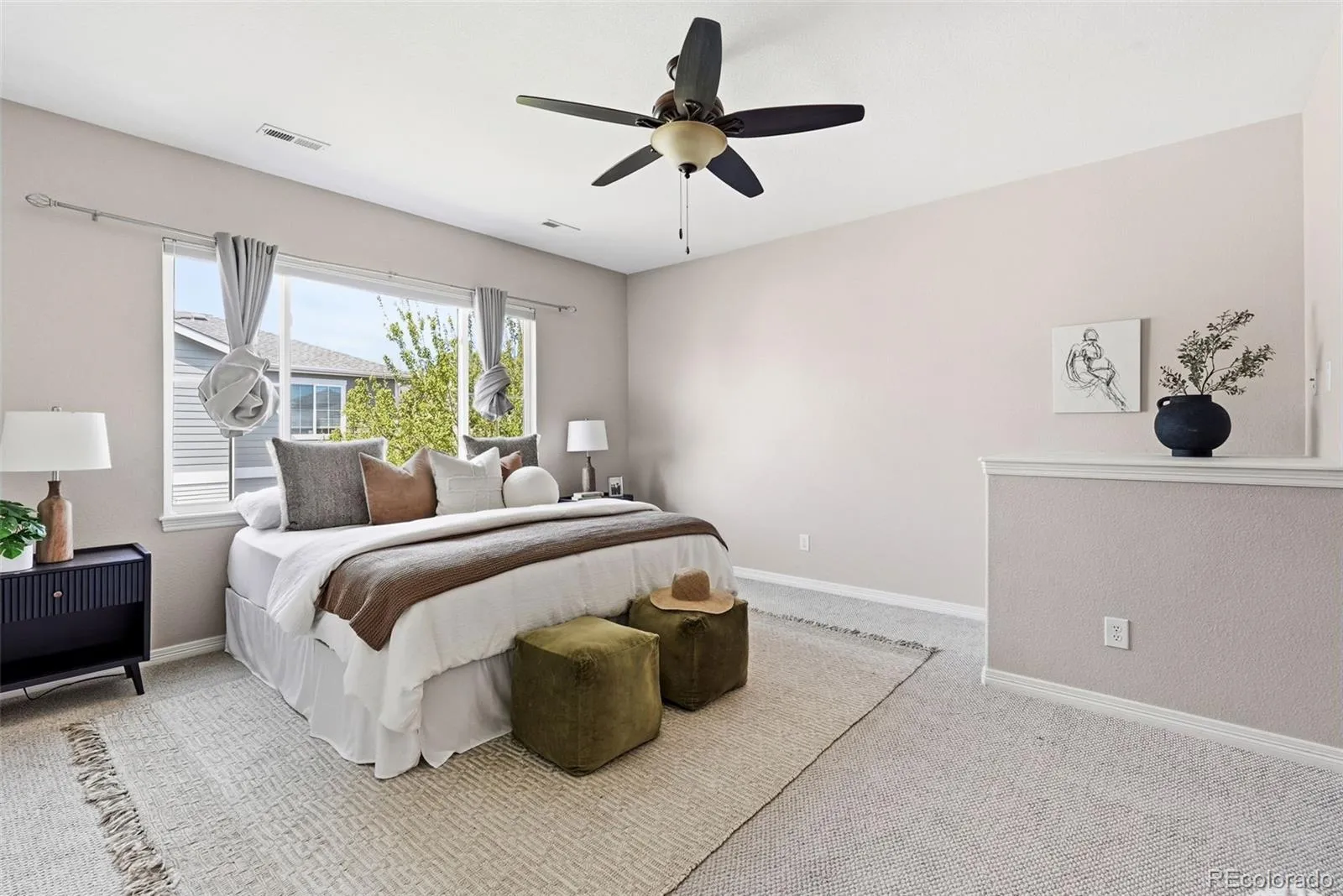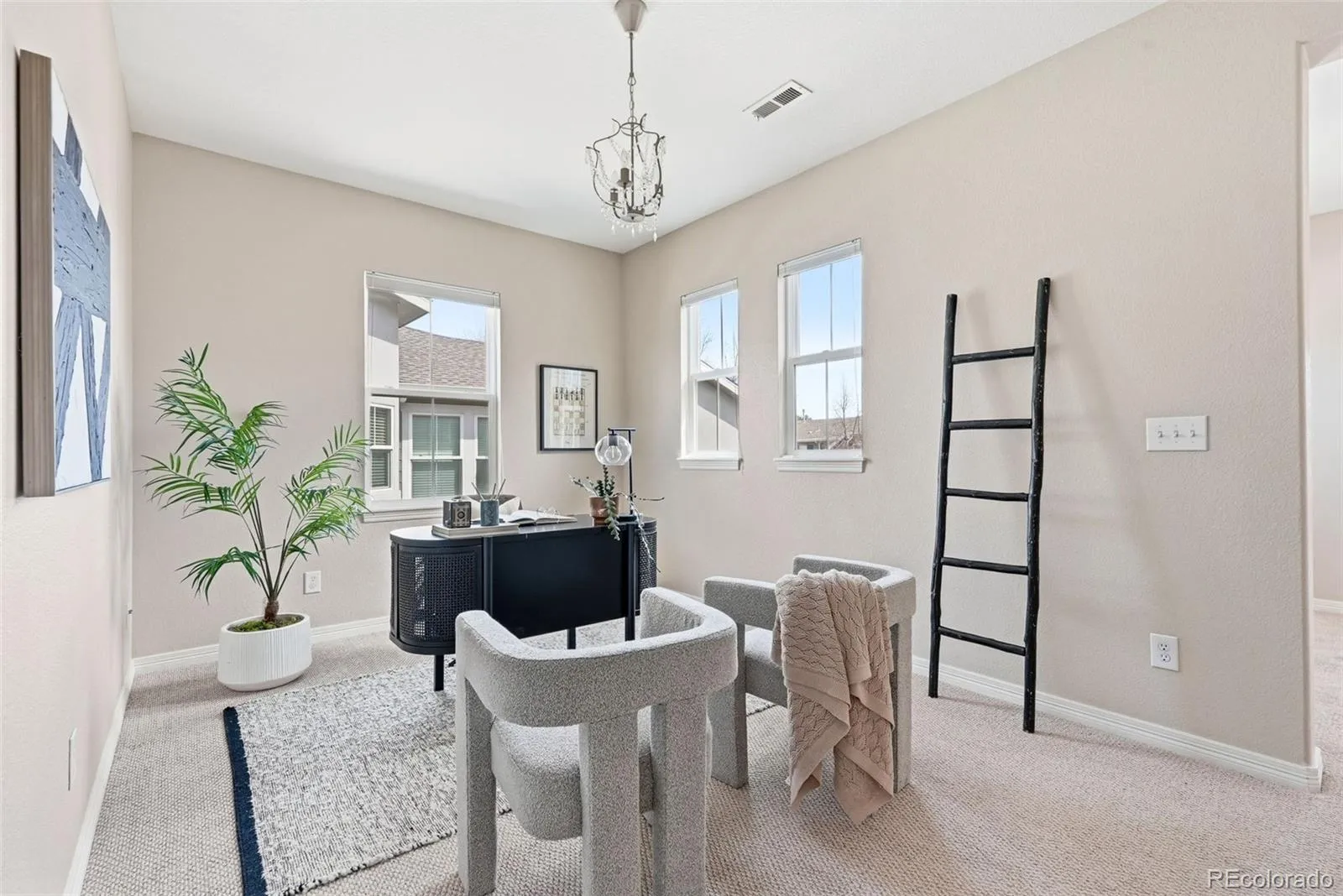 Gorgeous townhome that lives like a single-family home, ideally situated in the gated community of Cherry Creek Vista. Beautiful curb appeal with fresh exterior paint welcomes you in. The main level features a spacious living room with a cozy fireplace, a formal dining room (or optional office), an updated kitchen, an eat-in dining area, a mudroom/laundry room, and a convenient powder bath. The kitchen has beautiful granite countertops, new hardware, and a timeless backsplash. Upstairs, you’ll find three generously sized bedrooms, a loft, and an additional office space. Each bedroom featuring its own en suite bathroom for ultimate comfort and privacy. The large unfinished basement offers an excellent layout with egress windows, providing great potential for future expansion. Enjoy the outdoors in the private backyard, complete with a patio, lush lawn, and mature trees. Additional highlights include a two-car attached garage and a low-maintenance lifestyle, with the HOA covering exterior maintenance such as paint, roof, and even backyard mowing. Community amenities include a pool, clubhouse, and secure gated entry. Fiber optic internet in the neighborhood. Located within the highly sought-after Cherry Creek School District. New interior paint, new berber carpet, new custom window treatments.