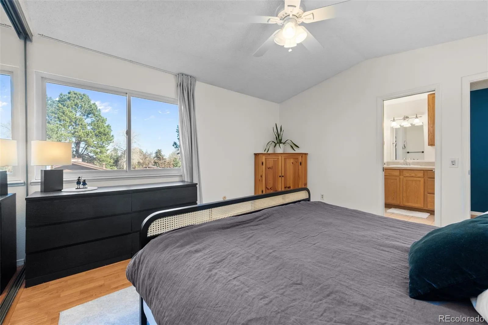 Lots to love in this home! Rare townhome in The Timbers with an attached single-car garage. Well-maintained and updated, featuring an open floor plan, fresh paint, and large bedrooms. The main level offers a spacious living room with wood-burning fireplace, dining area, and functional kitchen. Enjoy the private patio—perfect for relaxing or entertaining. Laminate flooring throughout, plus added comforts like an attic fan, humidifier, extra attic insulation, water softener, and updated Andersen windows and front door. Unfinished basement offers room to grow. Ideally located near Meadow Hills Rec Center & Golf Course, Mission Viejo Library, shopping, Cherry Creek Reservoir, and more.