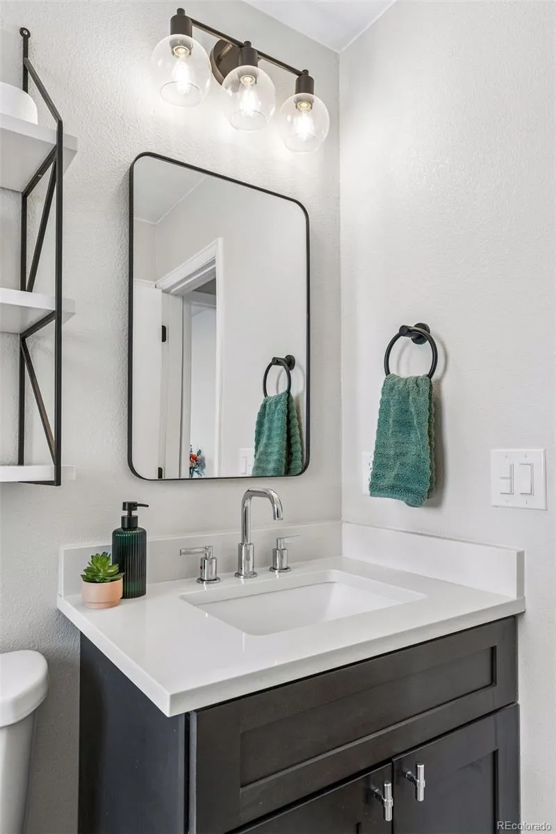 This charming 4 bedroom 2 bath mid-century home offers 1,566 square feet of bright, updated living space! The main floor is open and airy with abundant natural light, and a seamless connection between the living room, kitchen, and outdoors. The kitchen features white cabinetry, quartz countertops, clean white tile backsplash, and stainless steel appliances. Gorgeous hardwood floors throughout the main floor. The finished basement has a spacious family room, two additional bedrooms, and a three-quarter bath with double sinks. The consistent modern finishes and updates throughout the home create a cohesive, clean aesthetic. The large, fully fenced backyard includes a generous concrete patio ideal for outdoor dining and relaxing. A detached one-car garage provides added convenience. The owned solar panels were installed in 2019 offering long-term energy savings.