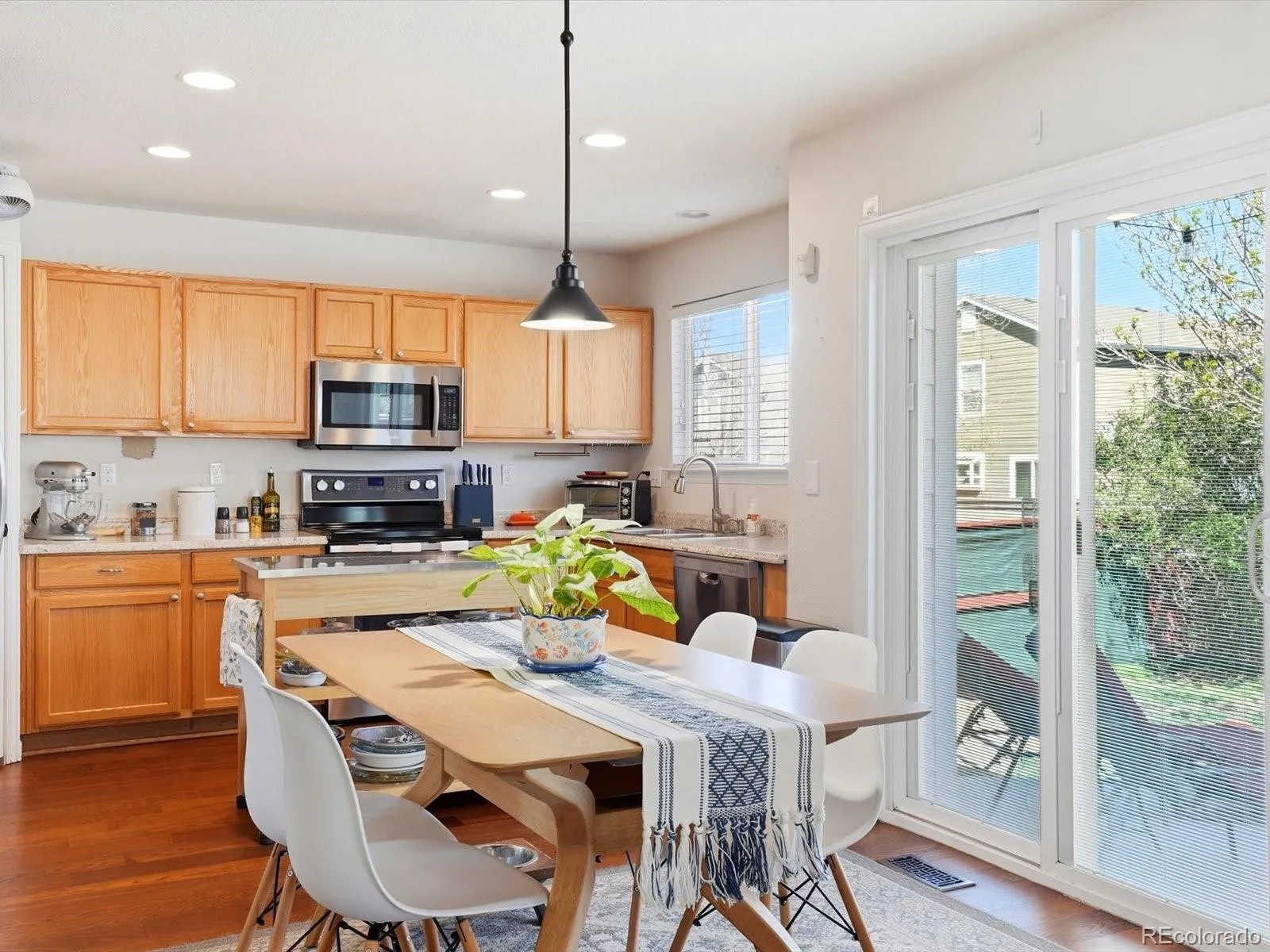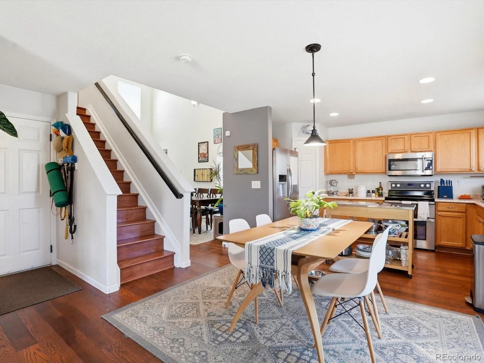 Welcome home to a beautifully maintained and thoughtfully updated Highlands Ranch gem offering space, flexibility, and incredible value with exceptional livability across three well-appointed levels. Rich hardwood floors and abundant natural light greet you upon entry, flowing into a spacious main level with a dedicated dining room heading into an expansive living area anchored by a cozy gas fireplace. The open-concept kitchen is the heart of the home, featuring a double oven, new dishwasher, generous cabinet space, a walk-in pantry, and a center island that can stay. A convenient half bath completes the main floor. Upstairs showcases the dream layout buyers search for, four true bedrooms on one level. The massive primary suite offers a walk-in closet and a private bath with dual vanities. The loft has been converted into a legitimate fourth bedroom, a rare find at this price point. The partially finished basement provides instant equity potential and includes a non-conforming fifth bedroom, a bathroom with a stand-up shower, and abundant storage. Major updates include a newer furnace and water heater, newer roof, and newer front windows for added peace of mind. Step outside to an extended concrete patio perfect for entertaining and enjoying Colorado evenings. The attached two-car garage adds everyday convenience. All of this comes with a low HOA that provides access to recreation centers, gyms, pools, and courts. Perfectly situated near Valor Christian High School, Cherry Hills Christian School, premier shopping and dining, multiple parks including Dad Clark Park, and with quick access to CO-470 for effortless commuting. With its rare four-bedroom-upstairs layout, flexible basement space, thoughtful updates, and unbeatable value, 9860 Aftonwood Street is an exceptional opportunity in Highlands Ranch.Book your tour today!