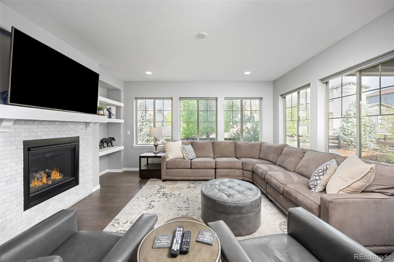 Turnkey, move-in ready 5-bedroom, 4-bathroom home with a finished basement and sunset views. Flooded with natural light and thoughtfully upgraded with nearly $100K in enhancements, this home offers an exceptional layout, flexible living space, and one of the best values in Erie. The grand entry with luxury wood floors, two-toned railings, tumbled tile fireplace with built-in shelves creates an elegant ambiance. The contemporary open floor plan and well-appointed chef kitchen feature an extended island with granite counters, extra cabinets and rollout pot & pan drawers, stainless steel appliances, gas cooktop, and double ovens. The master suite bathroom boasts luxurious oversized custom glass and mosaic tile shower floor, oversized walk-in closet and easy access to 2nd floor laundry area. The tastefully finished basement with huge recreation area, large bedroom and 3/4 bath await your family fun. Oversized garage and finished walls. Entertain under the covered patio and fenced in yard across from community park. Meet your Compass neighbors at community events including food trucks and coffee socials at one of the subdivision’s small parks. The Town of Erie has approved a 10-acre Town Park within the Compass subdivision. There is a sidewalk encircling the entire Compass subdivision for evening walks. The nearby Coal Creek Trail offers 15 miles of walking or biking if you are looking for more. Erie’s nearby Downtown features restaurants, brew pubs, coffee shops, and a seasonal weekly Farmer’s Market. Love where you live!