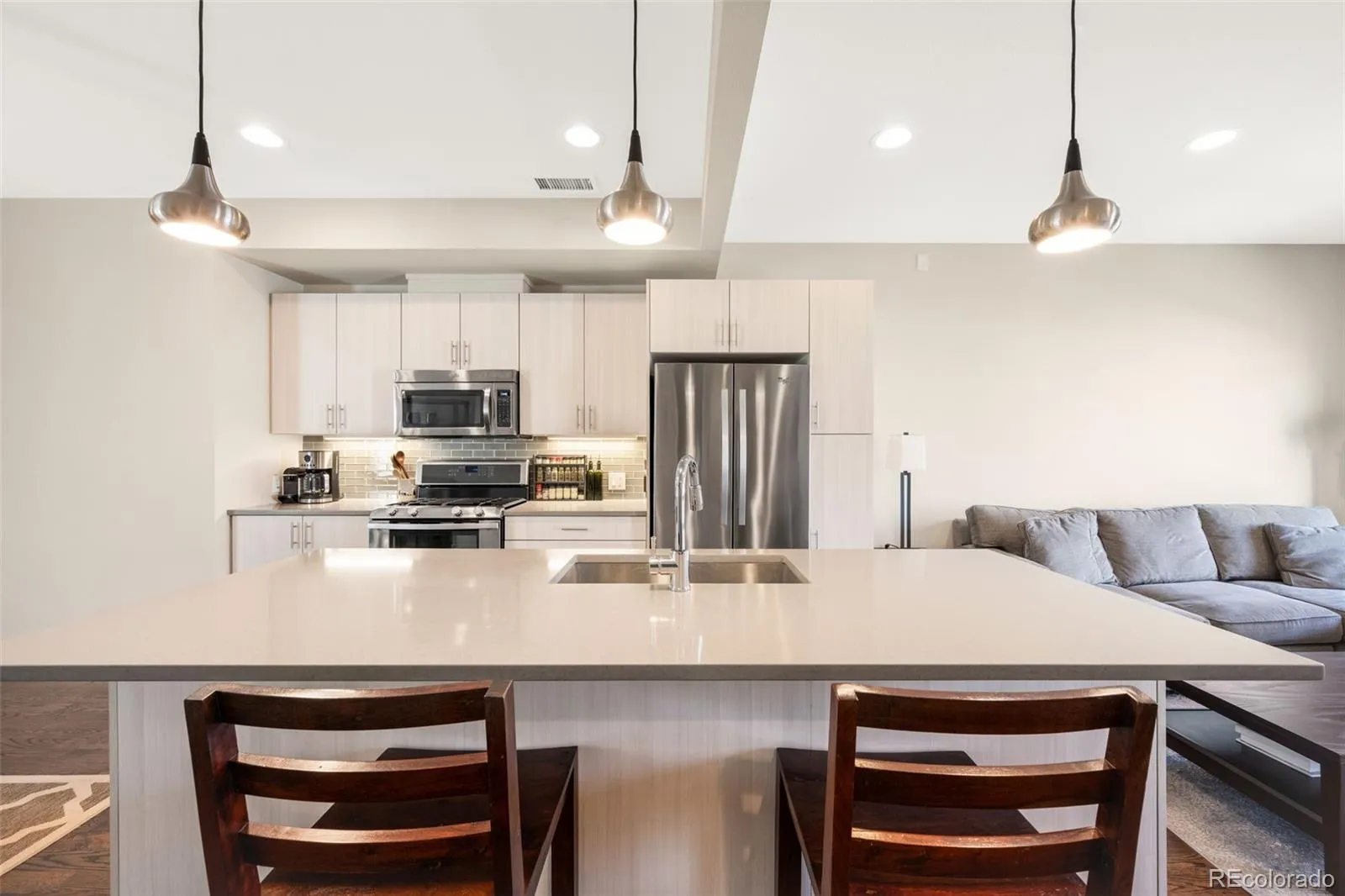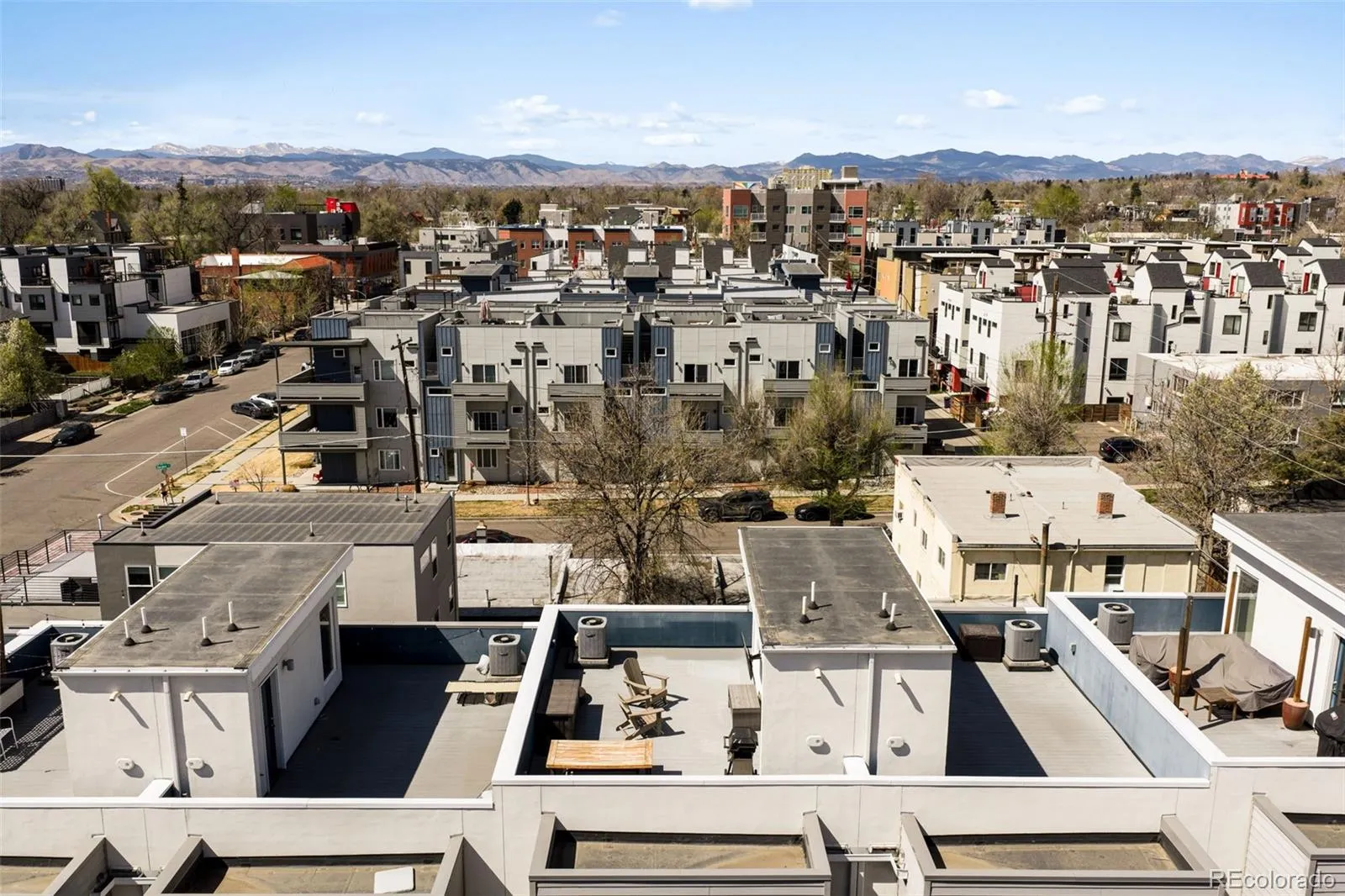 At the heart of Jefferson Park, this sleek 2-bedroom, 2.5-bath townhome offers stunning mountain and city views from a spacious rooftop deck that truly steals the show. Inside, the home features modern cabinetry, quartz countertops, nine-foot ceilings, and hardwood flooring on the main level, along with thoughtful upgrades like under-cabinet lighting, stainless steel appliances, and a beverage fridge. The rooftop deck is built for relaxing and entertaining with Trex decking, a gas line, water bib, and outdoor TV, making it an incredible spot to host gatherings and enjoy unforgettable Fourth of July fireworks with sweeping views of the city and mountains. The attached two-car garage opens to a welcoming entryway and a versatile bonus room. Located in one of Denver’s most exciting and historic neighborhoods, Jefferson Park offers easy access to Empower Field, the Downtown Aquarium, and all that downtown living has to offer. Just one block away you’ll find local favorites like Curry & Grill Indian & Nepali food, 2914 Coffee, Jefferson Park Pub, and more. Jefferson Park is a tight-knit community where neighbors connect daily, especially at the park, making it a place that truly feels like home.
