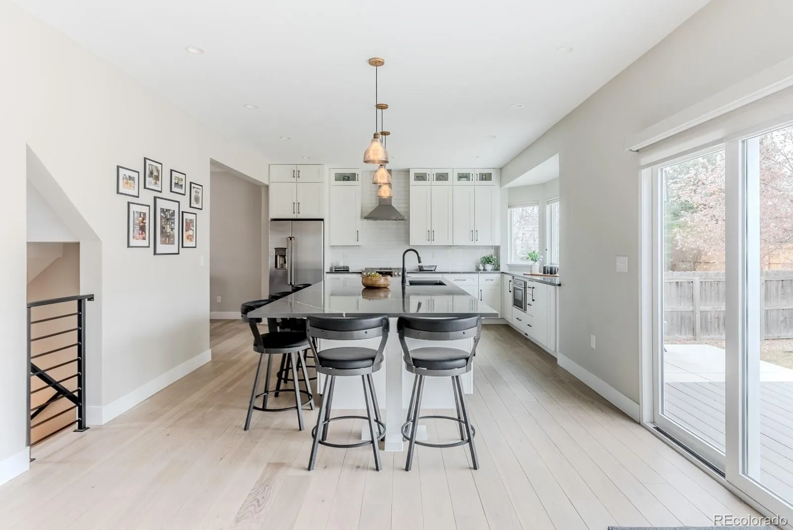 There are streets that hold homes—and then there are streets that hold community. Along Clayton Circle, one of Rock Creek’s most cherished enclaves, this thoughtfully reimagined residence blends timeless comfort with a fresh, modern perspective. A welcoming front porch introduces interiors defined by openness and light, where a newly restructured main level creates seamless sightlines to the lush backyard beyond. Walls have been removed to expand the living experience, anchored by a stunning chef’s kitchen designed as the home’s defining focal point. A striking 11ft island clad in Sorano quartz offers seating and workspace alike, complemented by ceiling-height white shaker cabinetry, glass display elements, a modern tile backsplash and a suite of professional appliances. Expansive windows illuminate the space, inviting connection and ease in everyday living. A four-panel wall of glass extends the home outward to an expansive new Trex deck with a custom pergola, creating a natural flow between indoor and outdoor living. Beyond, the private backyard unfolds with mature trees, shaded seating areas and a generous lawn designed for both play and relaxation. The adjoining family room offers warmth and comfort with an ambient fireplace and built-in storage, while a striking steel staircase with wood treads adds a refined architectural moment. Upstairs, a rare four-bedroom layout includes a spacious primary suite with a wall of windows, a large walk-in closet and a beautifully updated bath with dual vanities and a glass-enclosed shower. Three additional bedrooms and a well-appointed hall bath complete the level. The finished basement adds versatility with an additional bedroom, bath and generous living space ideal for guests, recreation or retreat. Located just moments from Superior Elementary, community pools, tennis courts and a vibrant town center, with miles of scenic trails nearby, the setting offers both a strong sense of community and convenience.