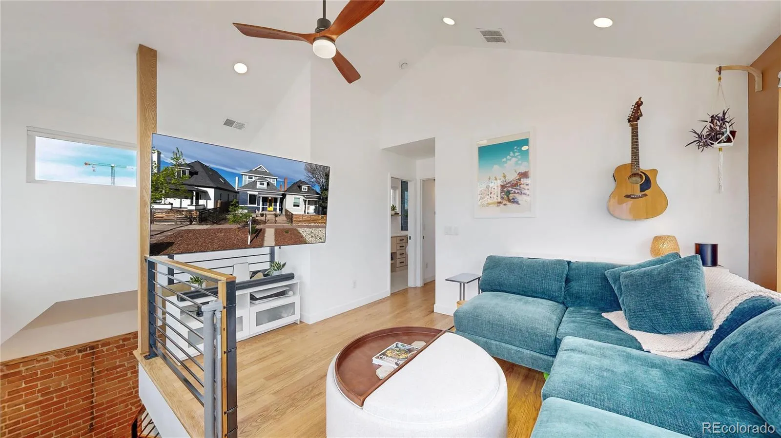 Step inside to a bright, open layout with high ceilings on both levels, hardwood and tile flooring throughout, and custom built-ins with hidden storage. Downstairs, the space feels warm and inviting with abundant natural light, an open layout ideal for families or hosting, and a recently updated bathroom. The new second floor features south-facing windows bringing in abundant natural light, with smart blackout blinds for comfort, and a custom retractable TV wall mount that easily converts the space from a theater setup to a more social, TV-free environment.