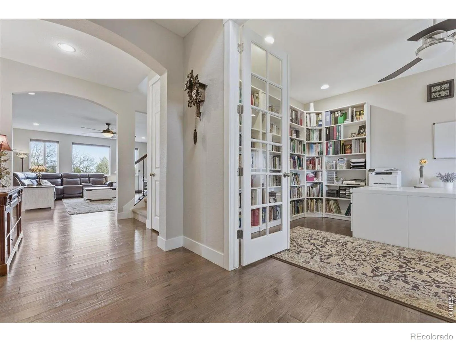 Welcome to 1148 Wagon Bend Rd in Berthoud-an exceptional former model home built in 2016, offering luxury, space, and stunning Colorado living in a highly sought-after community. Situated on a .17-acre lot with adjoining open space, this home provides added privacy, mountain views, and a prime location across from Colorado’s only TPC PGA golf course. An additional parking area and a new Class 4 roof (March 2026) add convenience and peace of mind. Inside, a dramatic two-story entry leads to a bright, open-concept layout with abundant natural light and upscale finishes. The spacious great room features a cozy gas fireplace and flows into the eat-in kitchen, perfect for entertaining. The kitchen boasts granite countertops, stainless steel appliances, tile backsplash, a large island, gourmet kitchen with 42″ cabinets cabinetry, and a walk-in pantry. Upstairs, the primary suite offers a private retreat with a five-piece bath, dual vanities, soaking tub, oversized shower with bench, and walk-in closet. The upper level also includes a loft, three additional bedrooms, a full bath, and a convenient laundry room. The fully finished walkout basement expands the living space with a large rec room, three versatile rooms (ideal for office, gym, or guests), a full bath, and backyard access-perfect for multi-generational living. With seven bedrooms plus a dedicated office, this home offers incredible flexibility. Outdoor living shines with a Trex deck showcasing mountain views, a covered patio, and a large concrete patio with a hot tub. The fully fenced yard with a six-foot privacy fence is ideal for relaxing or entertaining. Additional features include a mudroom with built-ins, hardwood flooring, and iron spindle railings. Enjoy easy access to parks, trails, sports courts, Carter Lake, and nearby downtown Berthoud and Loveland, with quick access to Longmont and Rocky Mountain National Park. Don’t miss this incredible opportunity to own a truly exceptional home.