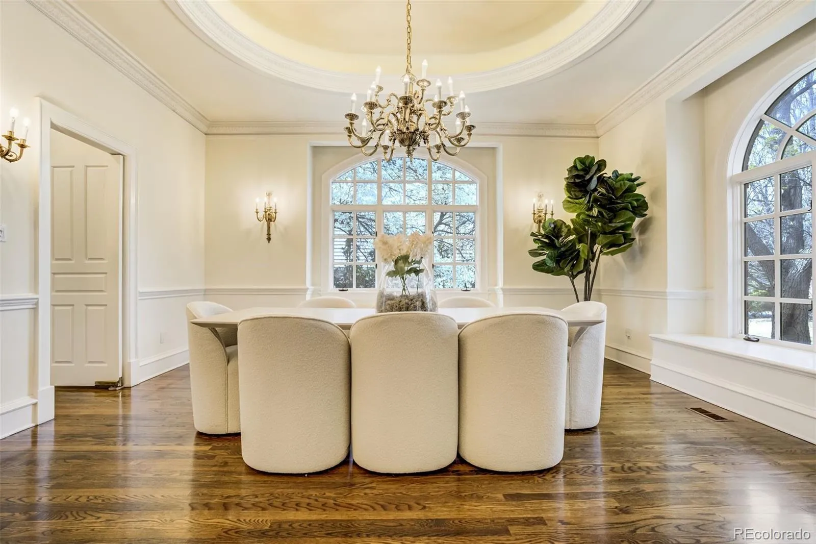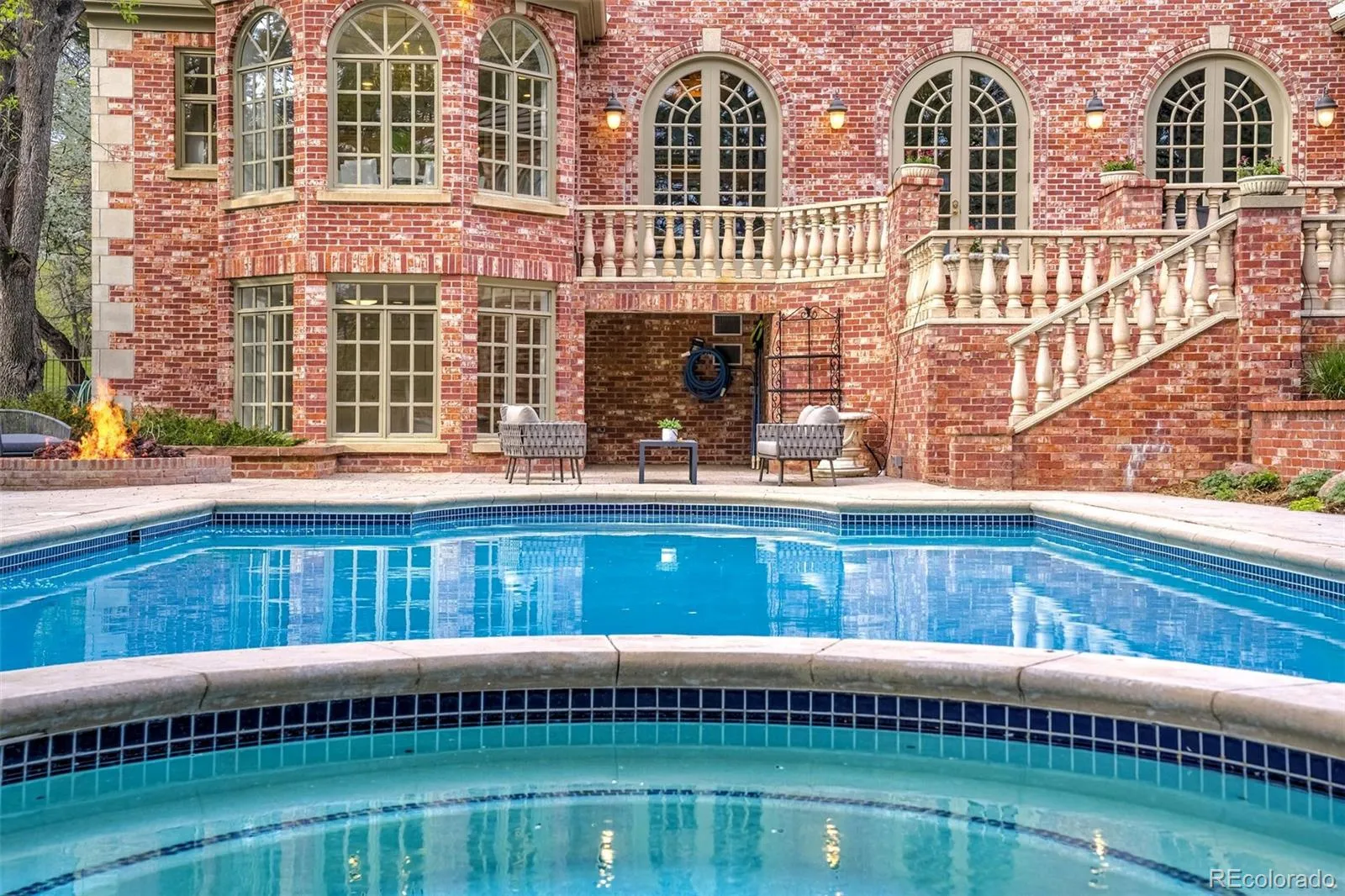 COMING SOON! Located in the prestigious Cherry Hills Farm West neighborhood, this stately red brick two-story estate evokes timeless old-world elegance in an extraordinary natural setting. Situated on nearly an acre and surrounded by mature trees and lush landscaping, the grounds offer a private retreat—featuring a tranquil pond with cascading waterfall, a charming gazebo, and an expansive outdoor living area with a pool, spa, and firepit. Inside, a grand two-story entry introduces interiors rich in craftsmanship and detail. The soaring great room is a showpiece-with dramatic ceilings, marble floors, and a gas fireplace with marble hearth and mantle. Throughout the home, detailed layered moldings, custom millwork and wood columns reflect exceptional artistry. Designed for both entertaining and everyday living, the home includes a formal living and dining room, a sunlit breakfast nook, and a gourmet kitchen with high-end appliances, a large peninsula island and walk-in pantry. An adjacent wet bar with leaded glass cabinetry and crystal chandelier adds sophistication. The main-floor primary suite offers a sitting area, gas fireplace, patio access, and a marble bath with jetted tub, steam shower, and dual walk-in closets. A paneled study with leaded glass doors and fireplace adds warmth and character. Upstairs features hardwood floors throughout, three ensuite bedrooms and an additional office or sixth bedroom. The walk-out lower level includes a home theater area, game room, room for exercise equipment, guest suite, and direct access to the outdoor spaces. A four-car garage and spacious main-floor laundry and mudroom add convenience. Located in the award-winning Cherry Creek School District, this exceptional property offers a rare blend of elegance, comfort, and setting.