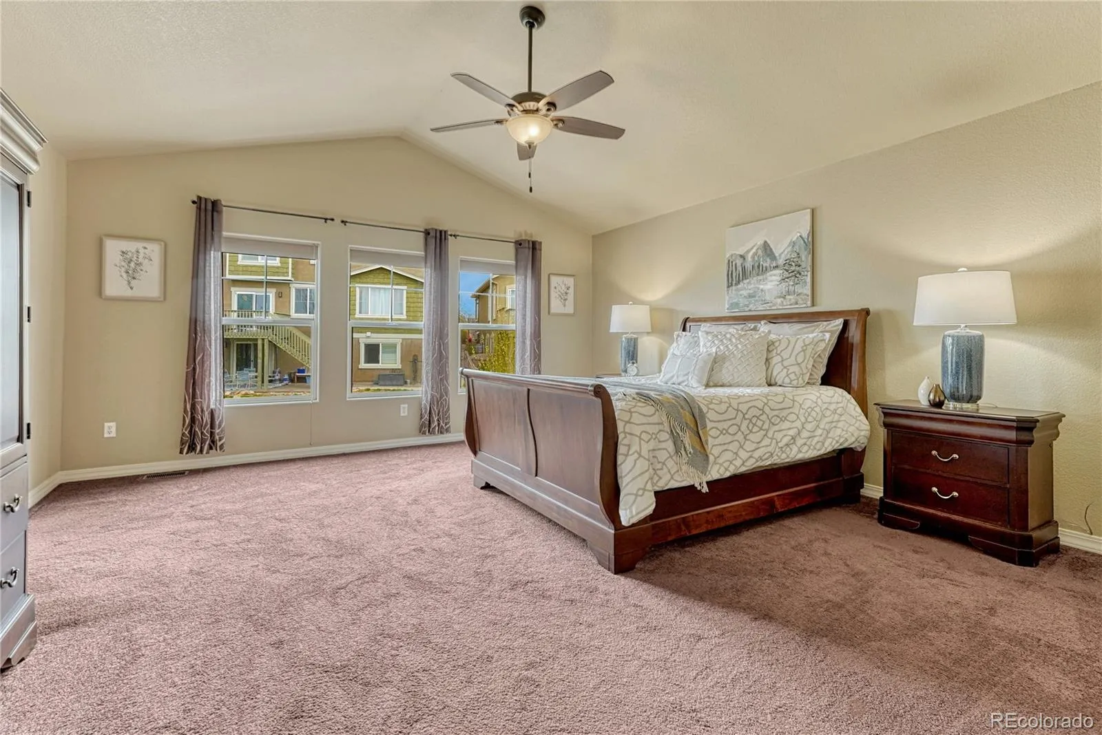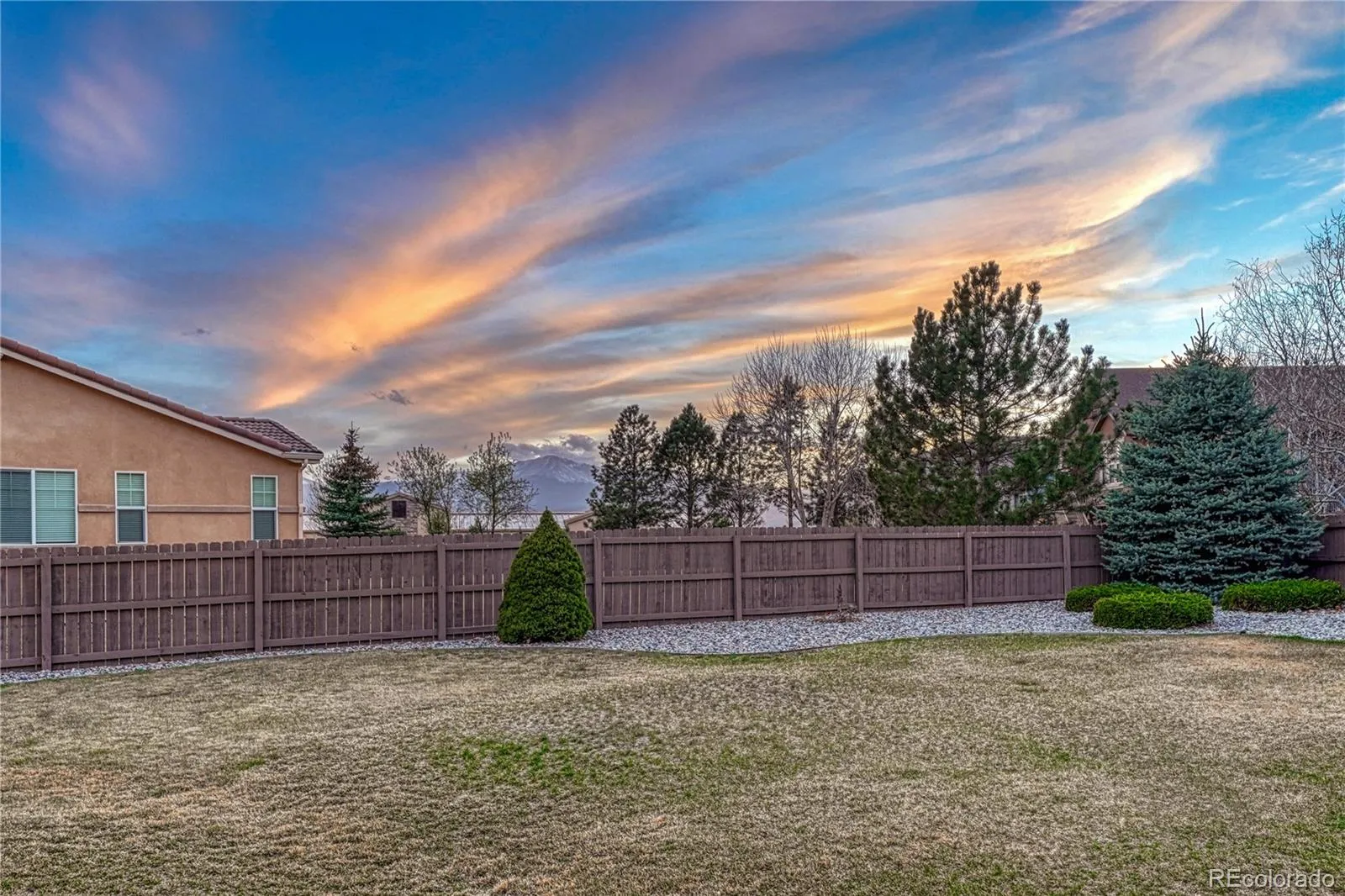 Comfort and Radiant Style | Beautifully Maintained two-story Home | Nestled in the desirable Cordera Community. Just steps from Chinook Trail Elementary & Middle School, this 5BR/3.5BA, 3,700+ SQFT residence evokes subtle Southwestern vibes with a gorgeous stucco exterior, tranquil fish pond, and covered entryway. The home is situated on a cul-de-sac lot with an entertainer’s fully fenced-in backyard, covered backyard patio ideal for grilling, gardening and basking in unobstructed views of Pikes Peak. Brimming with natural light, the interior captivates with vaulted ceilings, hardwood entry floors, open layout, Pikes Peak views, attractive window coverings/blinds, whole house intercom system, home office, and an oversized living room. Enjoy the party possibilities of the adjoining formal dining room. Chefs and foodies are sure to delight in the gourmet kitchen featuring stainless-steel appliances (JennAir and Whirlpool), granite countertops, gas cooktop, built-in microwave, dishwasher, double wall ovens, French door refrigerator, 42” wood cabinetry, center island, walk-in pantry, recessed lighting, and an adjoining family room with gas fireplace. Oversized for maximum comfort, the primary bedrooms dazzles with a 3-sided fireplace, sitting room, walk-in closet, and an en suite boasting a jetted tub, dual sinks and radiant heat flooring. Two extra bedrooms and a full bathroom complete the upper-level, while the finished basement mesmerizes with two bedrooms, built-in wet bar, rec room w/fireplace, and a full bathroom.